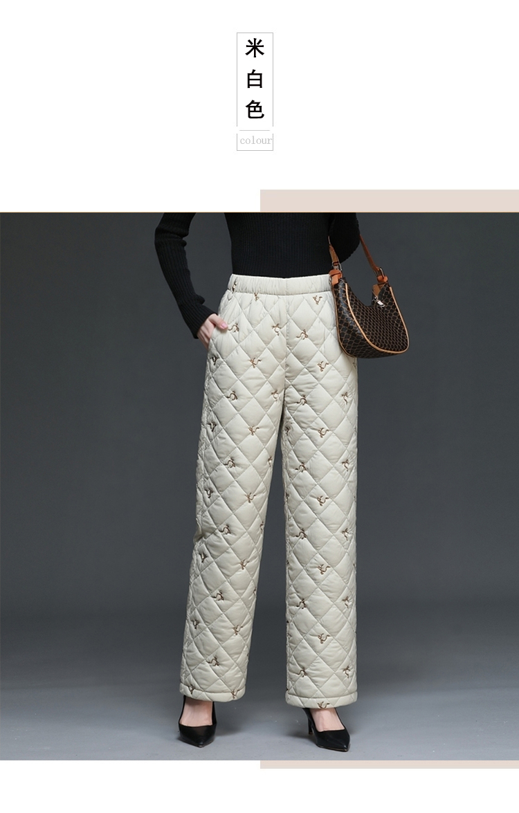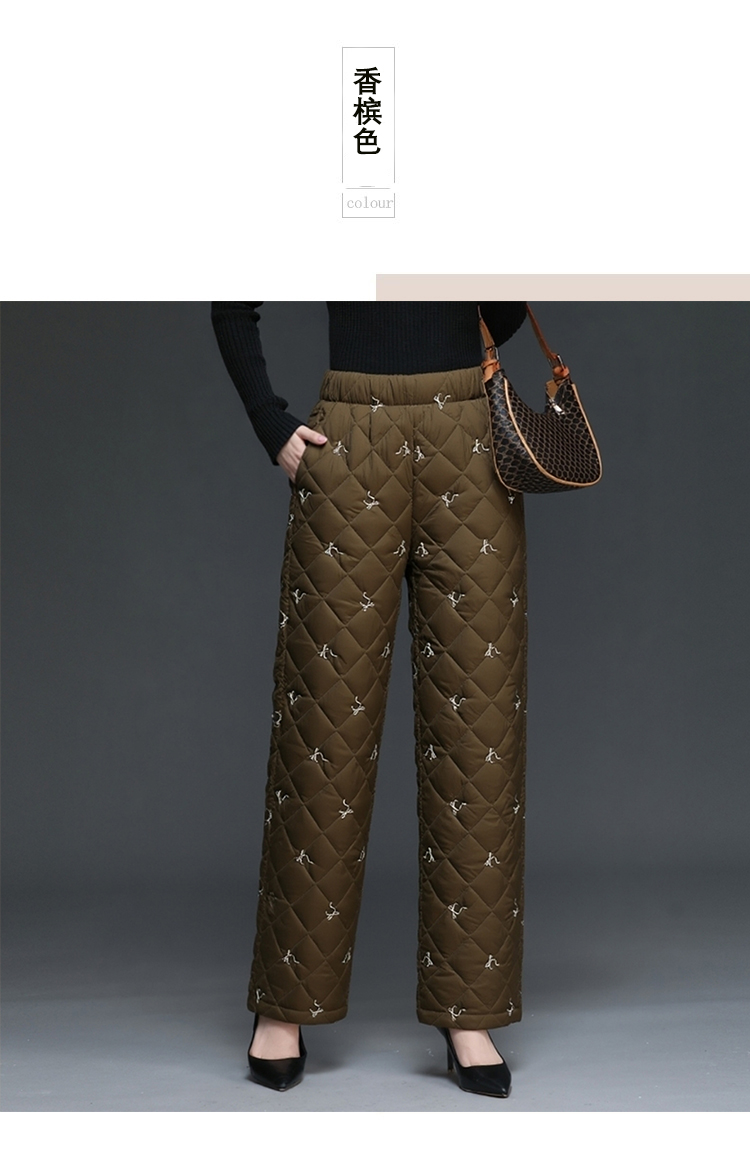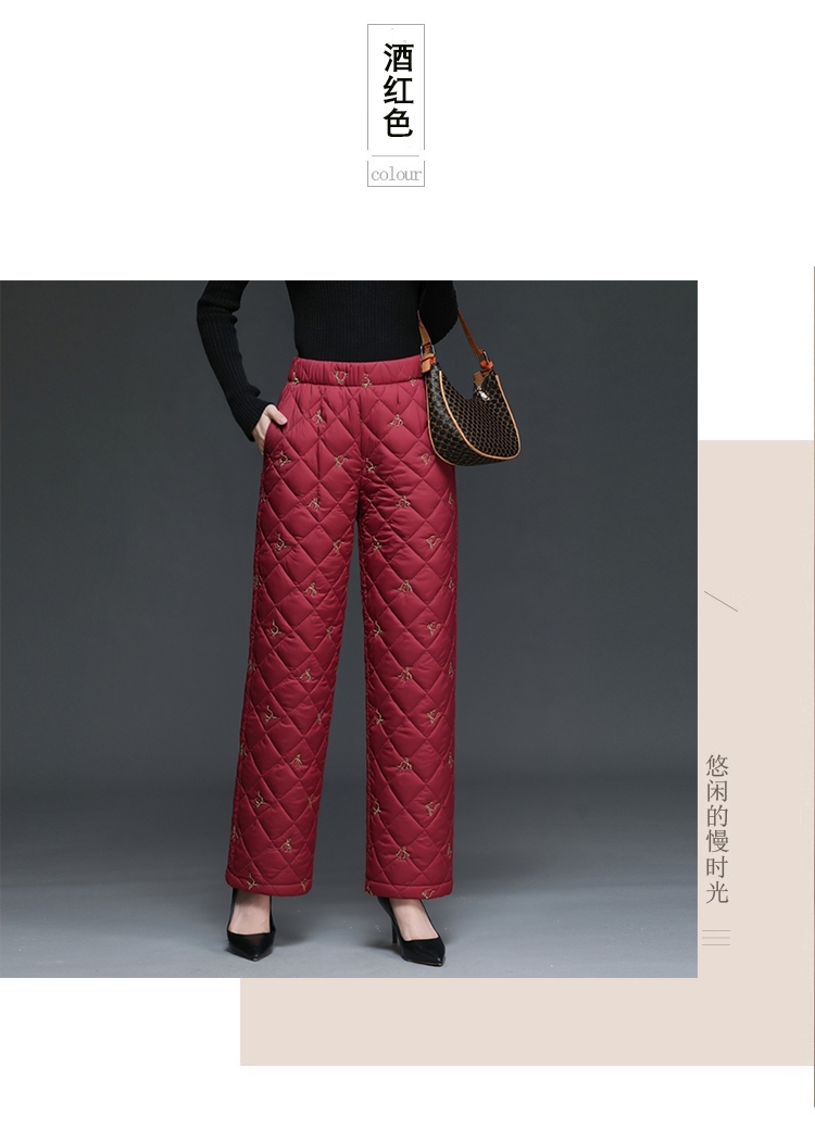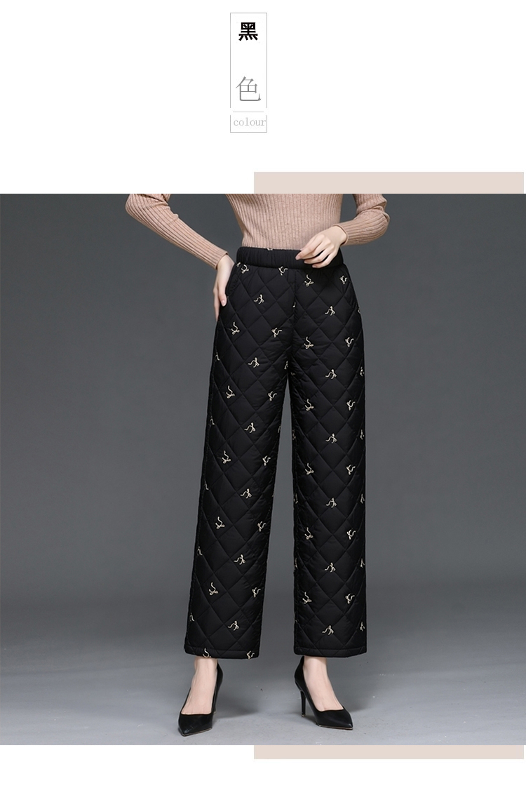 濶腿羽絨棉褲女冬新款保暖外穿高腰時尚綉花休閒直筒外穿媽媽棉褲