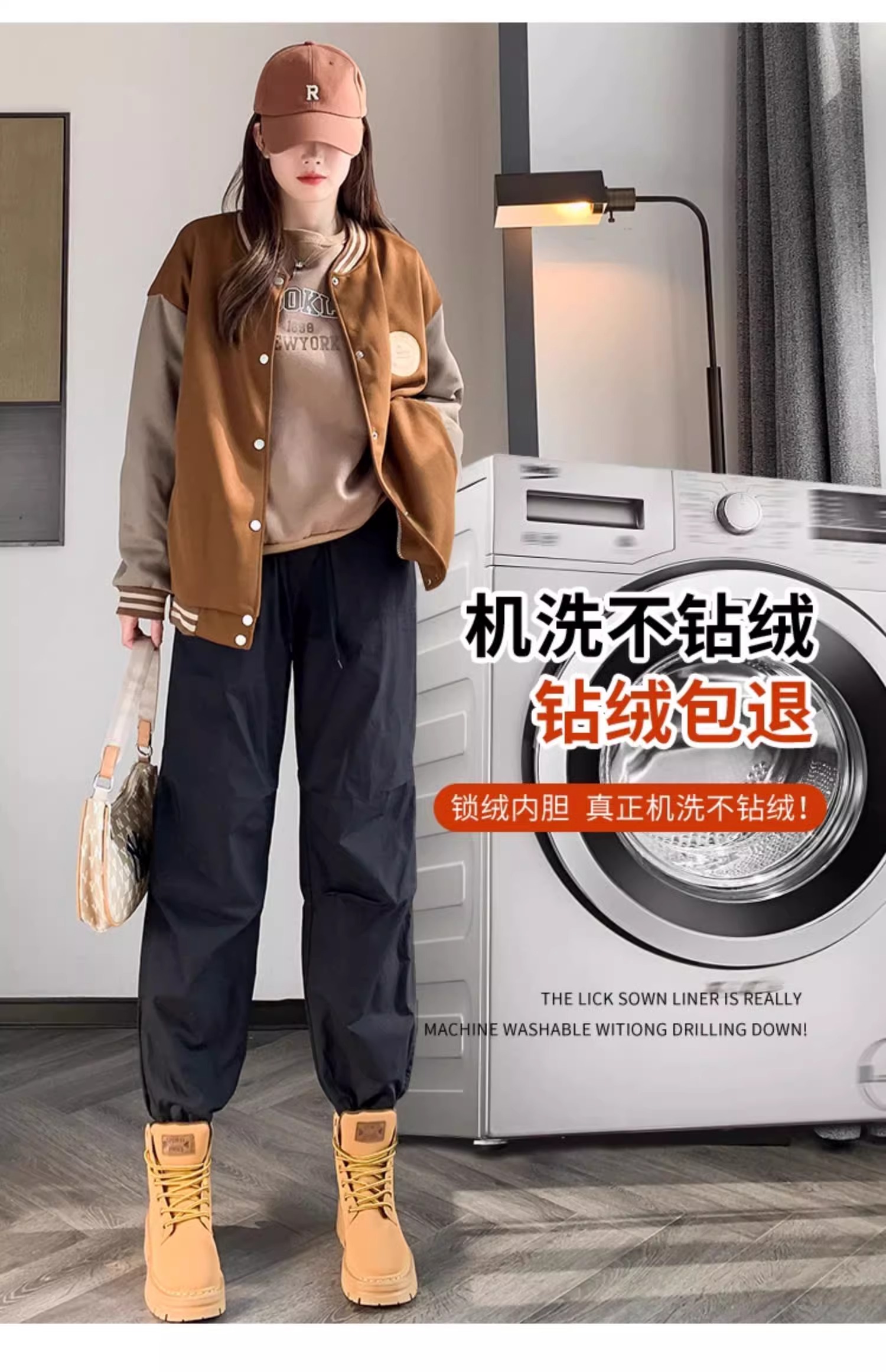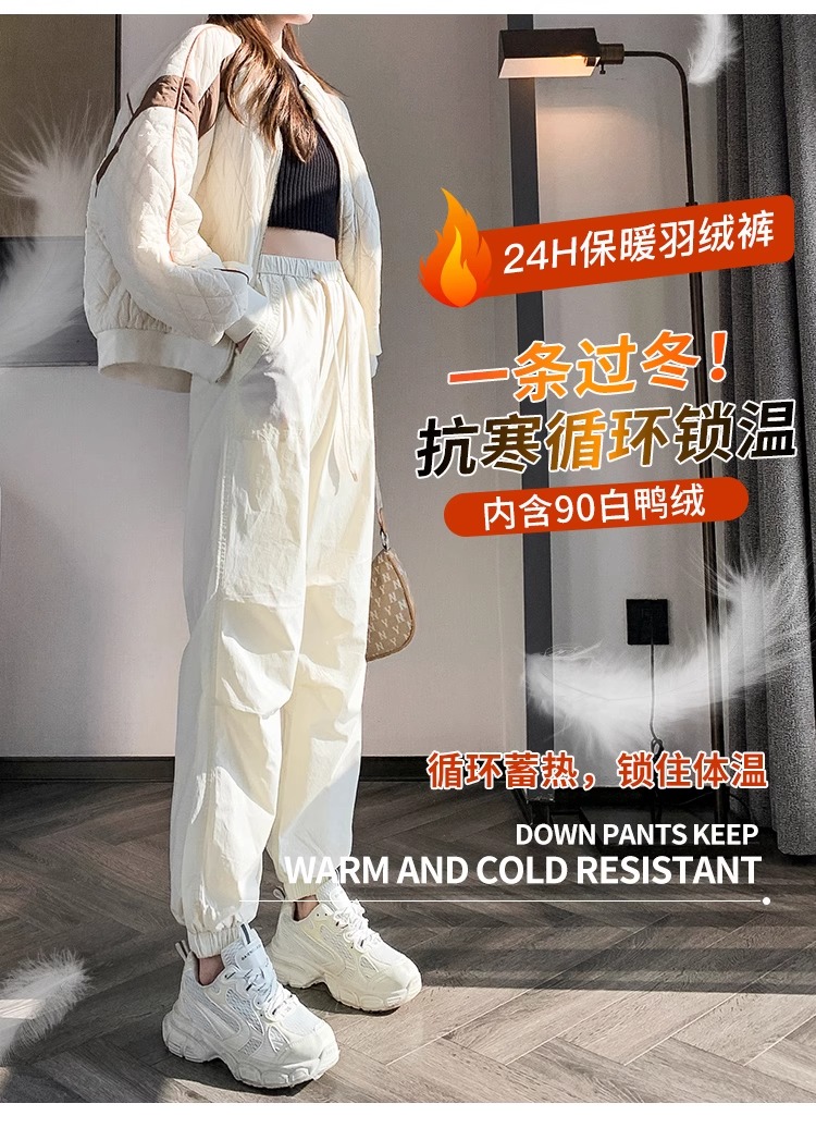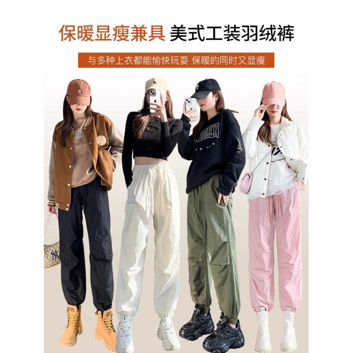 高級白色工裝羽絨褲女冬季外穿2025新款加厚東北棉褲夾棉防寒褲冬