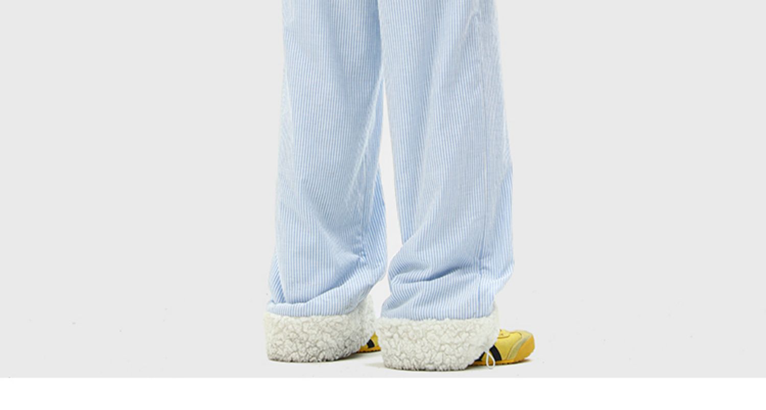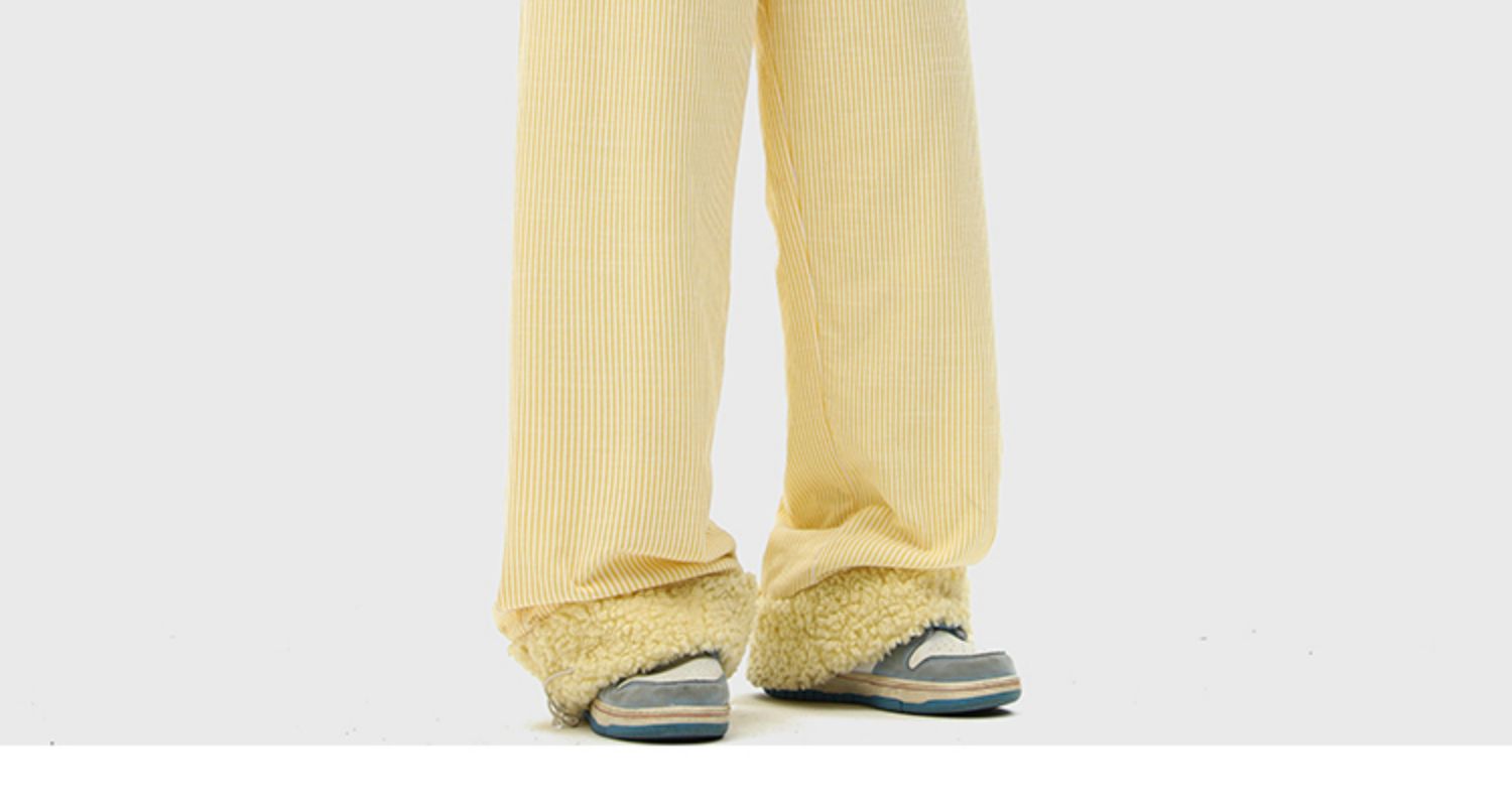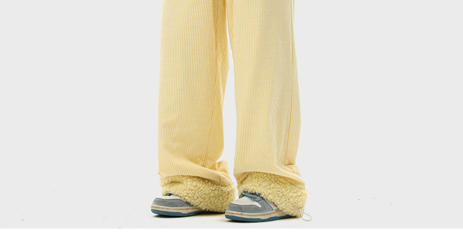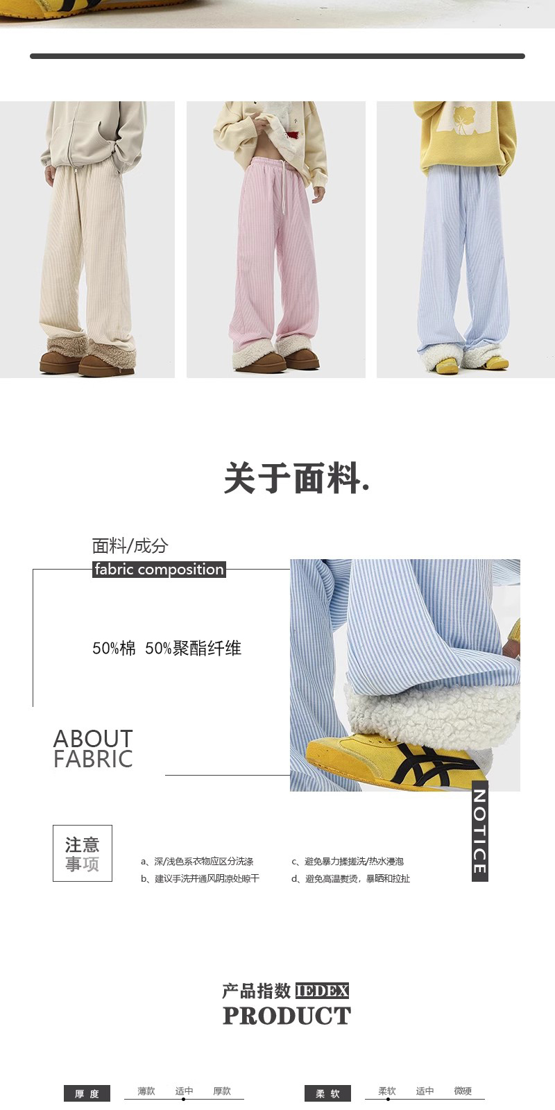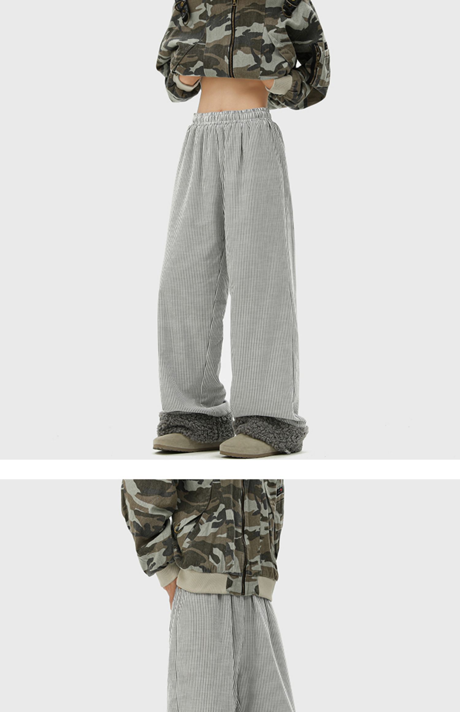 BWKA多巴胺條紋保暖棉褲女男冬季加絨加厚防寒濶腿褲慵懶風休閒褲