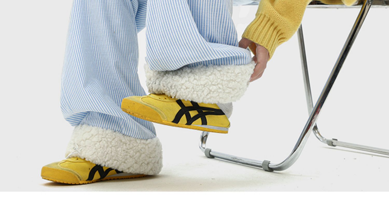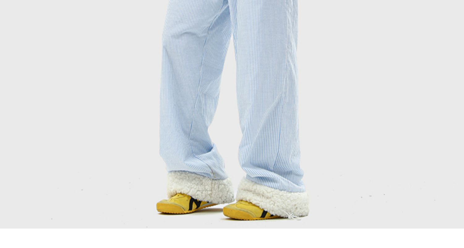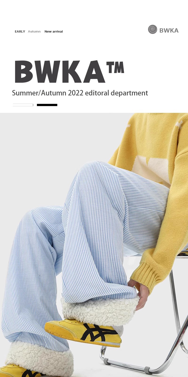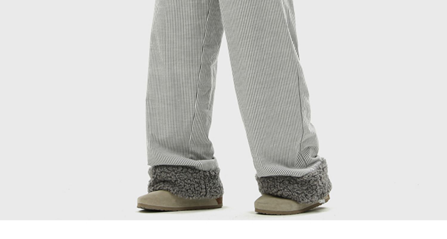 BWKA多巴胺條紋保暖棉褲女男冬季加絨加厚防寒濶腿褲慵懶風休閒褲