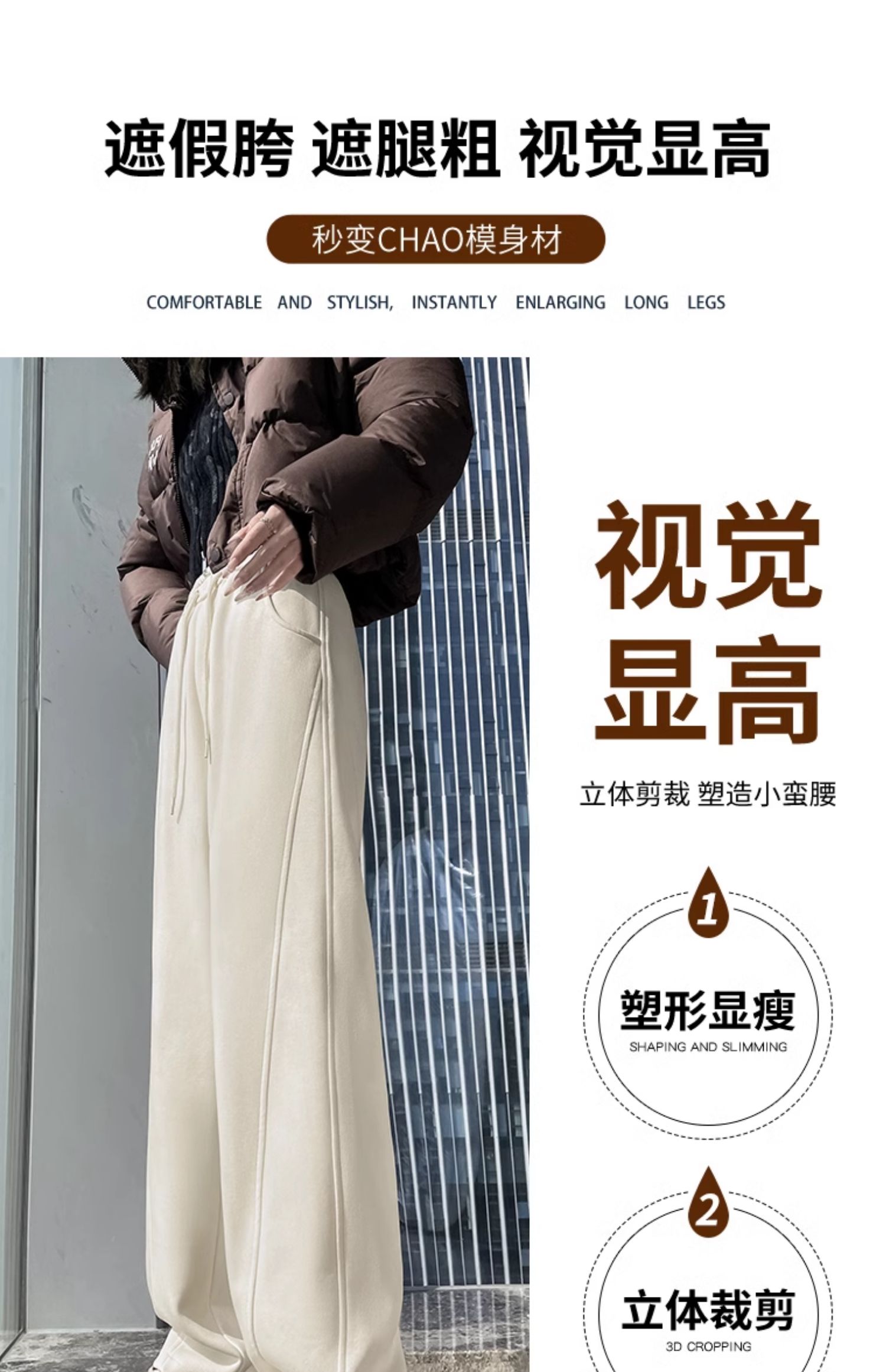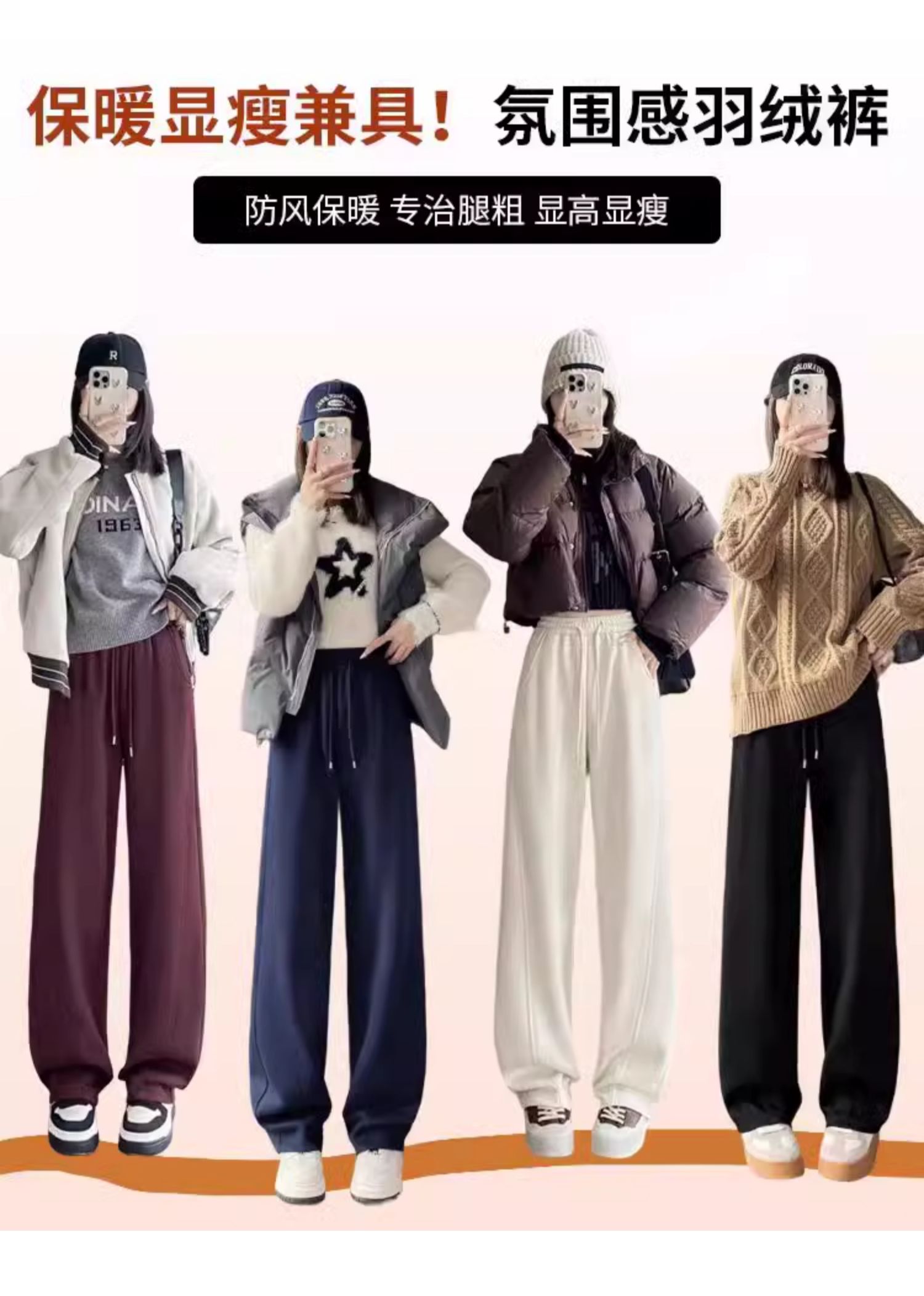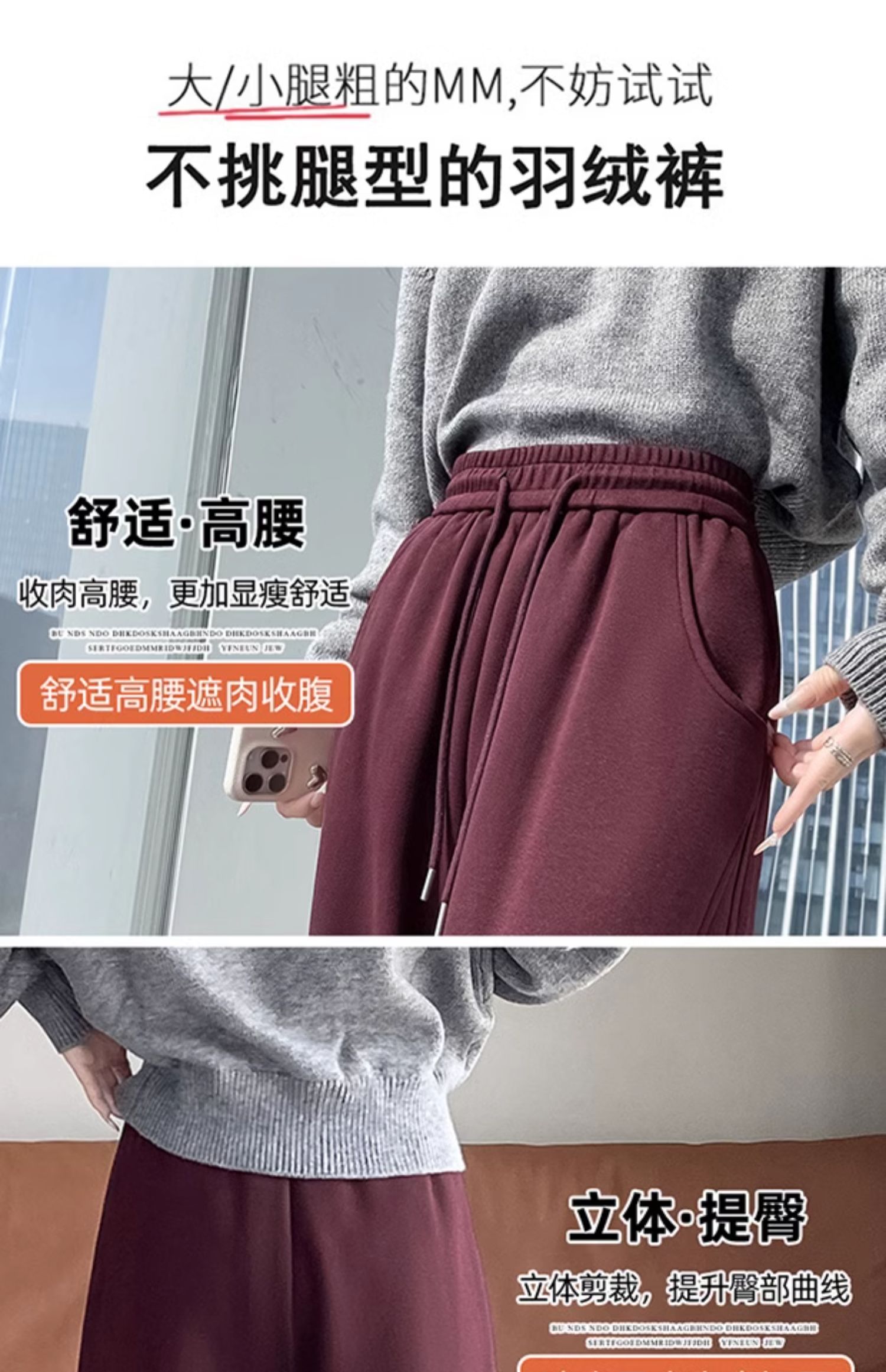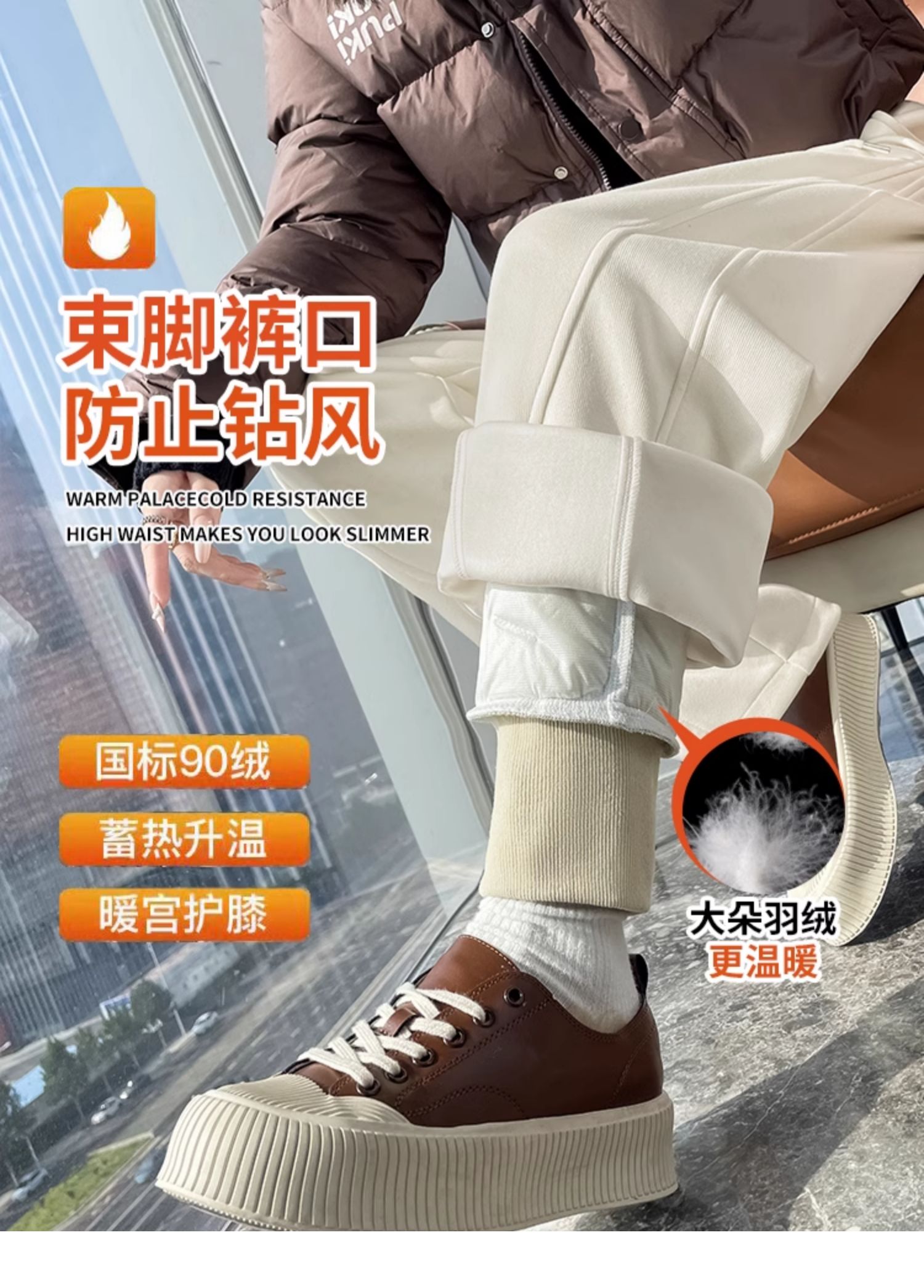 米白色濶腿羽絨褲女外穿冬季白鴨絨內膽窄版香蕉東北抗寒保暖棉褲