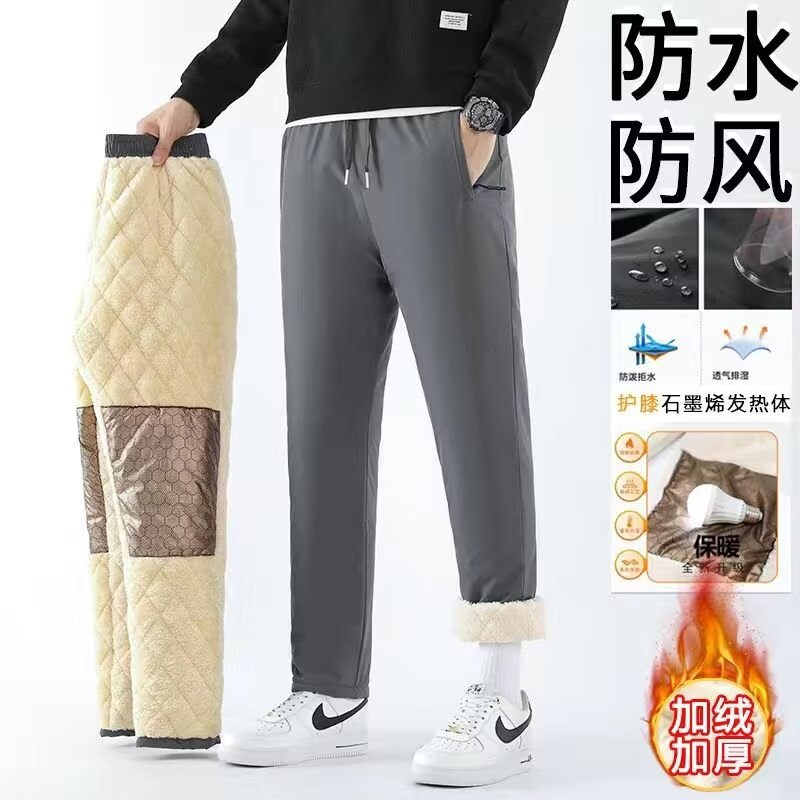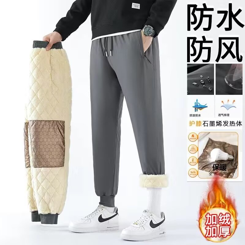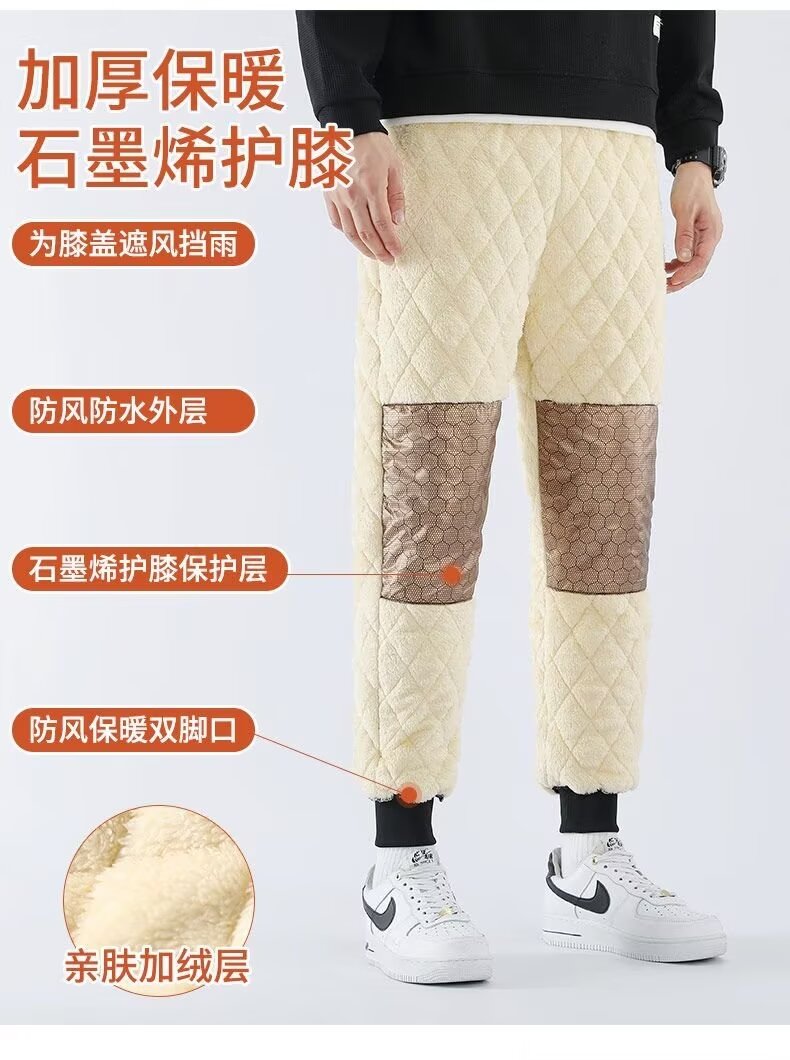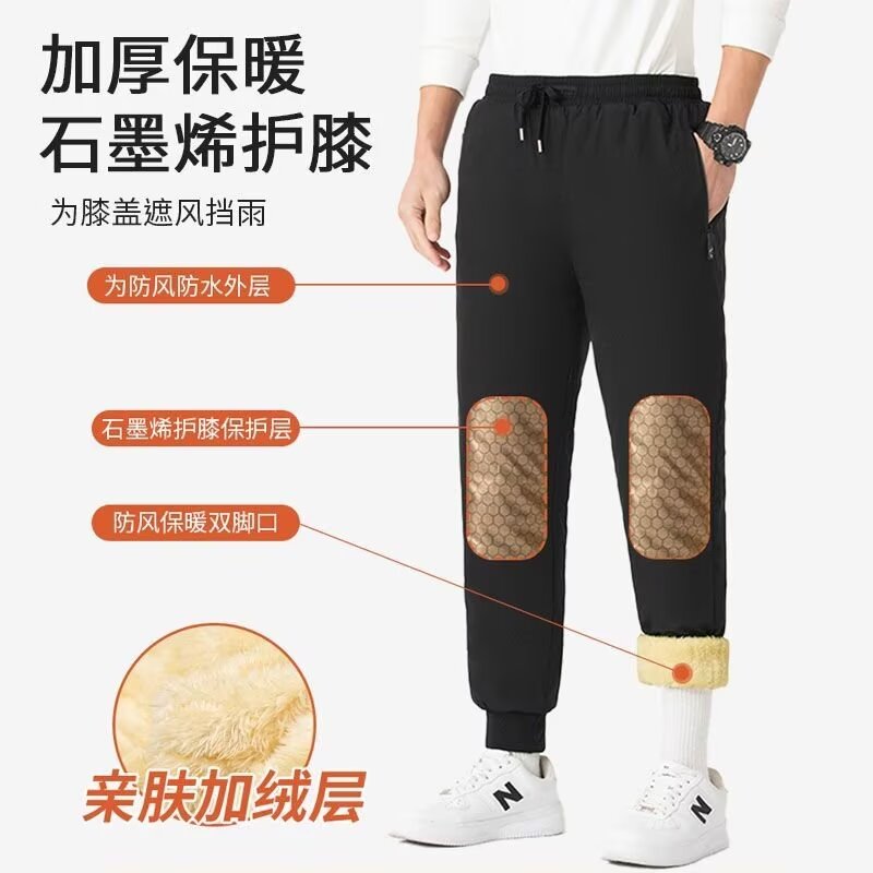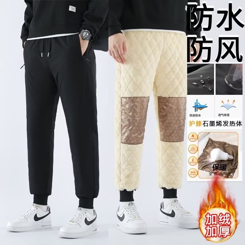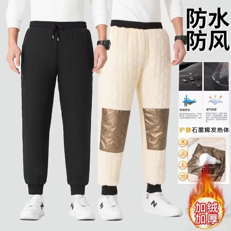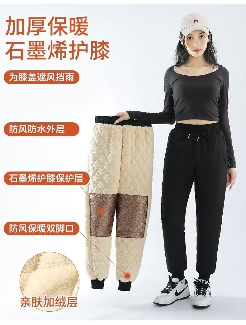 冬季超厚三層防風防水男女大碼加厚加絨保暖石墨烯護膝休閒棉褲女