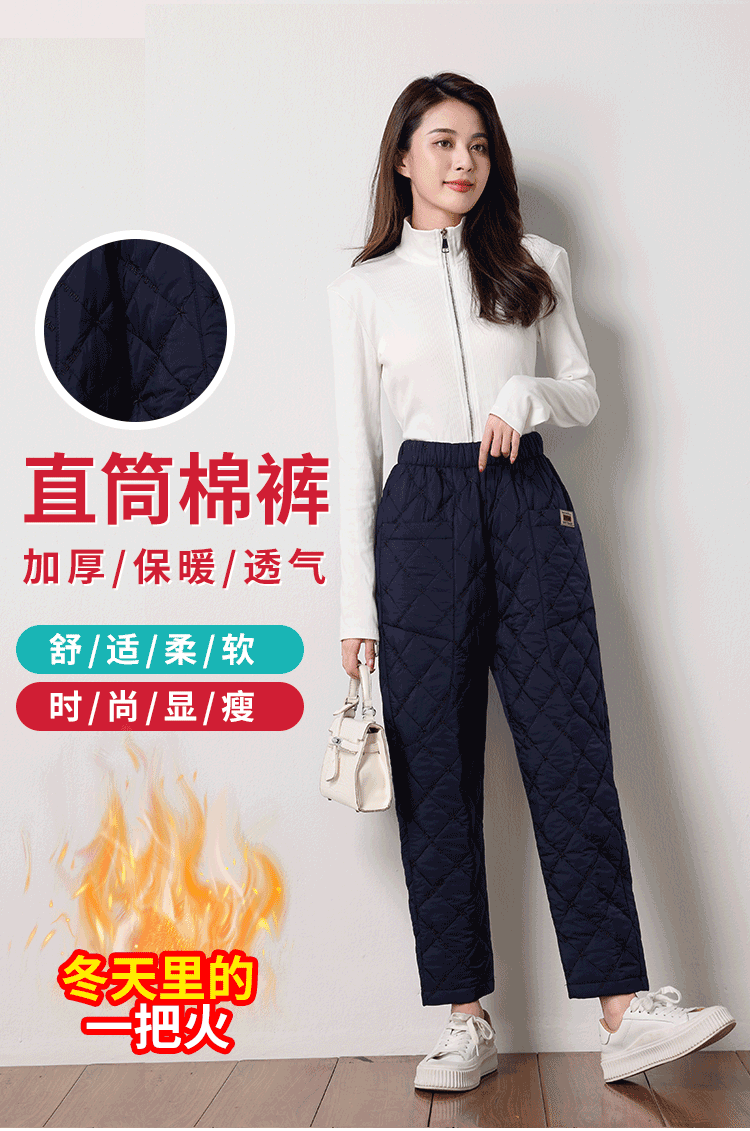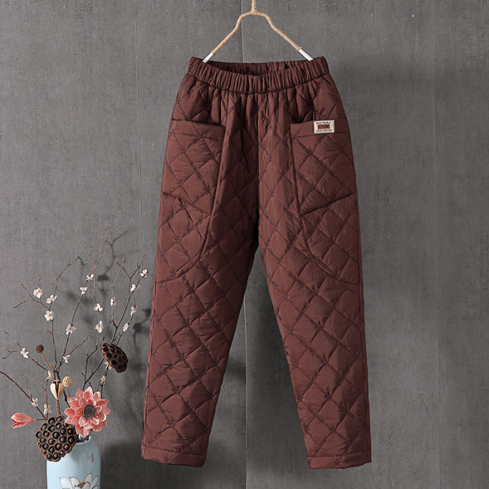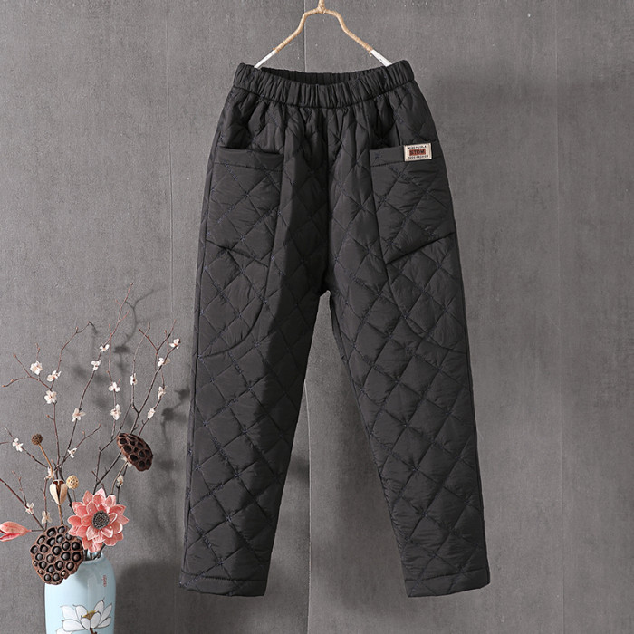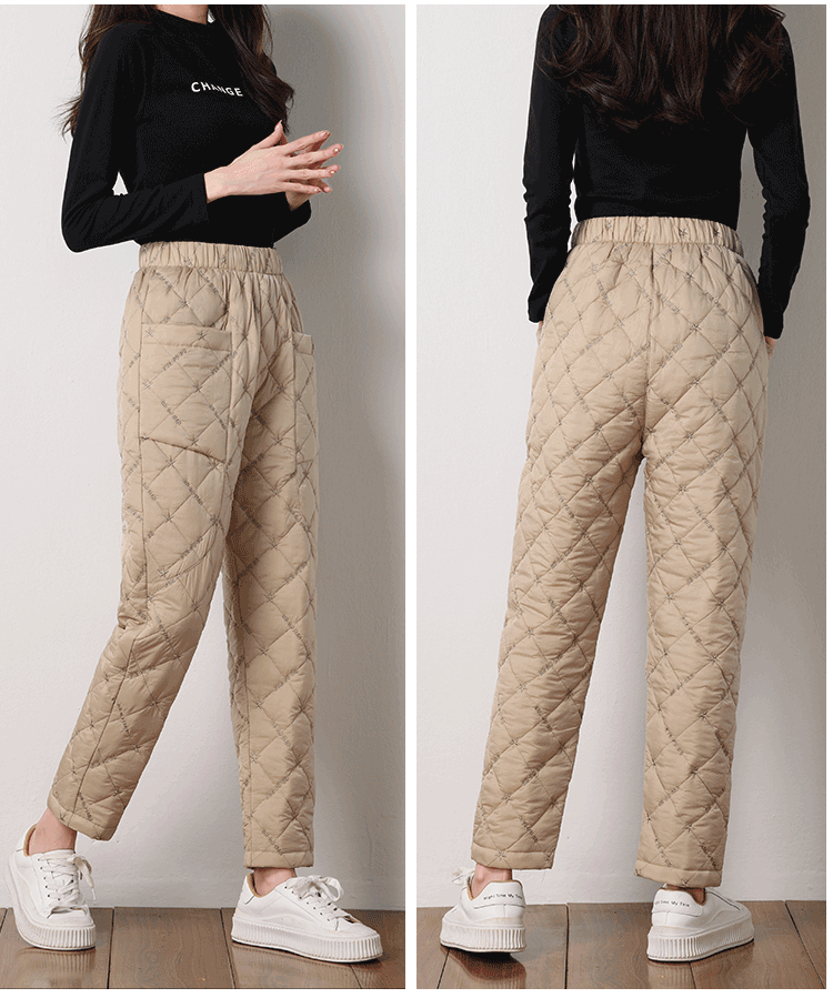 羽絨棉褲女冬季刺綉高腰外穿加厚大碼寬松休閒哈倫保暖直筒棉褲子