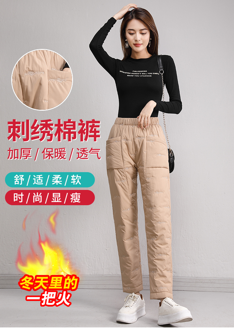 羽絨棉褲女2025外穿加厚保暖大碼修身防風休閒直筒百搭女士棉褲冬