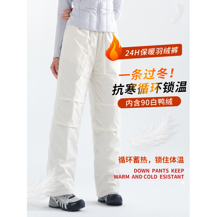 90羽絨褲女外穿2025新款防水防寒保暖棉褲哈爾濱雪鄕冬季滑雪加絨