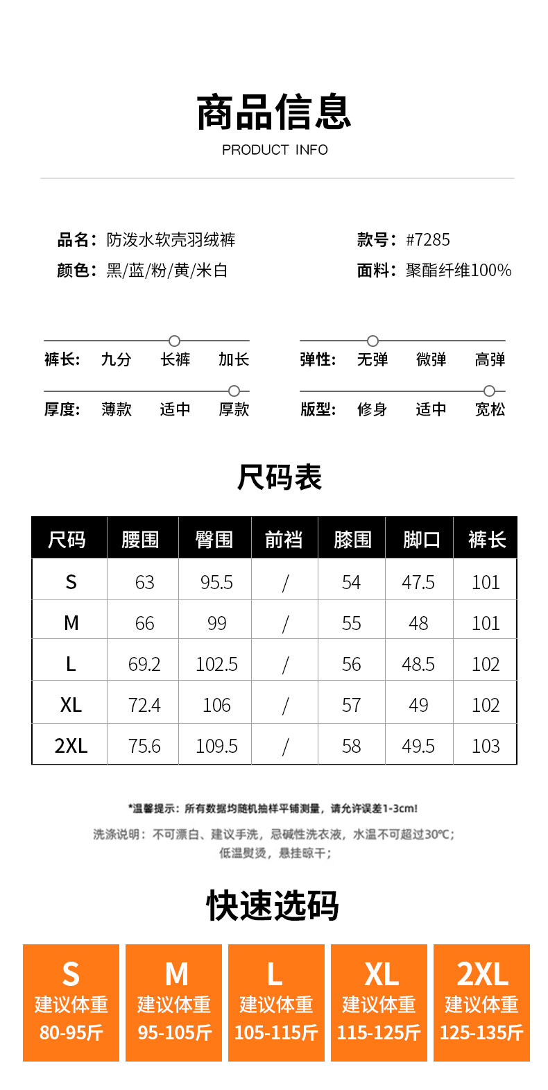 | 褲長 | 長褲 |