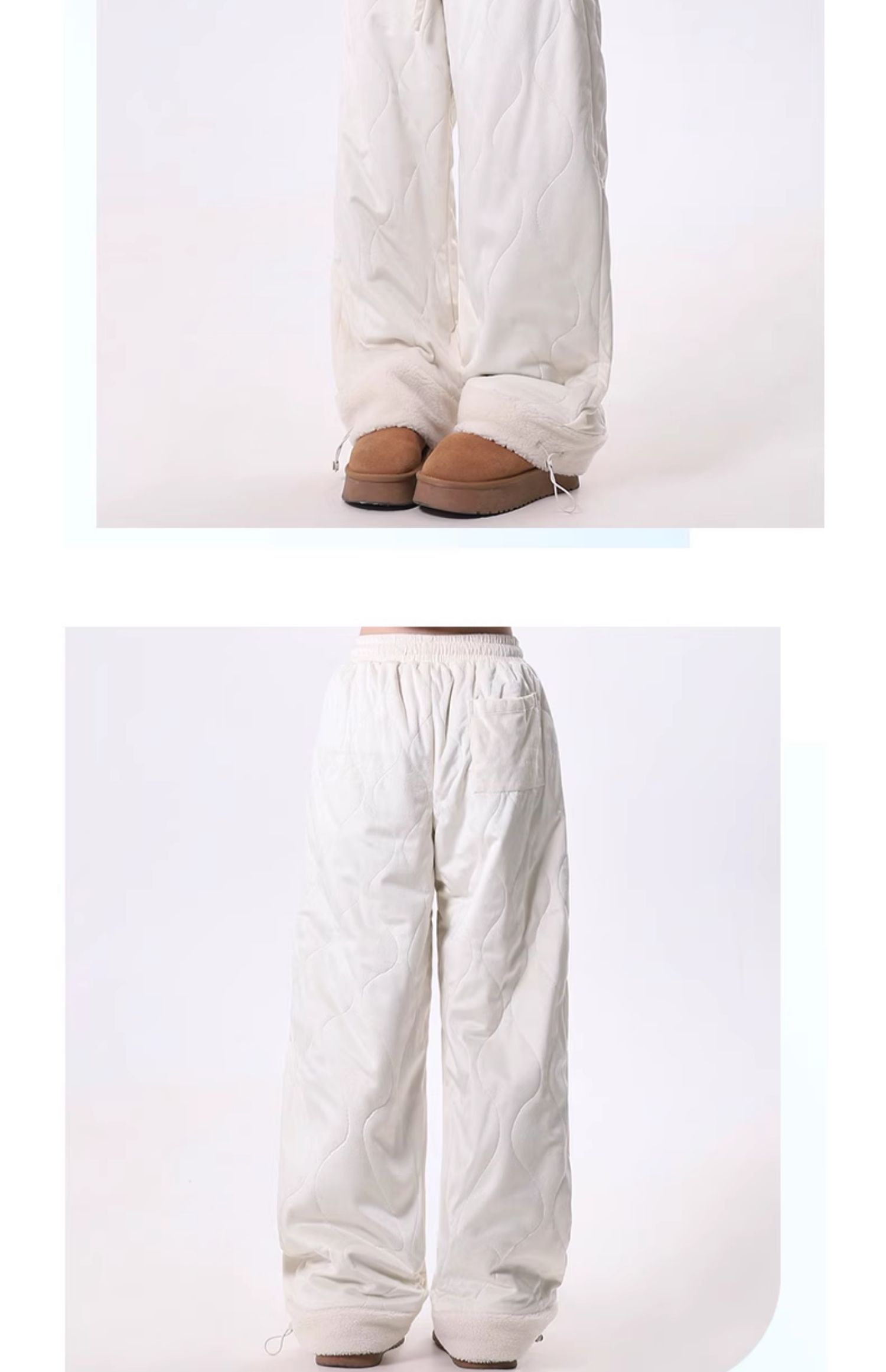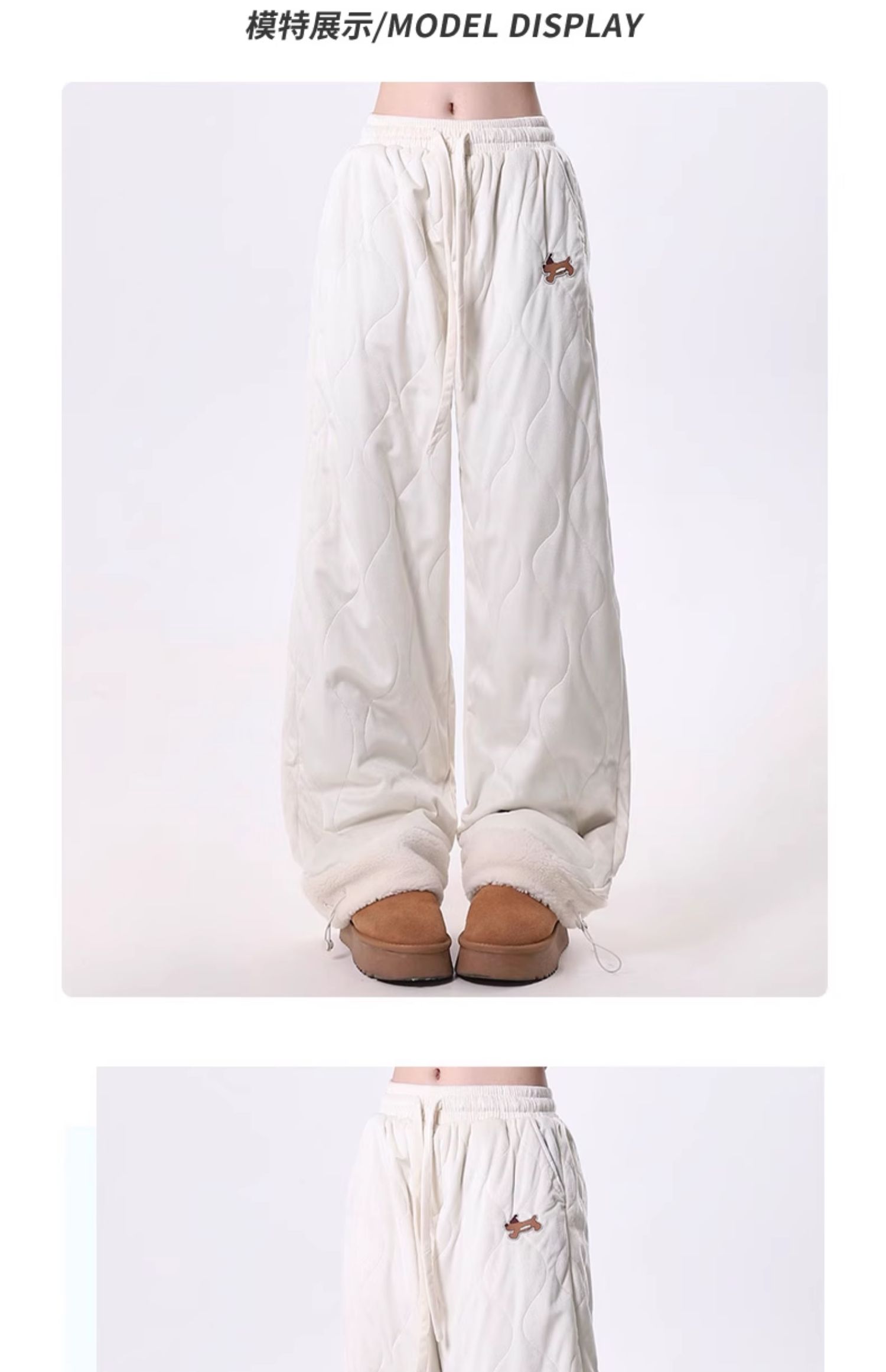 Rayohopp棉褲女秋冬新款寬松卷邊羊羔絨褲子加絨加厚休閒垂感褲子