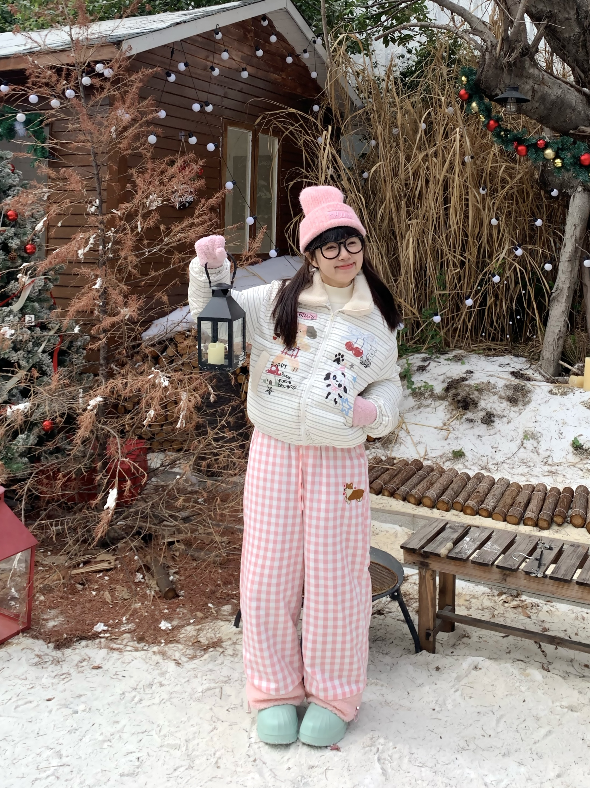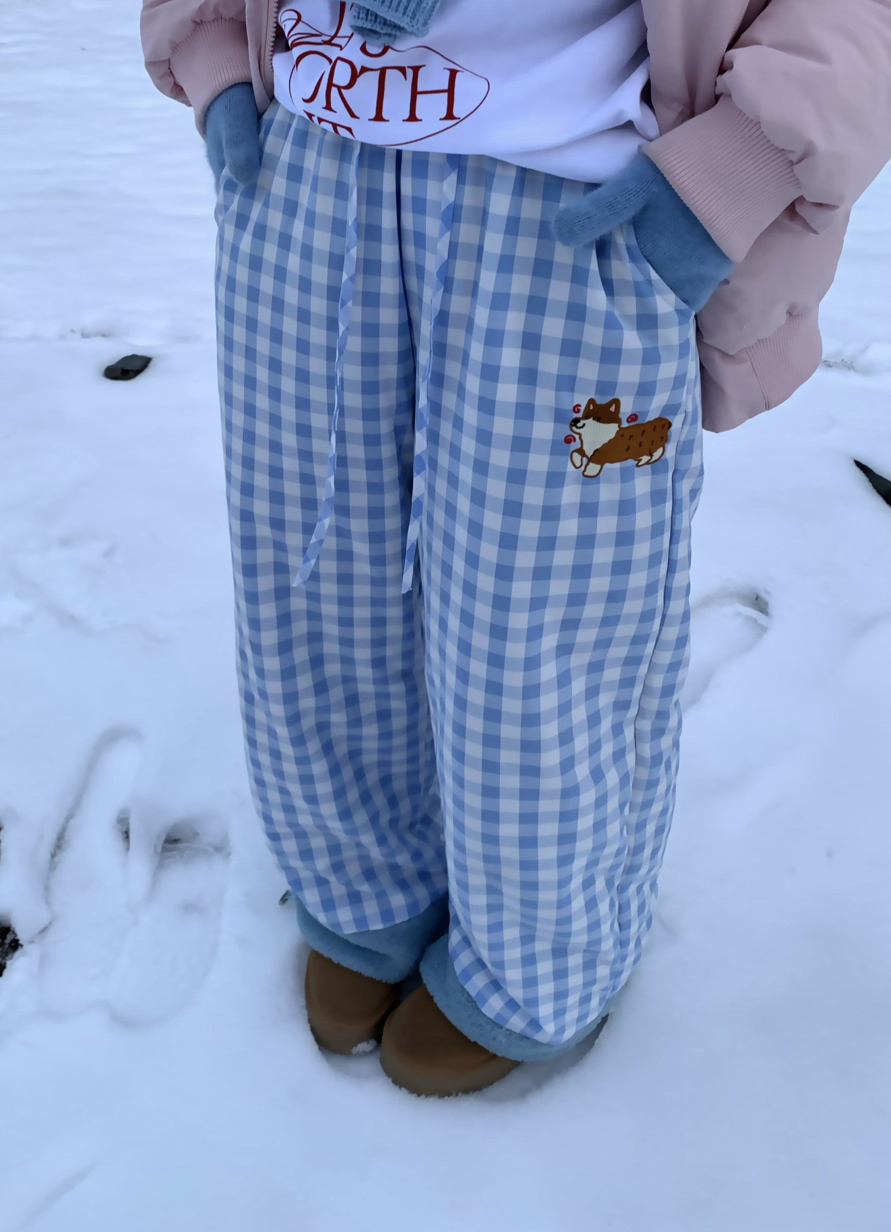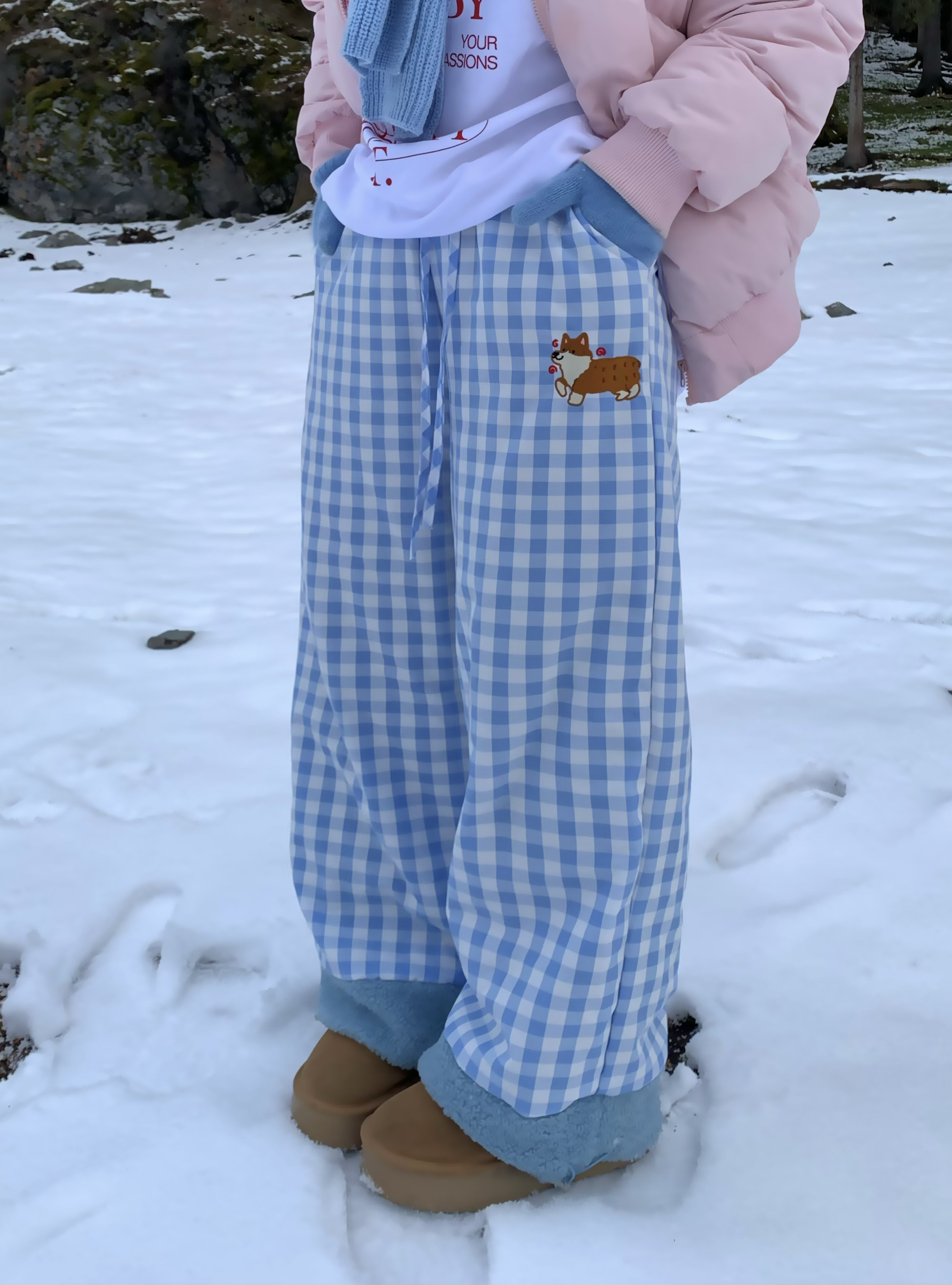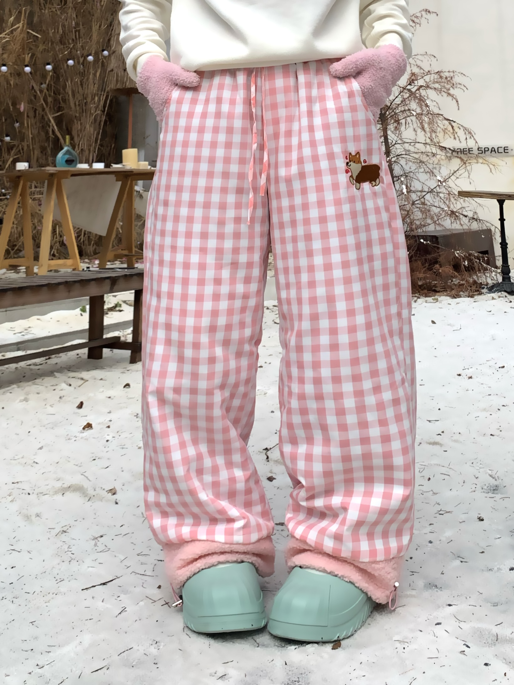 期望Studio冬季格子羊羔毛拼接棉褲男女休閒褲加絨褲滑雪褲防風褲
