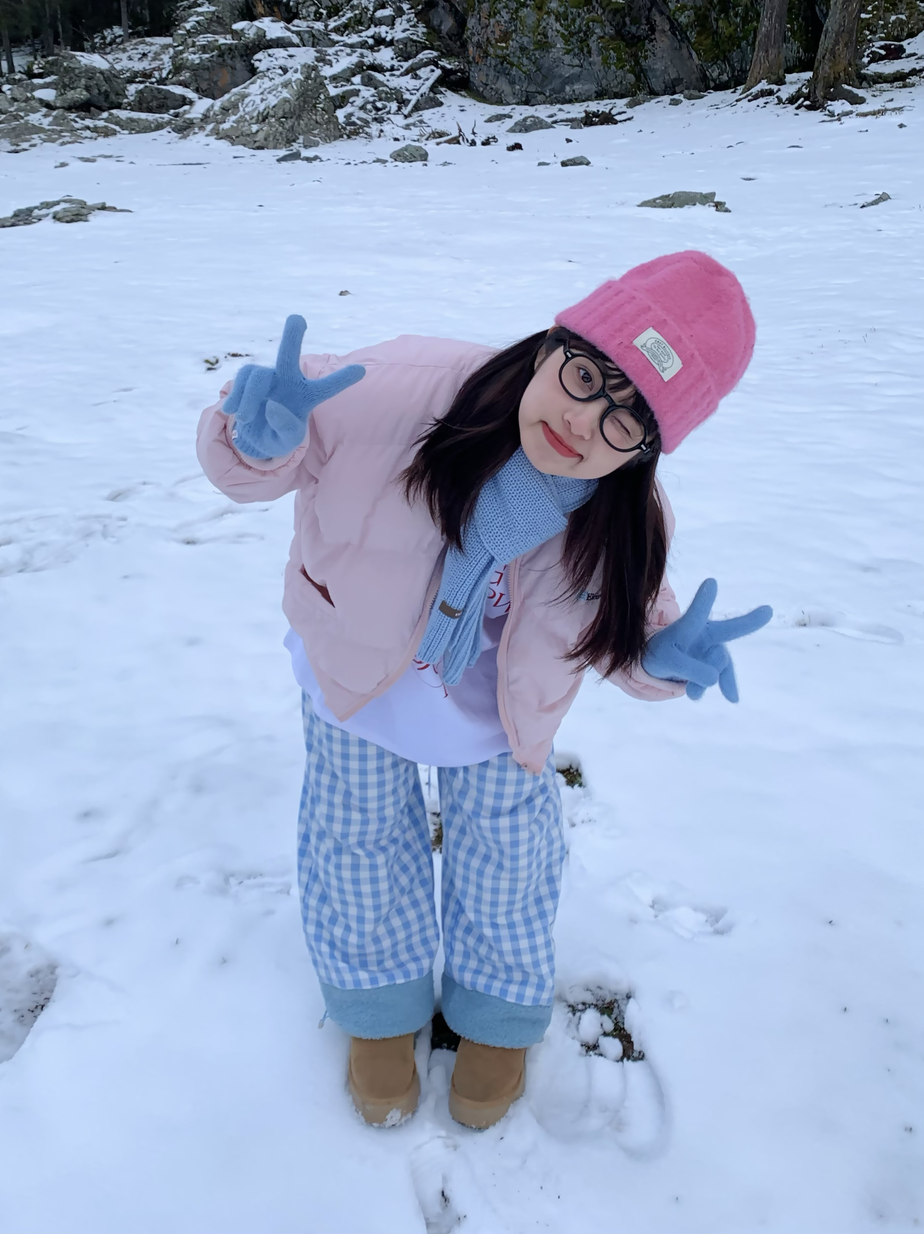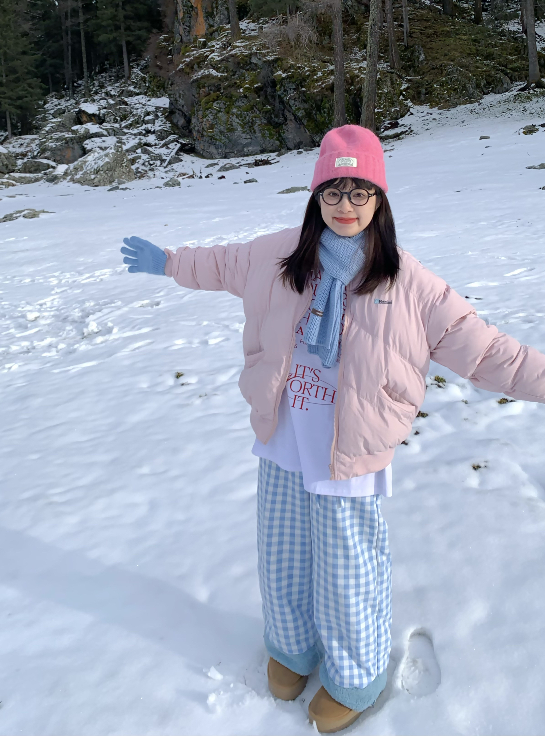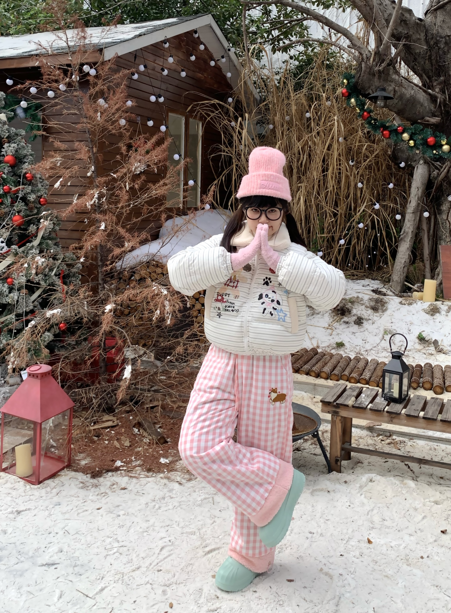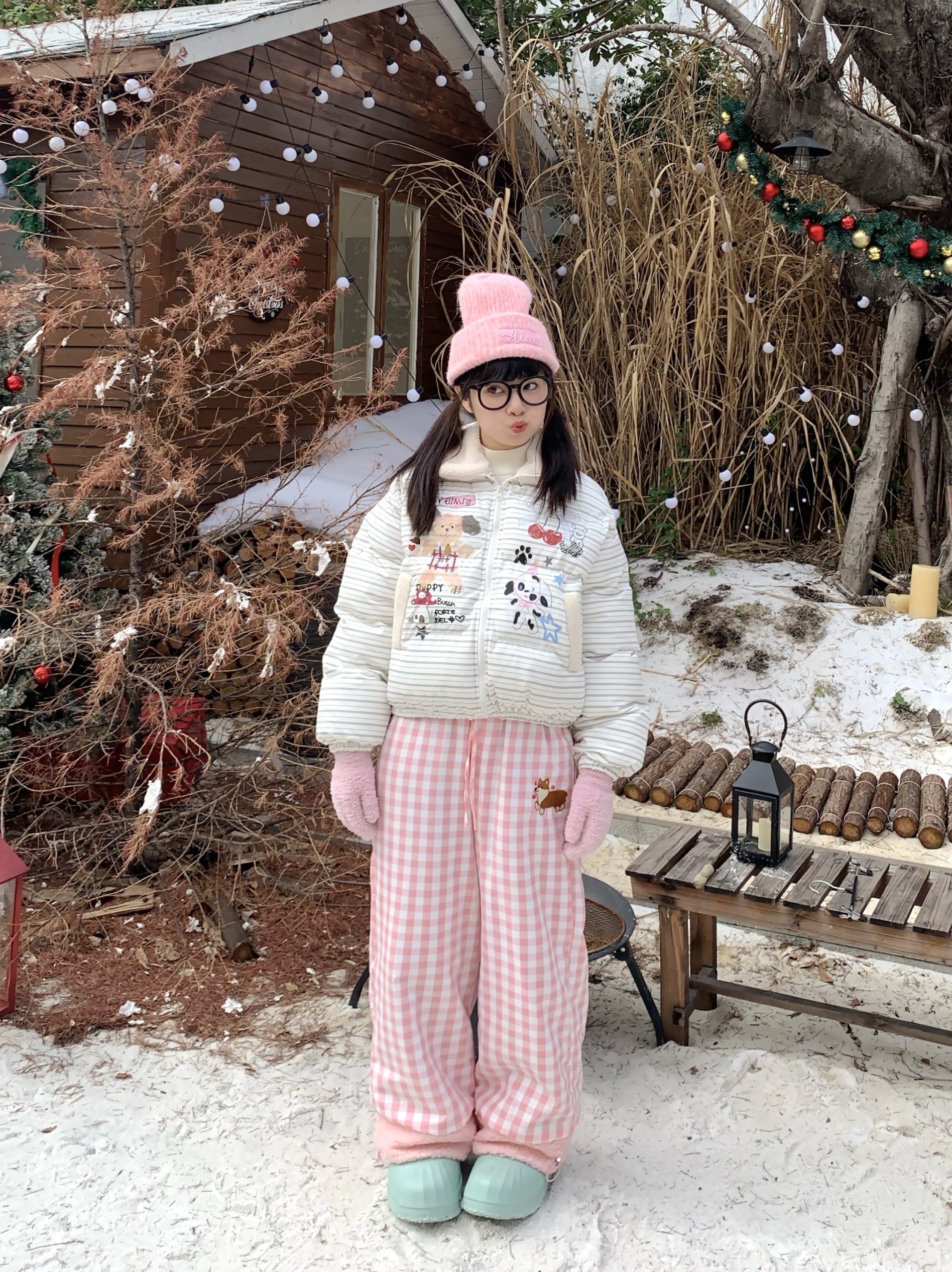期望Studio冬季格子羊羔毛拼接棉褲男女休閒褲加絨褲滑雪褲防風褲