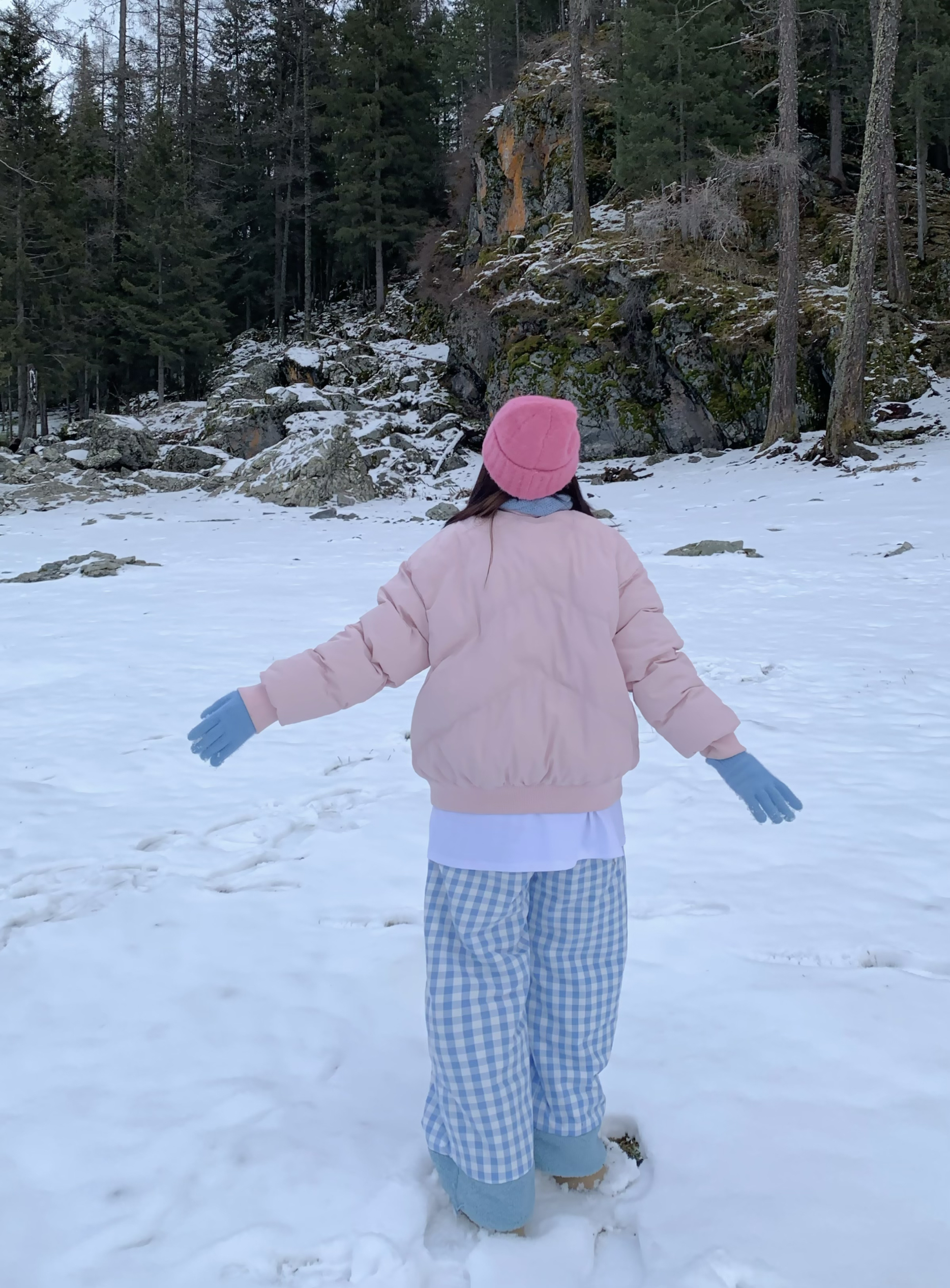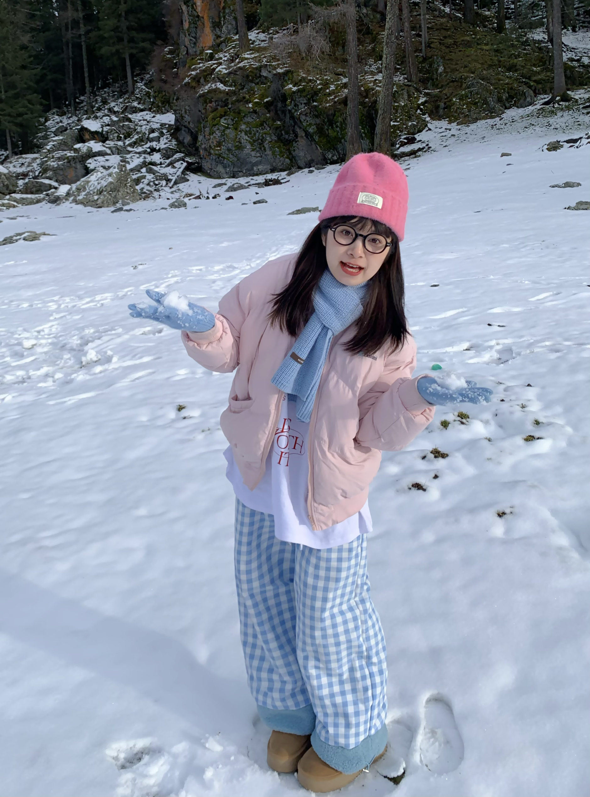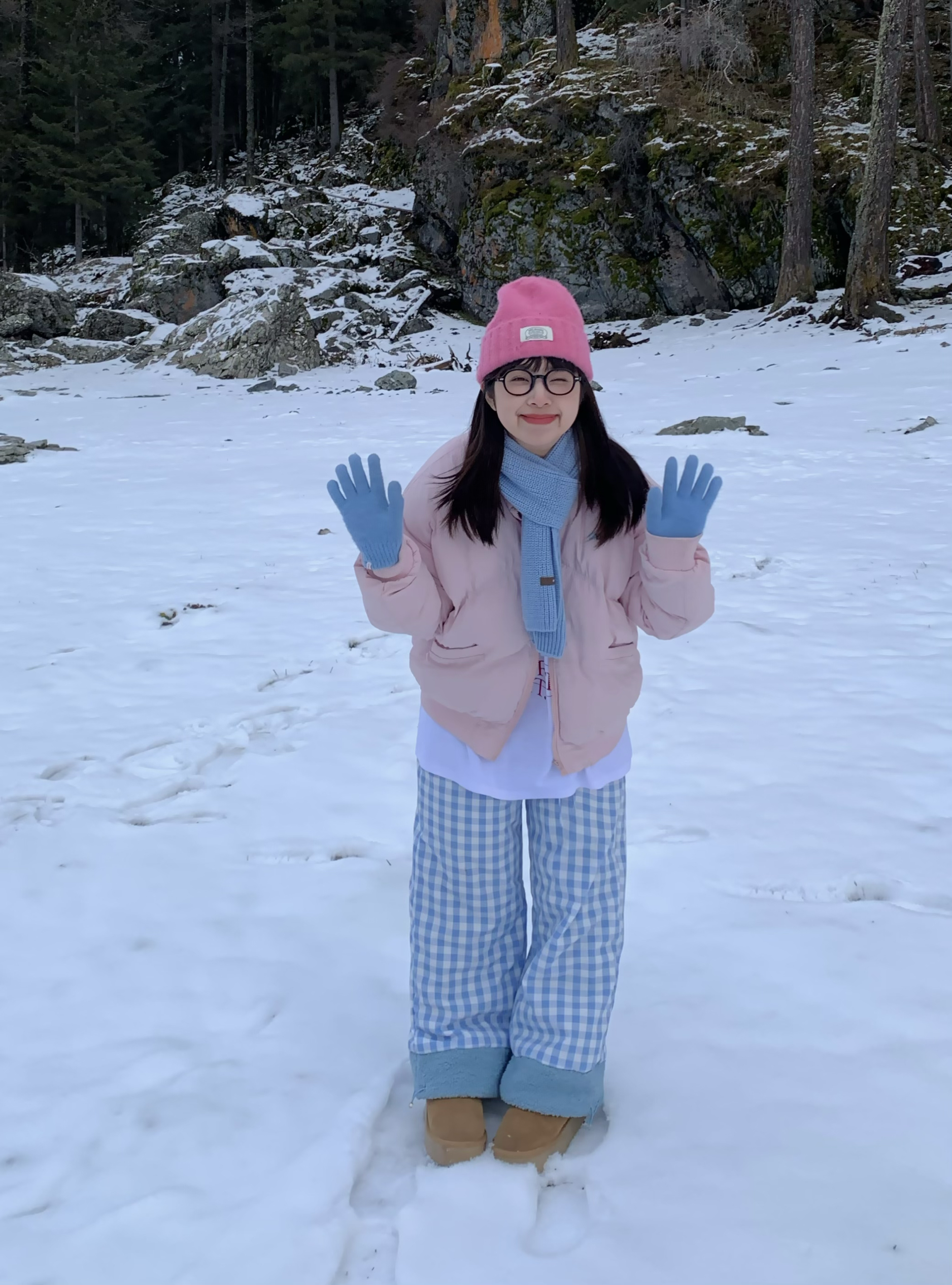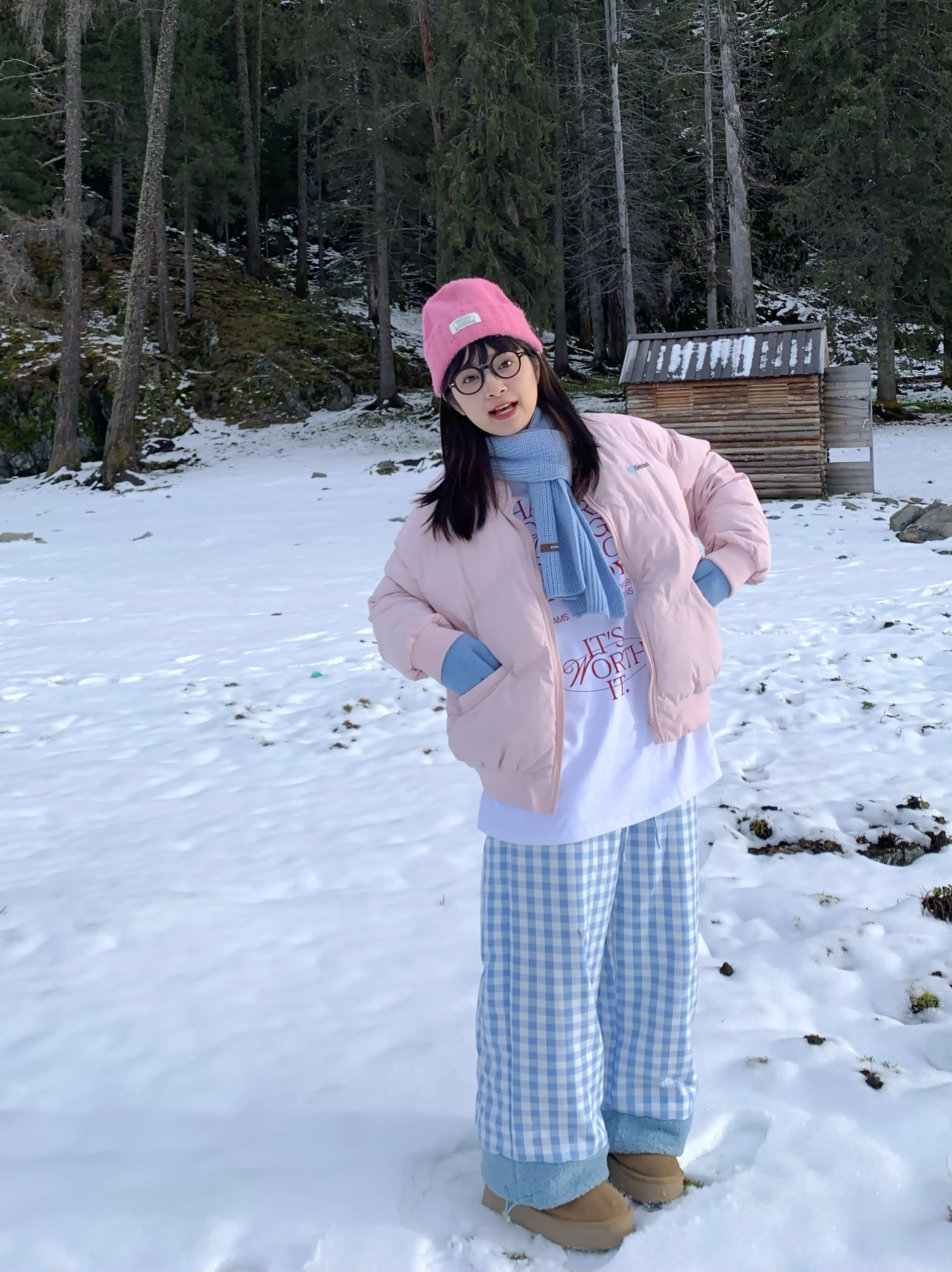 期望Studio冬季格子羊羔毛拼接棉褲男女休閒褲加絨褲滑雪褲防風褲