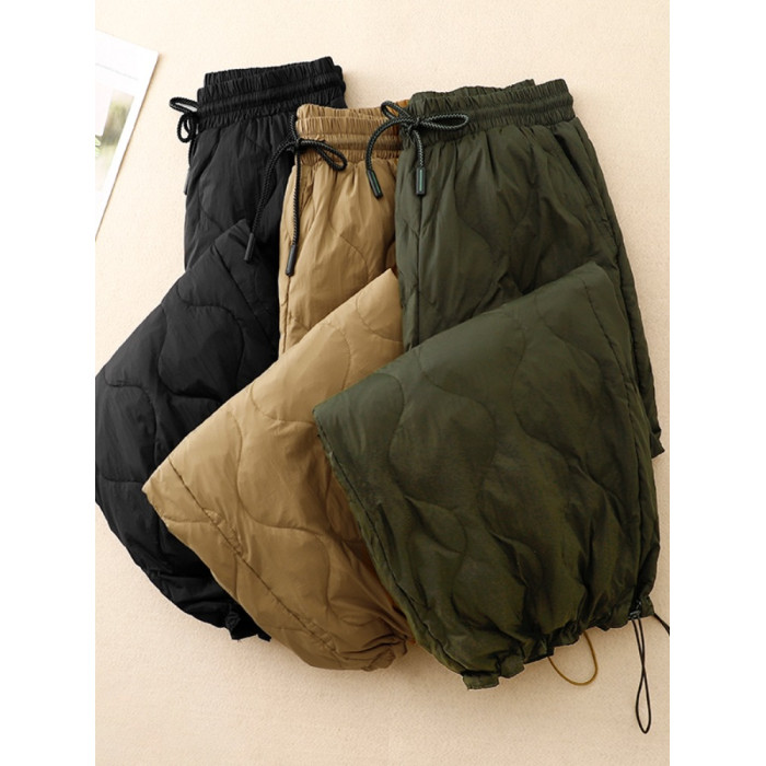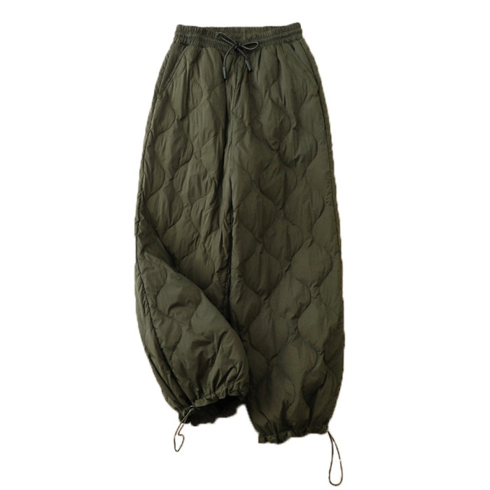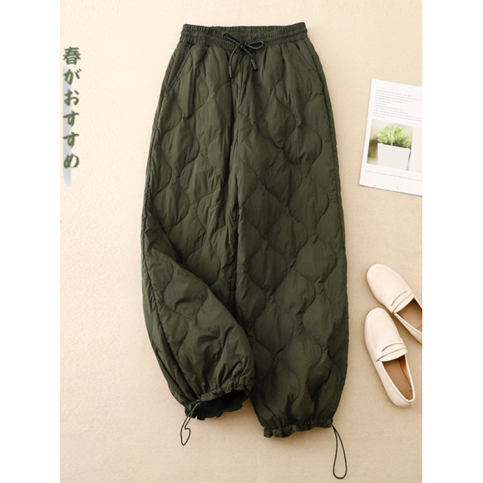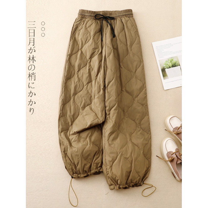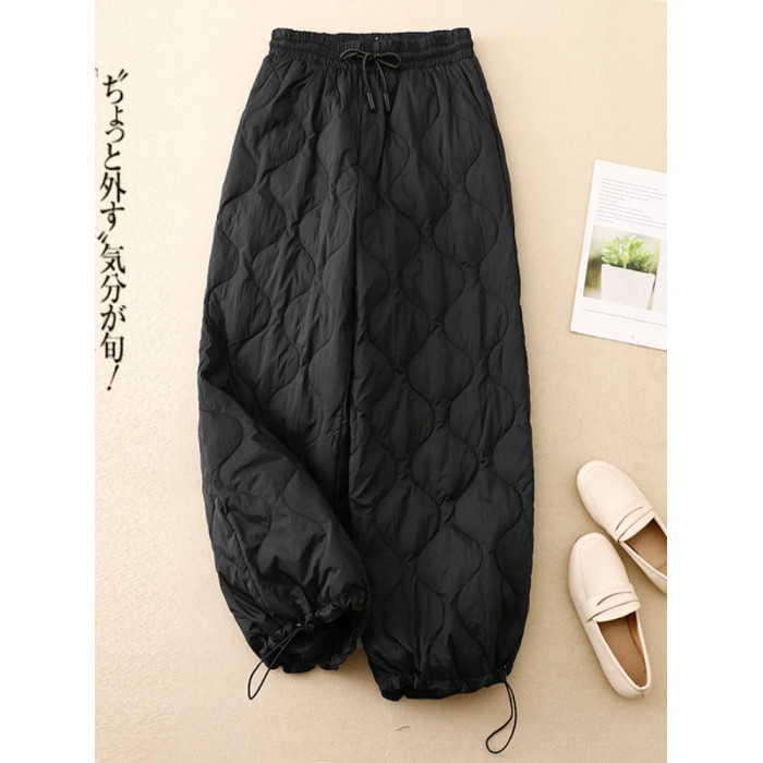 輕薄羽絨棉褲女冬季時尚洋氣防寒保暖抽繩燈籠褲休閒菱格長褲