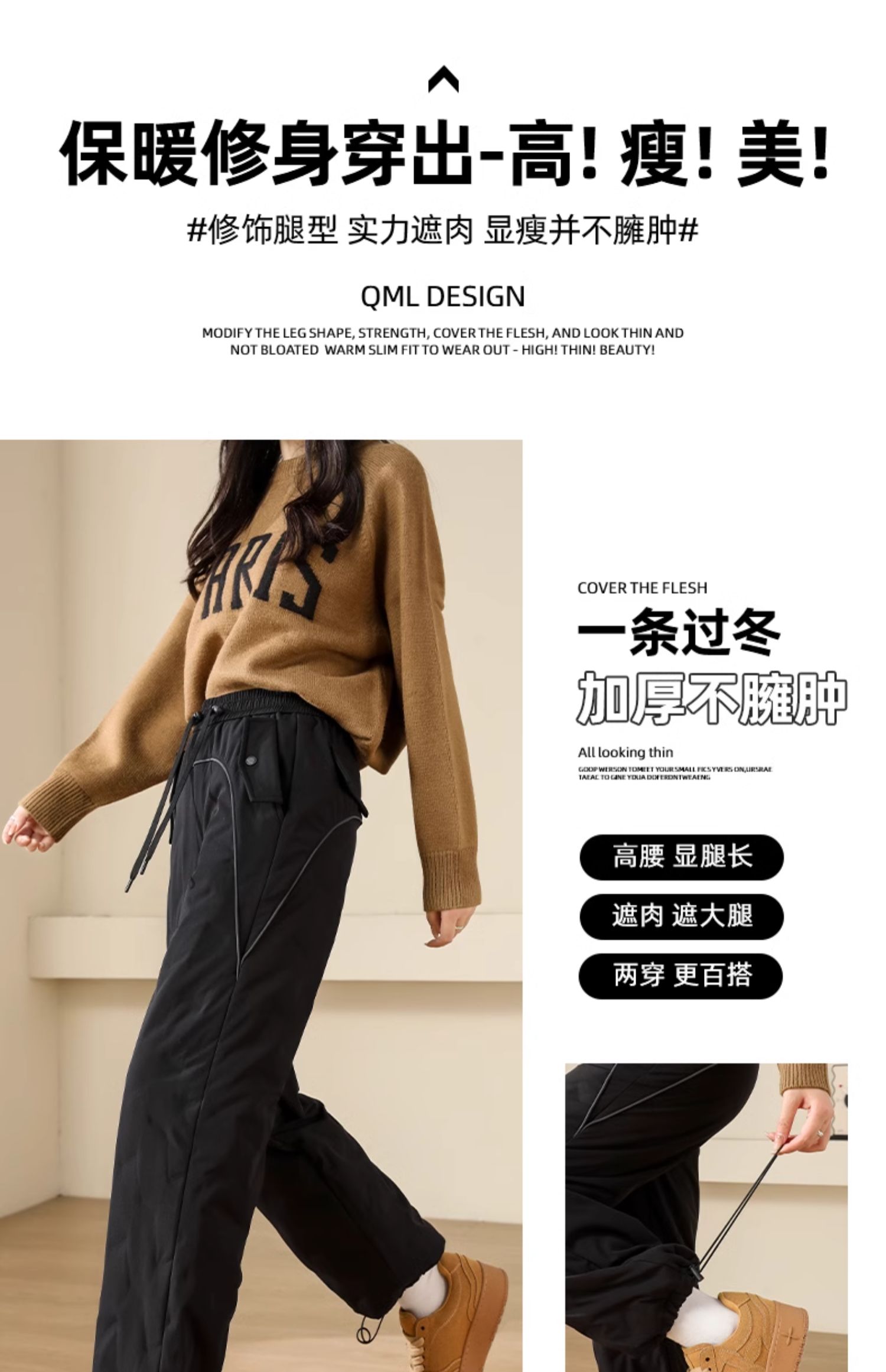 東北抗寒三防羽絨褲女外穿冬季加絨加厚雪地褲零下40度極寒棉褲子