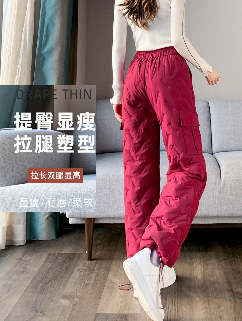 工裝羽絨棉褲女冬季外穿2025新款加厚零下40度防風防寒褲子直筒褲