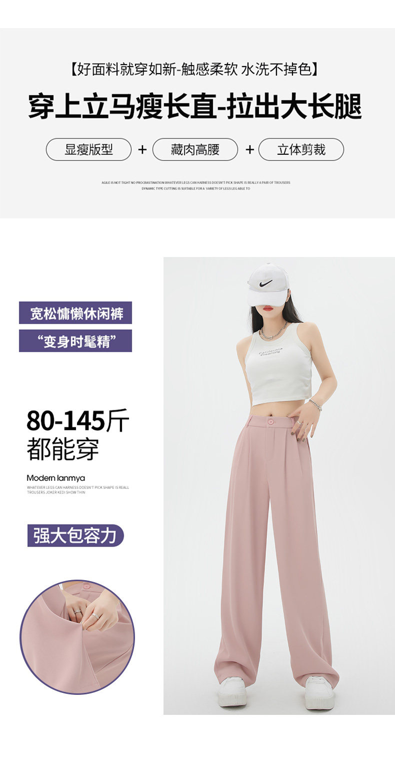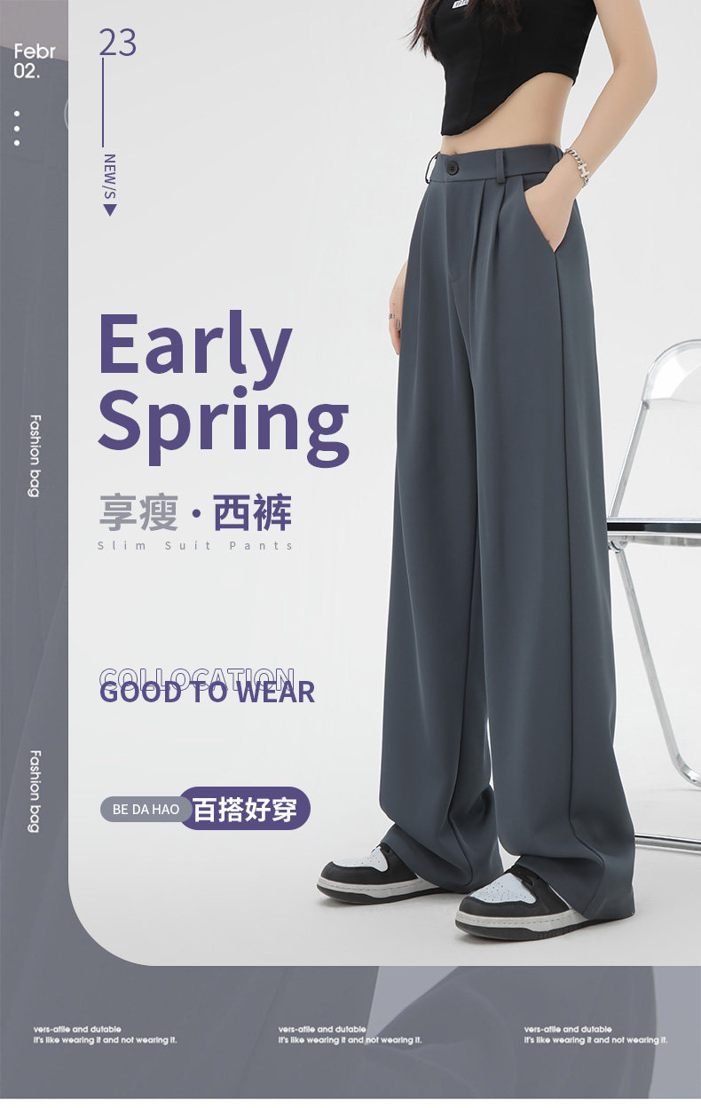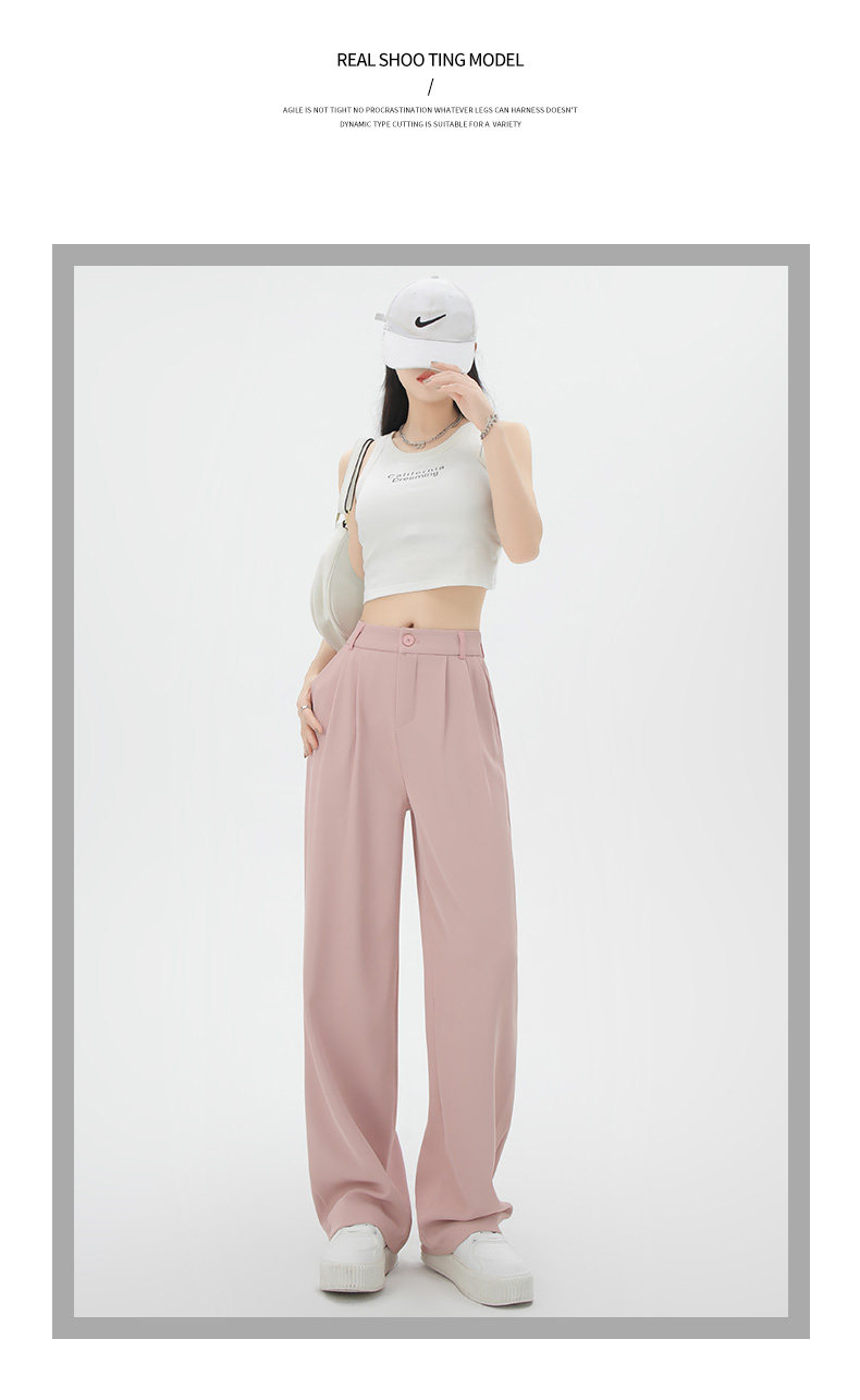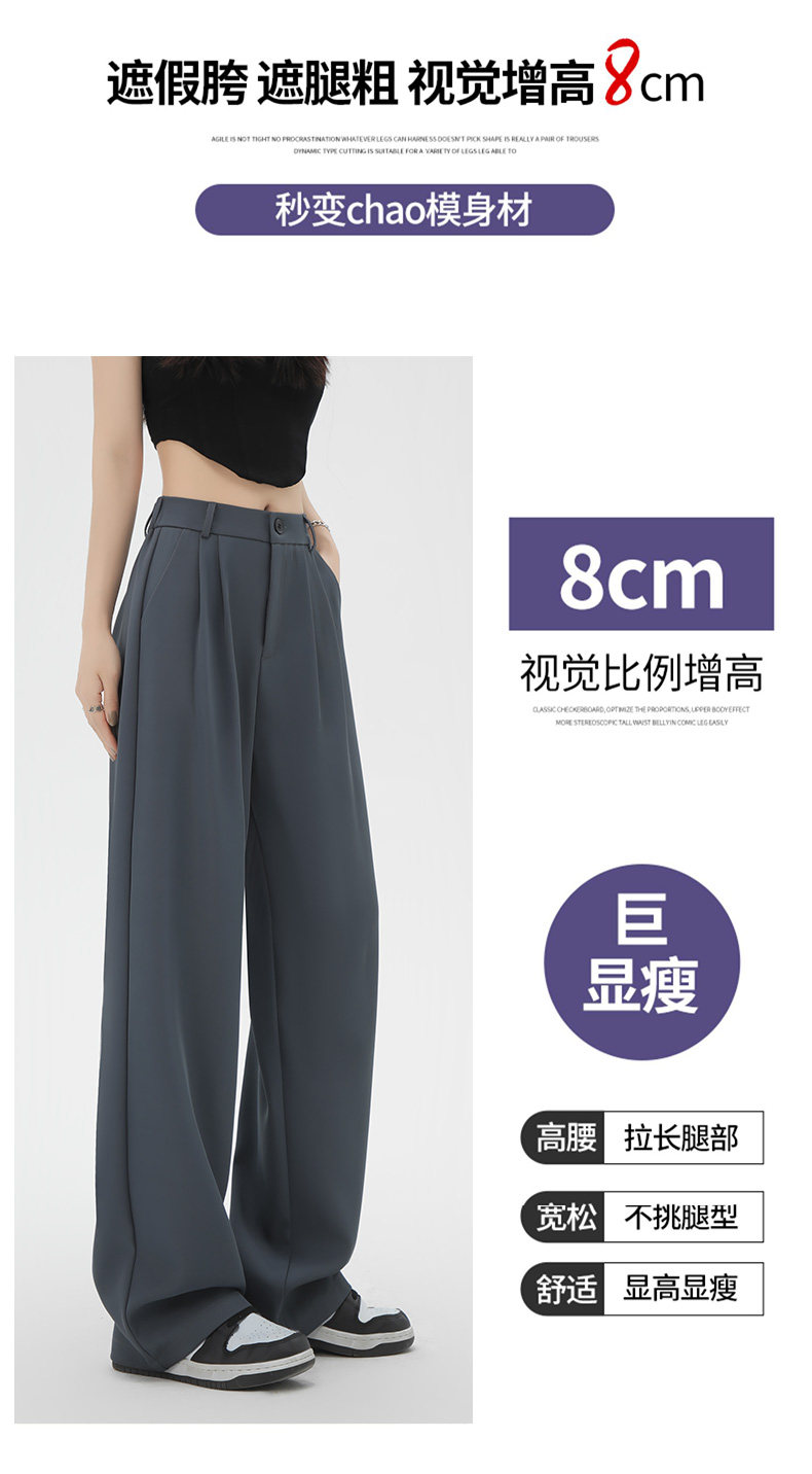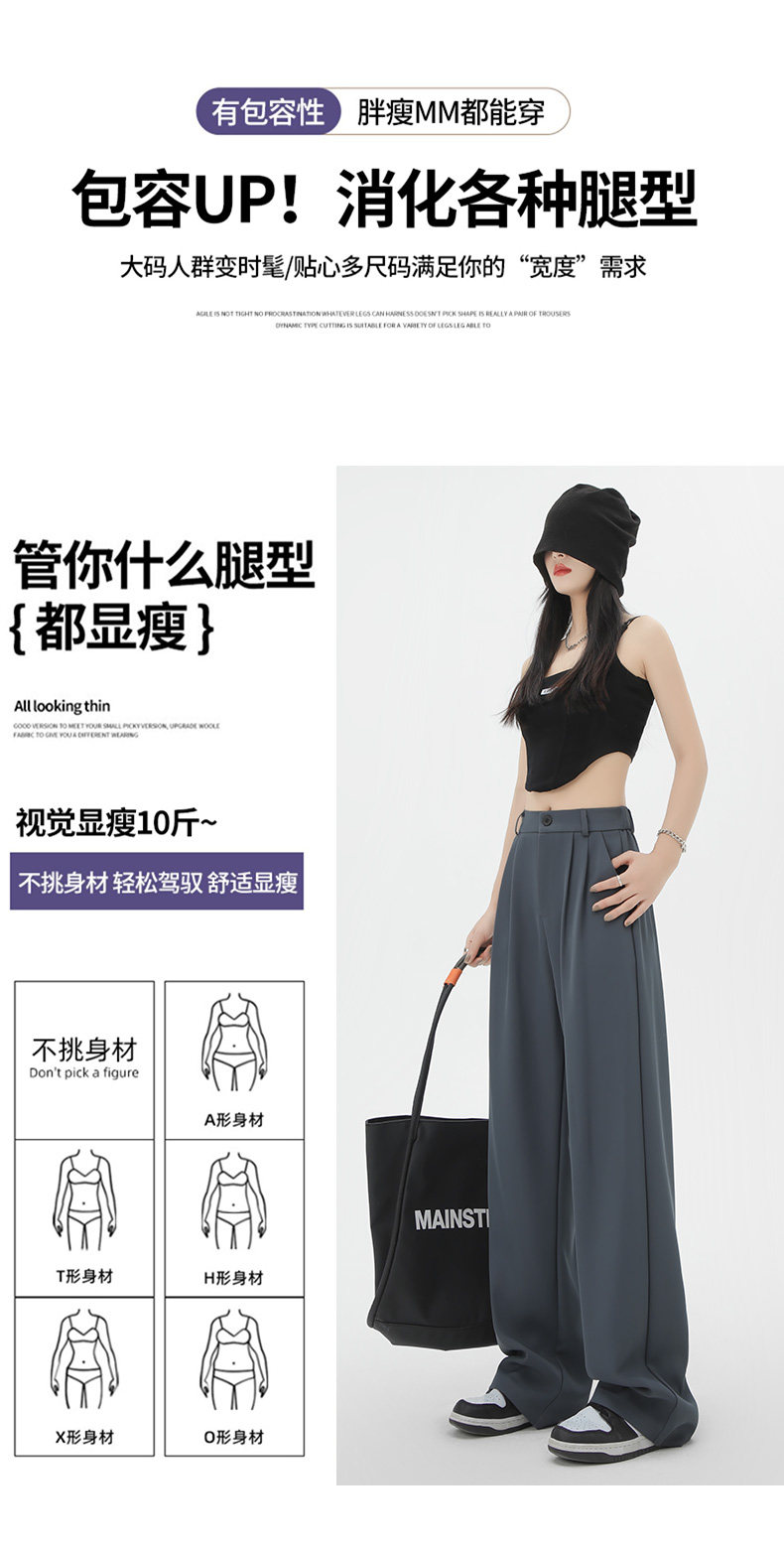 黑色窄版西裝褲女春夏季高腰垂感小個子寬鬆直筒顯瘦休閒濶腿褲子