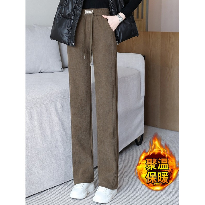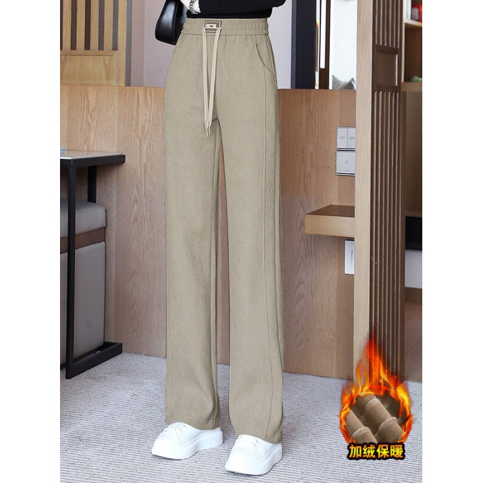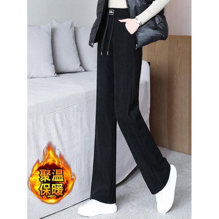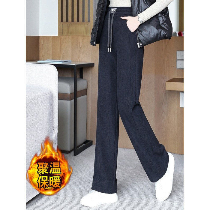 2026秋冬季新款窄版濶腿褲加絨加厚褲子寬鬆顯瘦高腰時尚外穿長褲