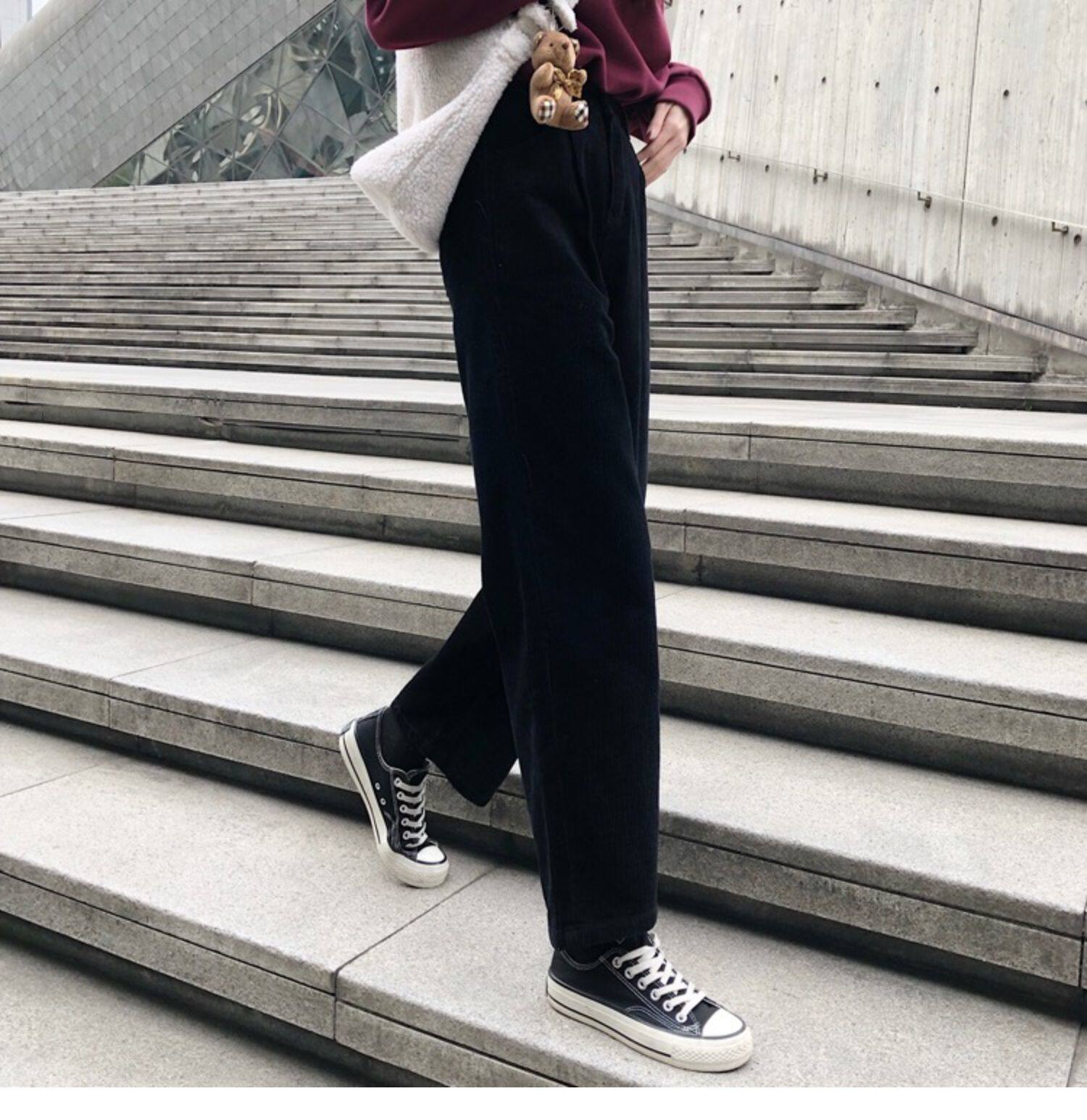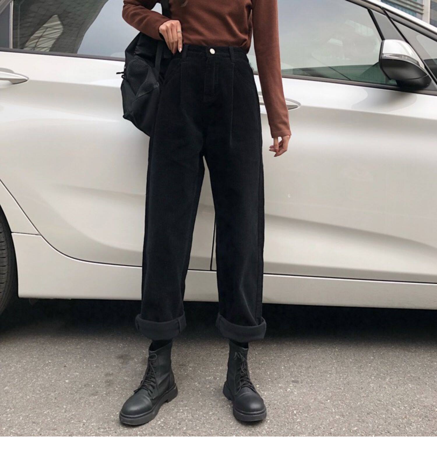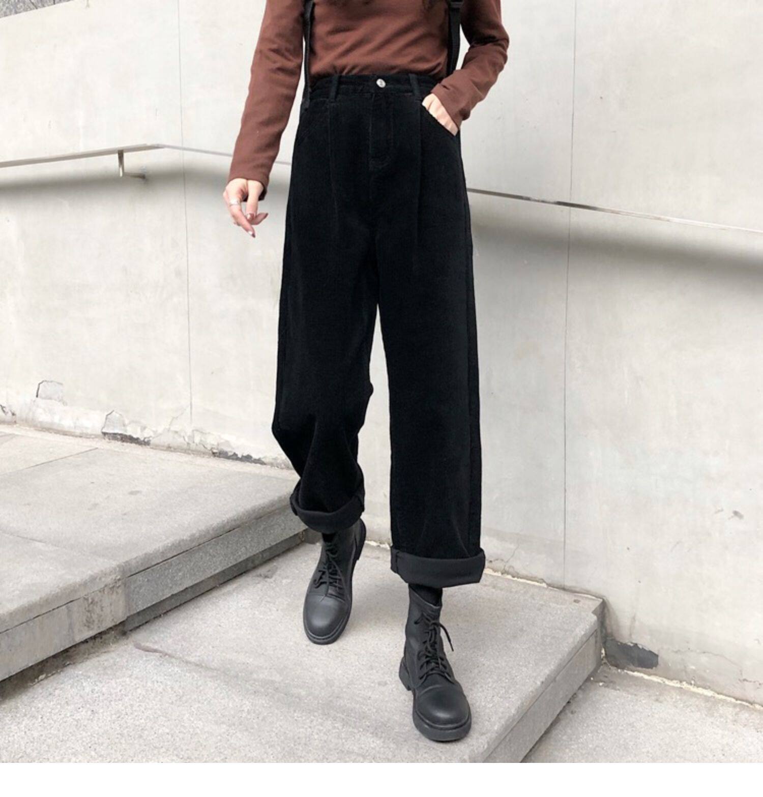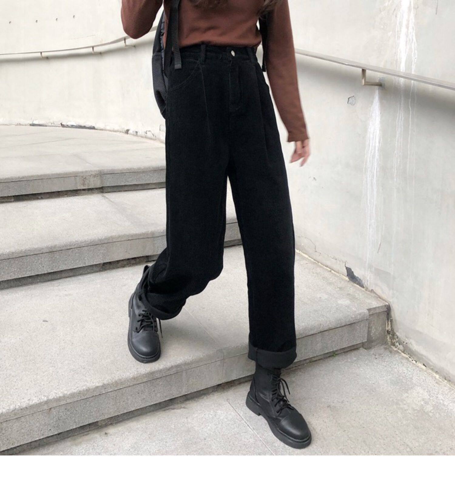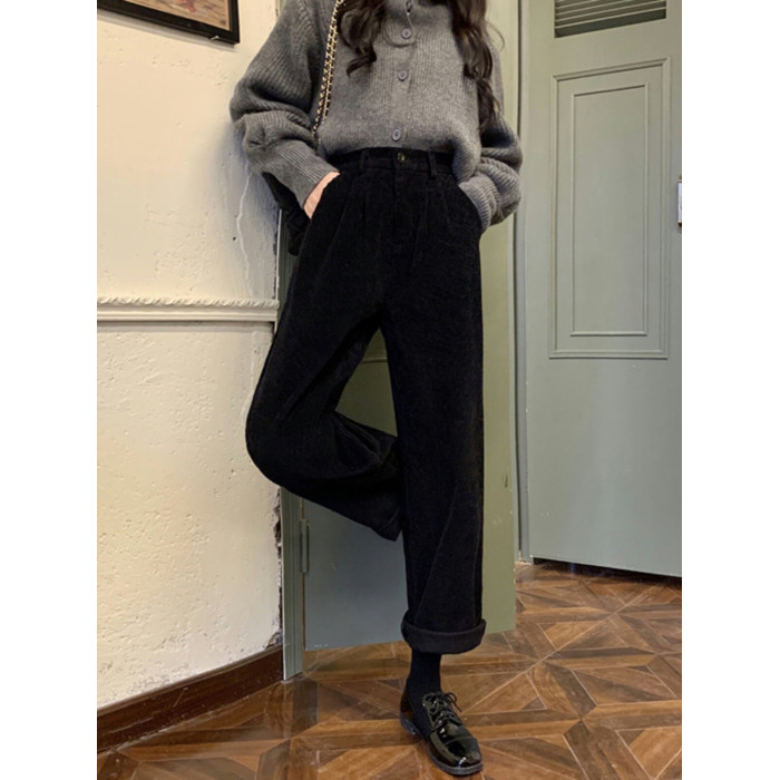 復古咖色燈芯絨褲子女秋冬加絨小個子八分濶腿顯瘦直筒垂感休閒褲