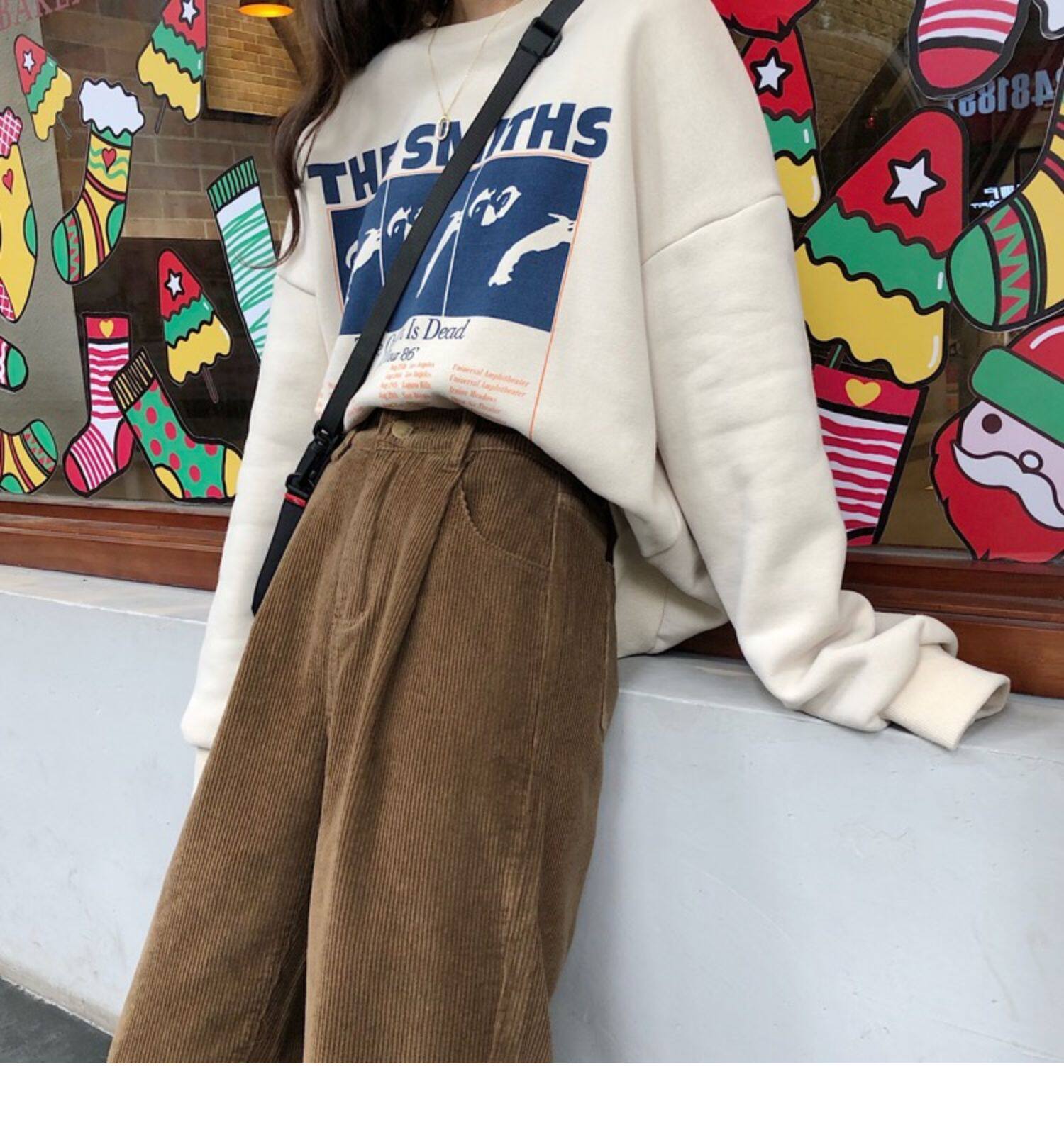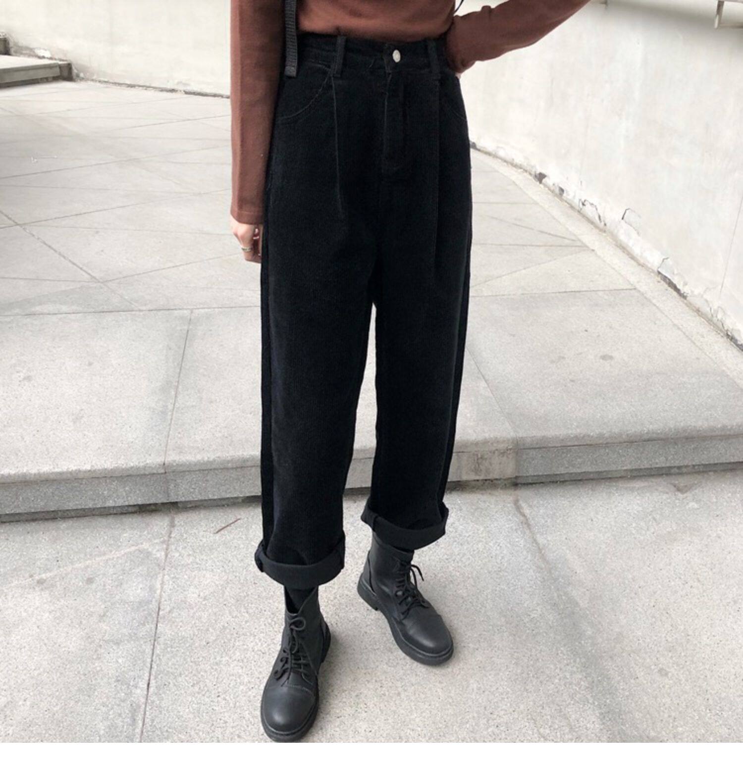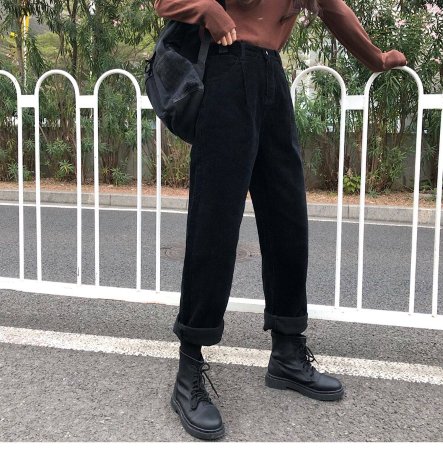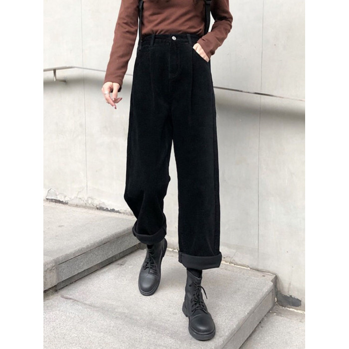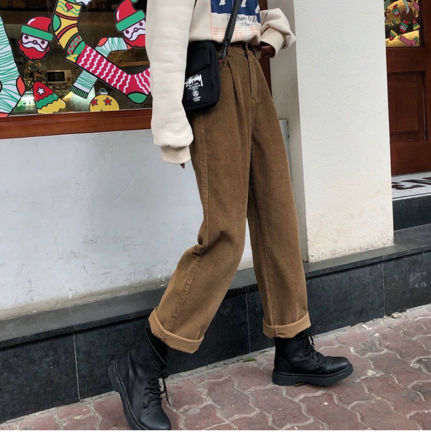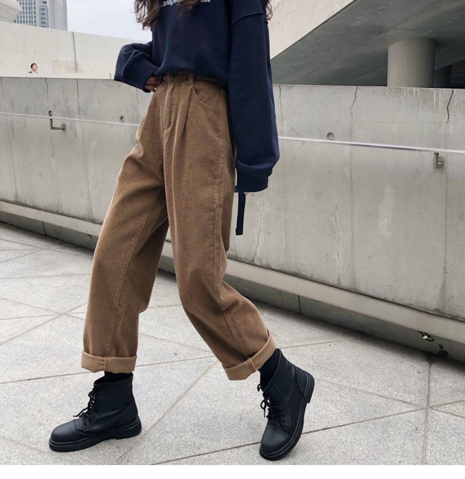 復古咖色燈芯絨褲子女秋冬加絨小個子八分濶腿顯瘦直筒垂感休閒褲