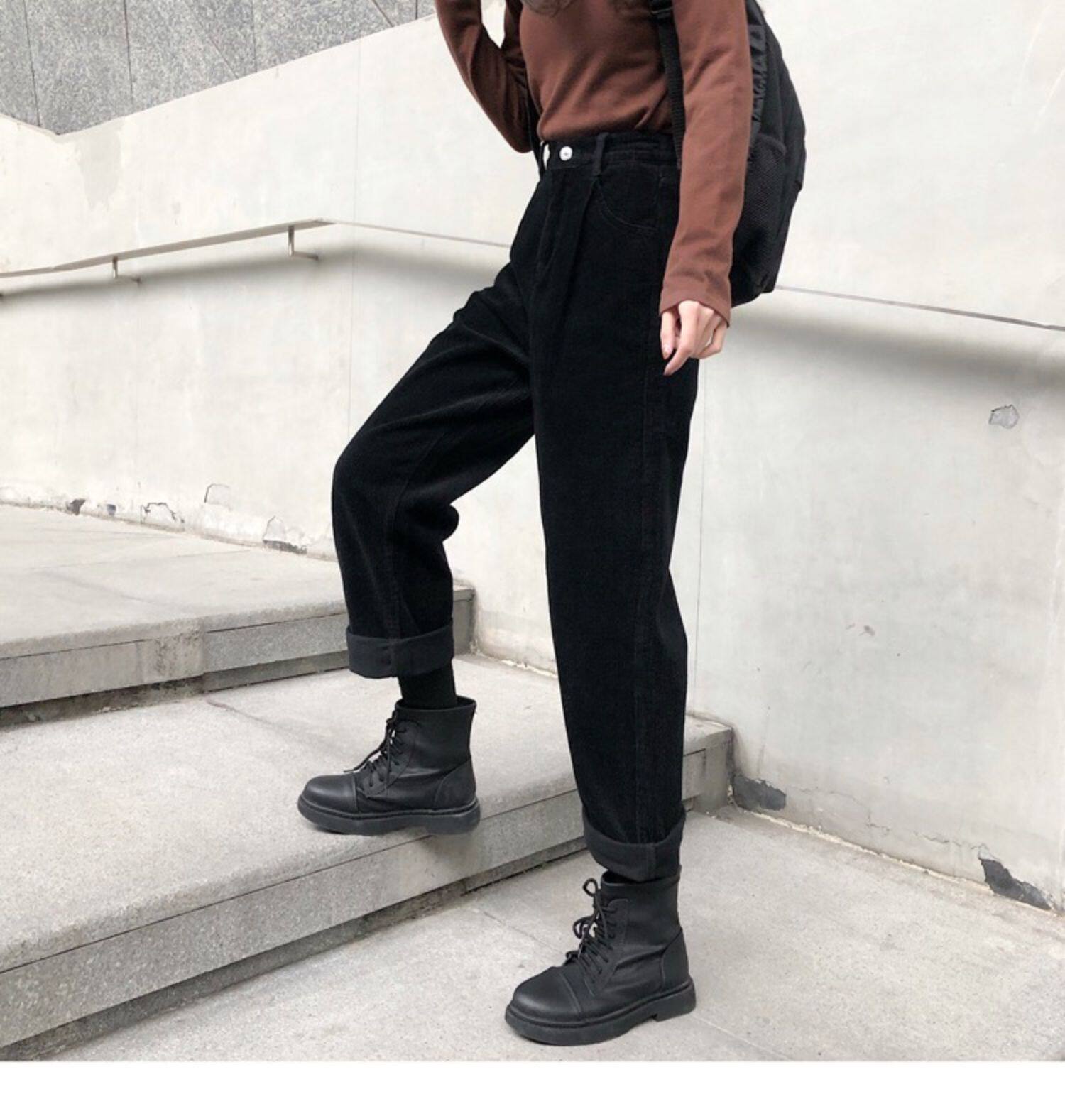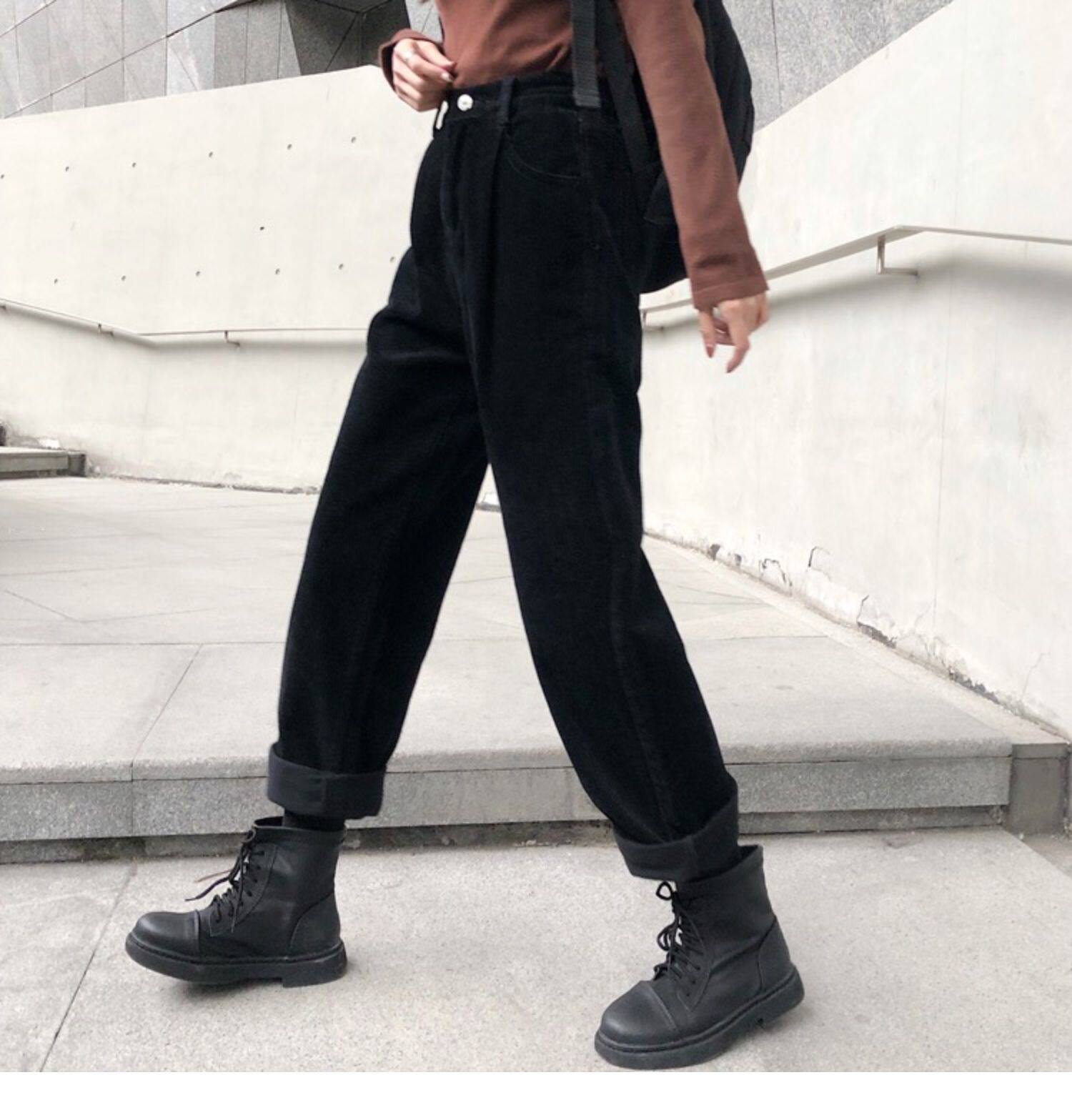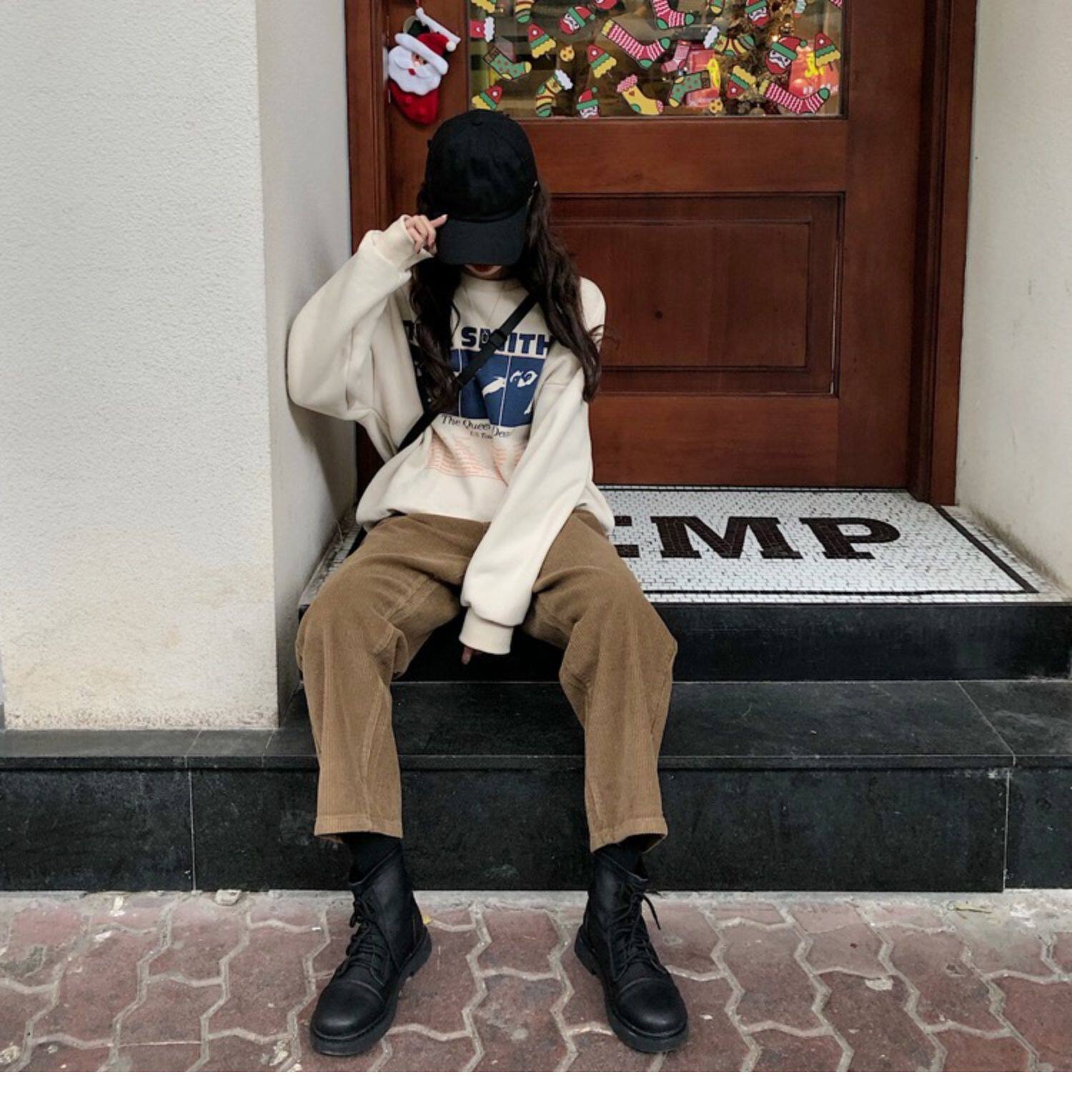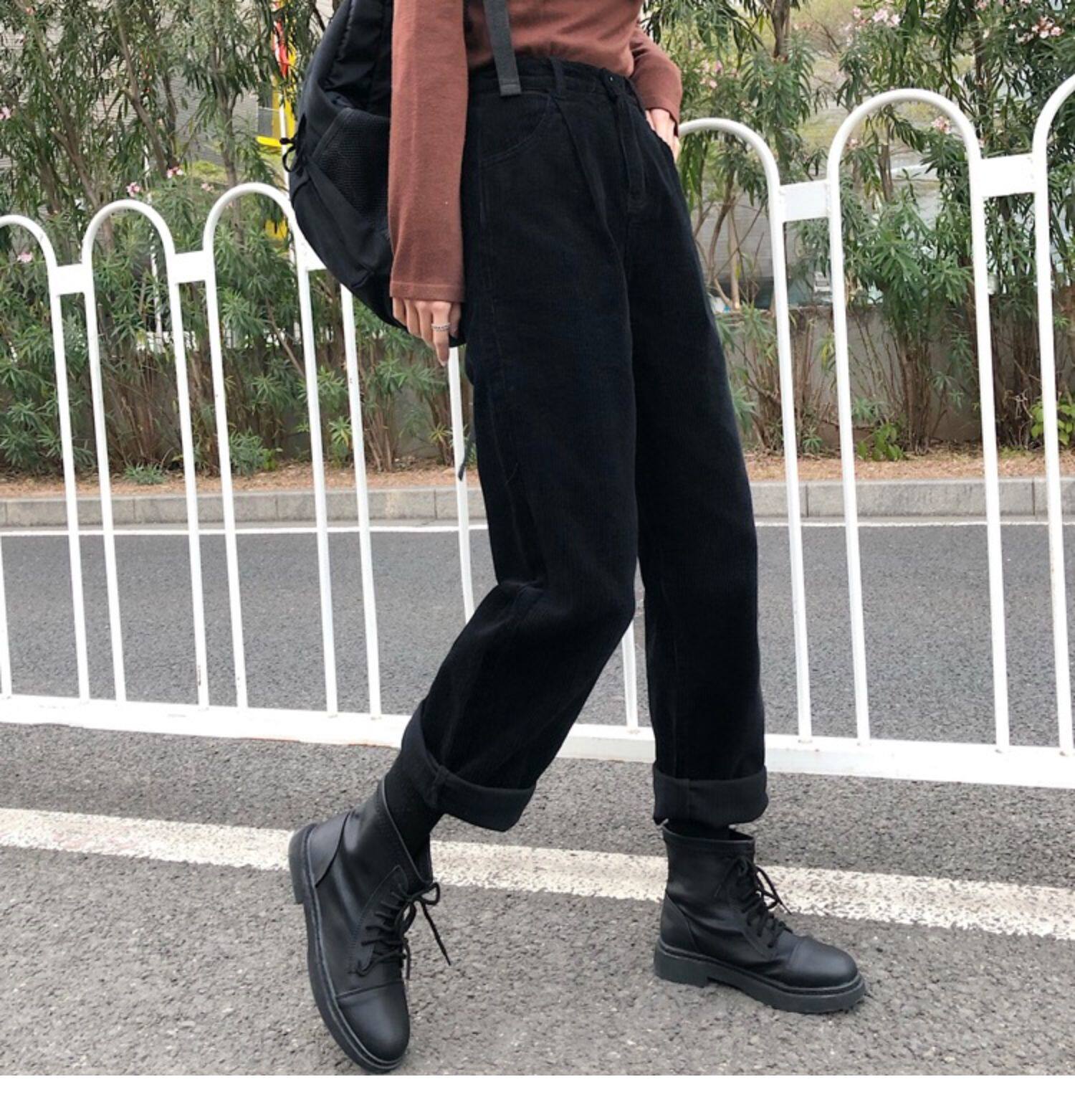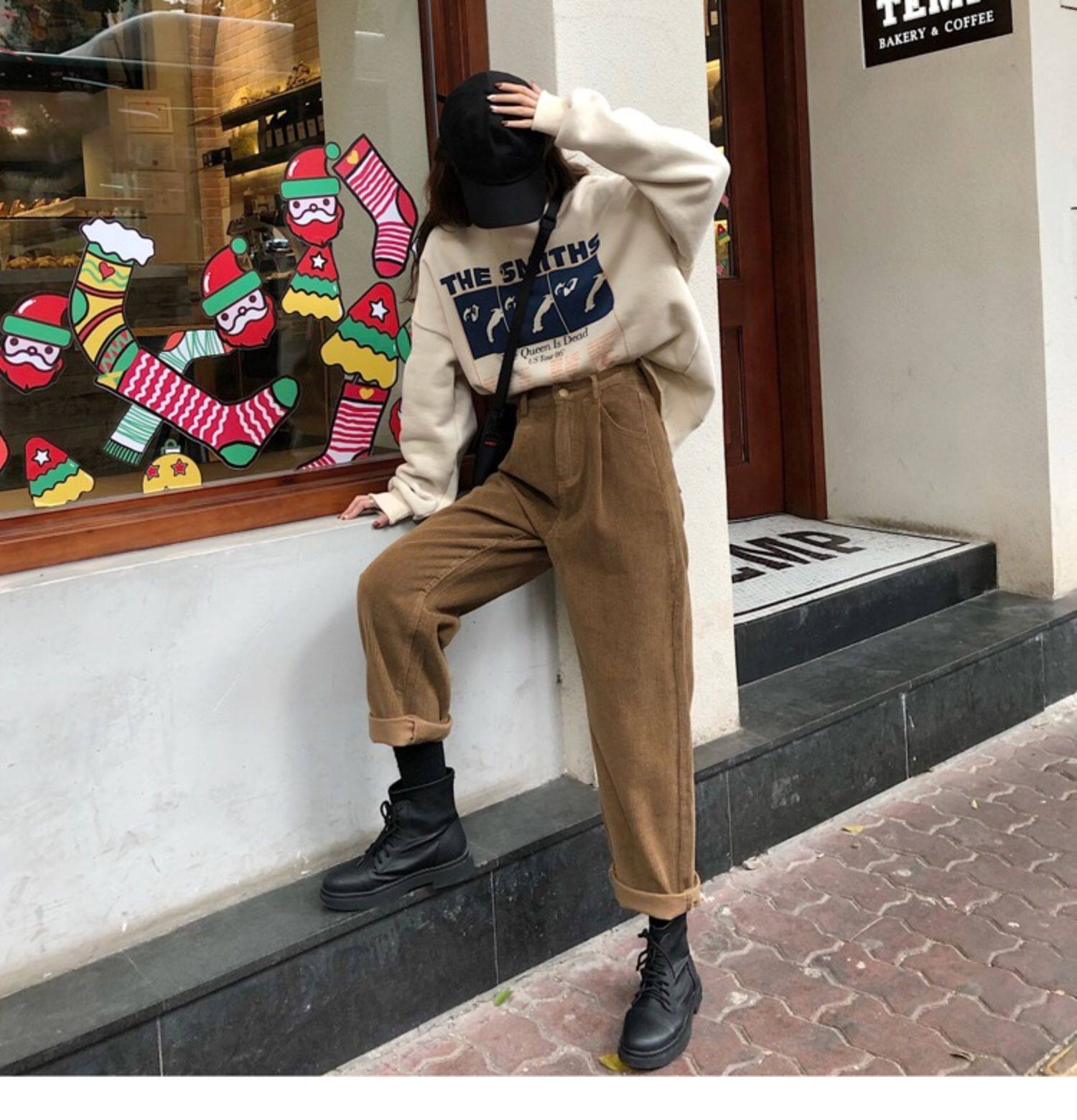 復古咖色燈芯絨褲子女秋冬加絨小個子八分濶腿顯瘦直筒垂感休閒褲