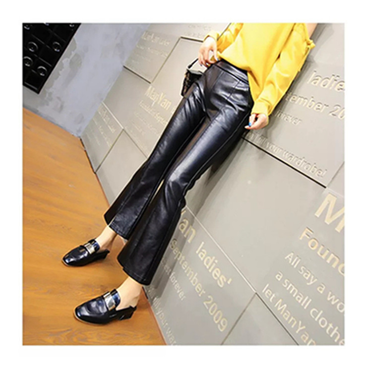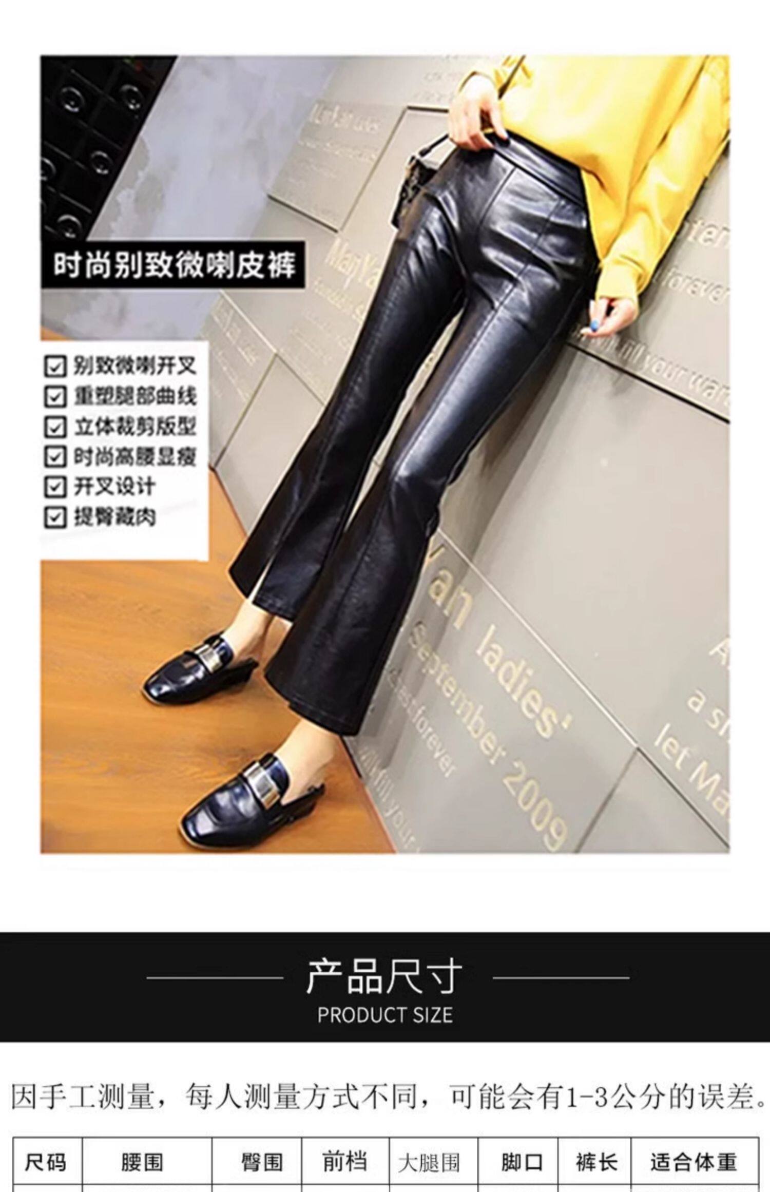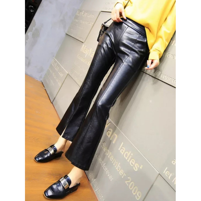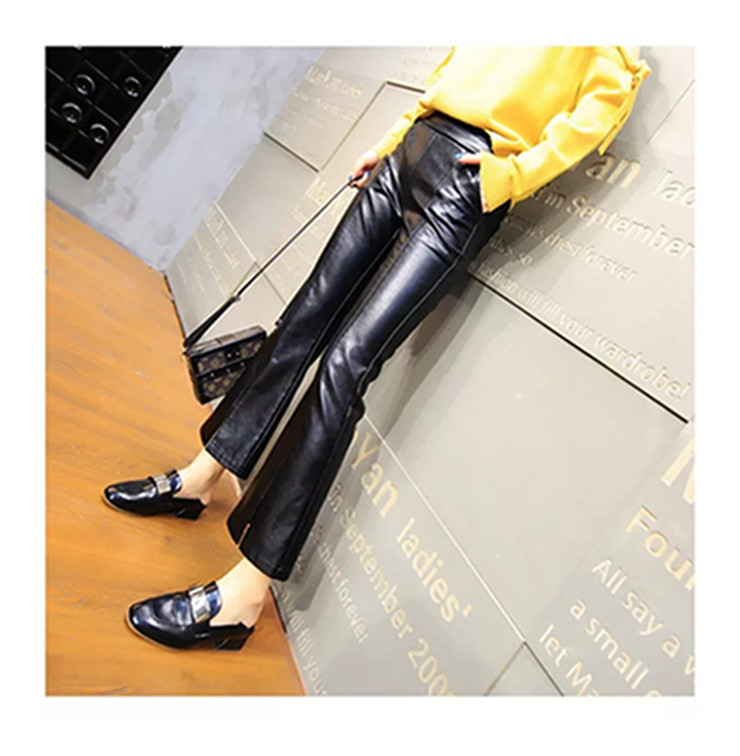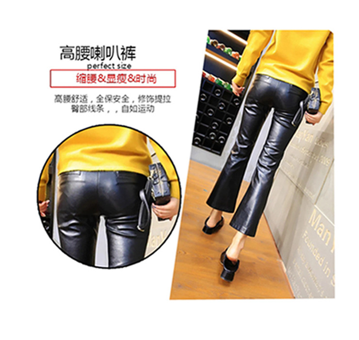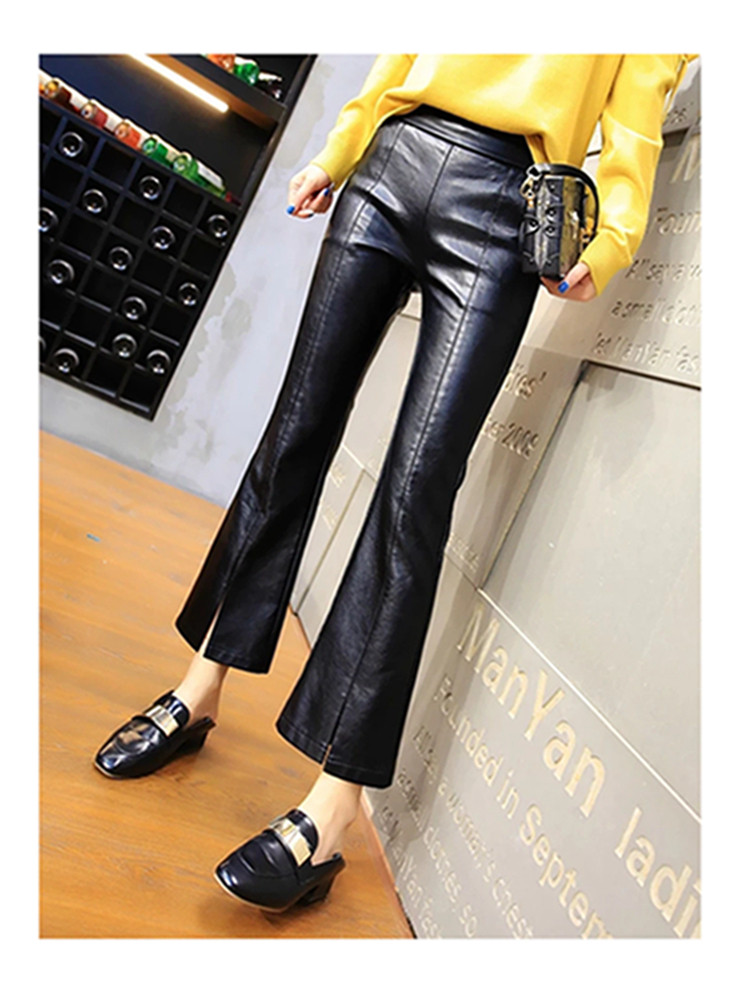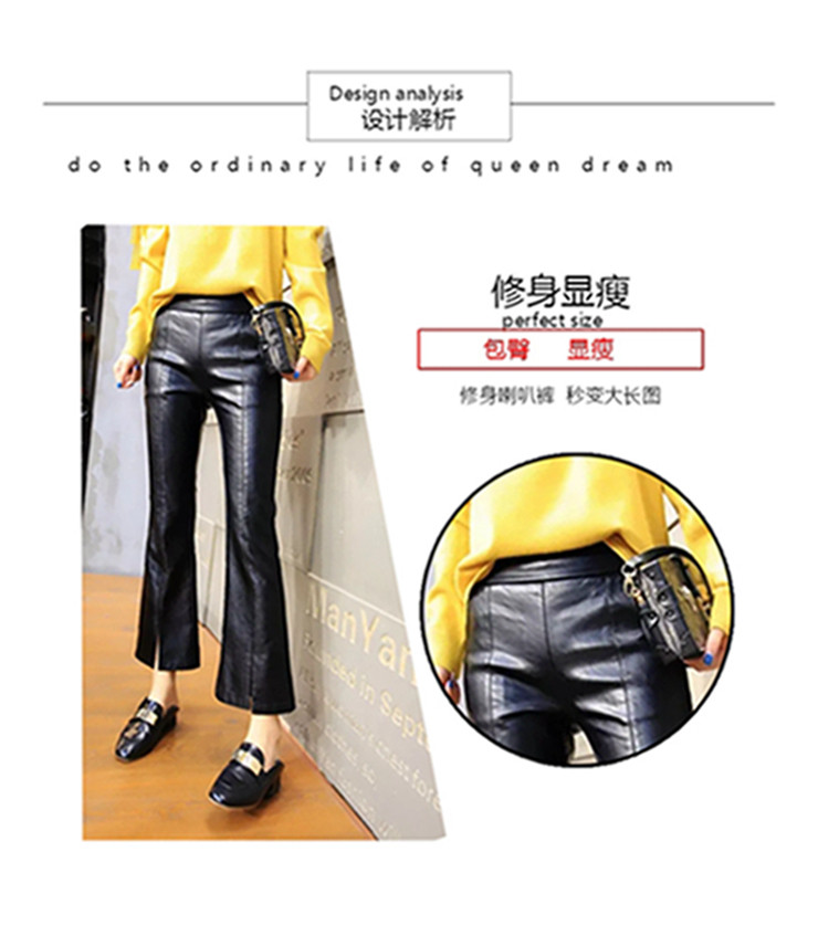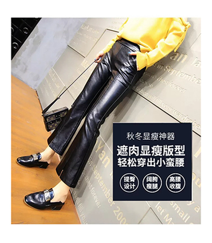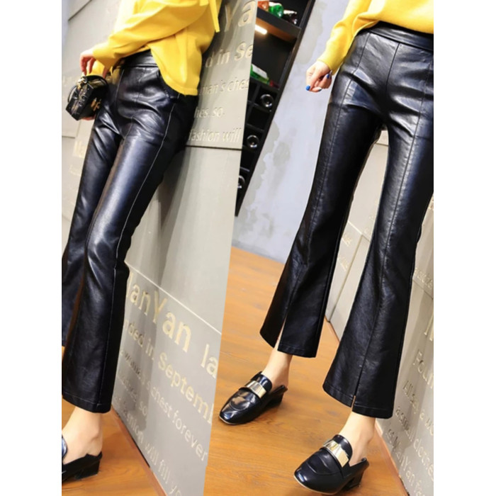 皮褲女2025秋冬新遮肉薄款顯瘦開叉微喇潮牌時尚PU皮九分喇叭褲子
