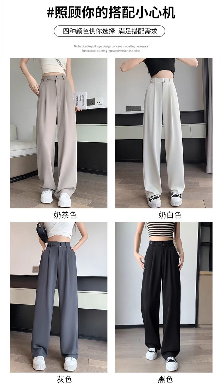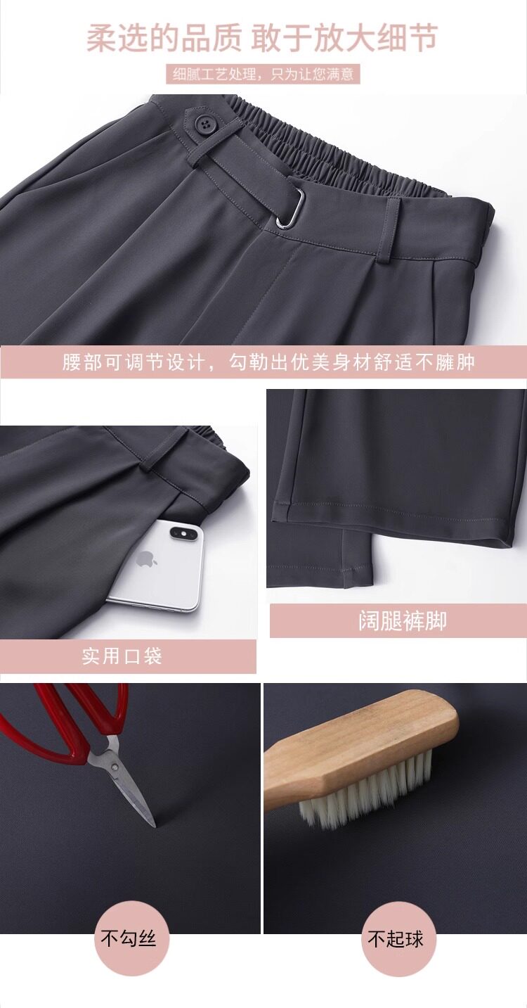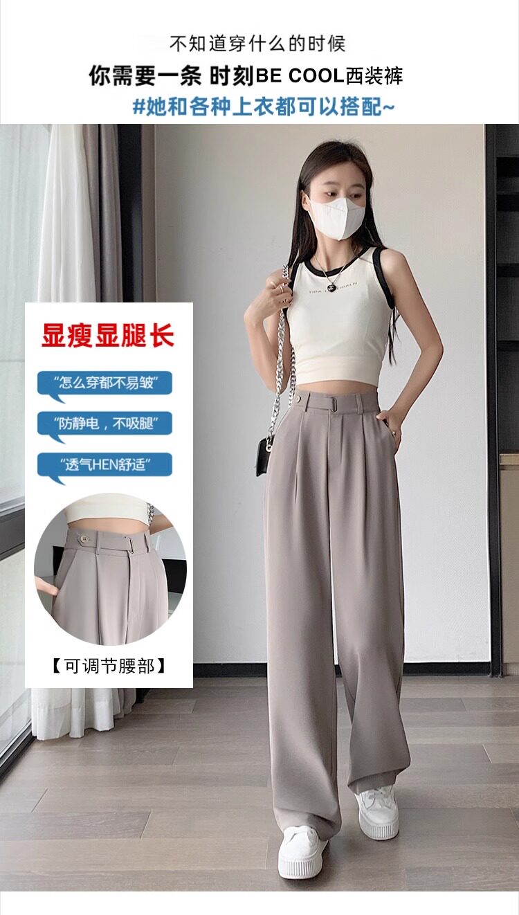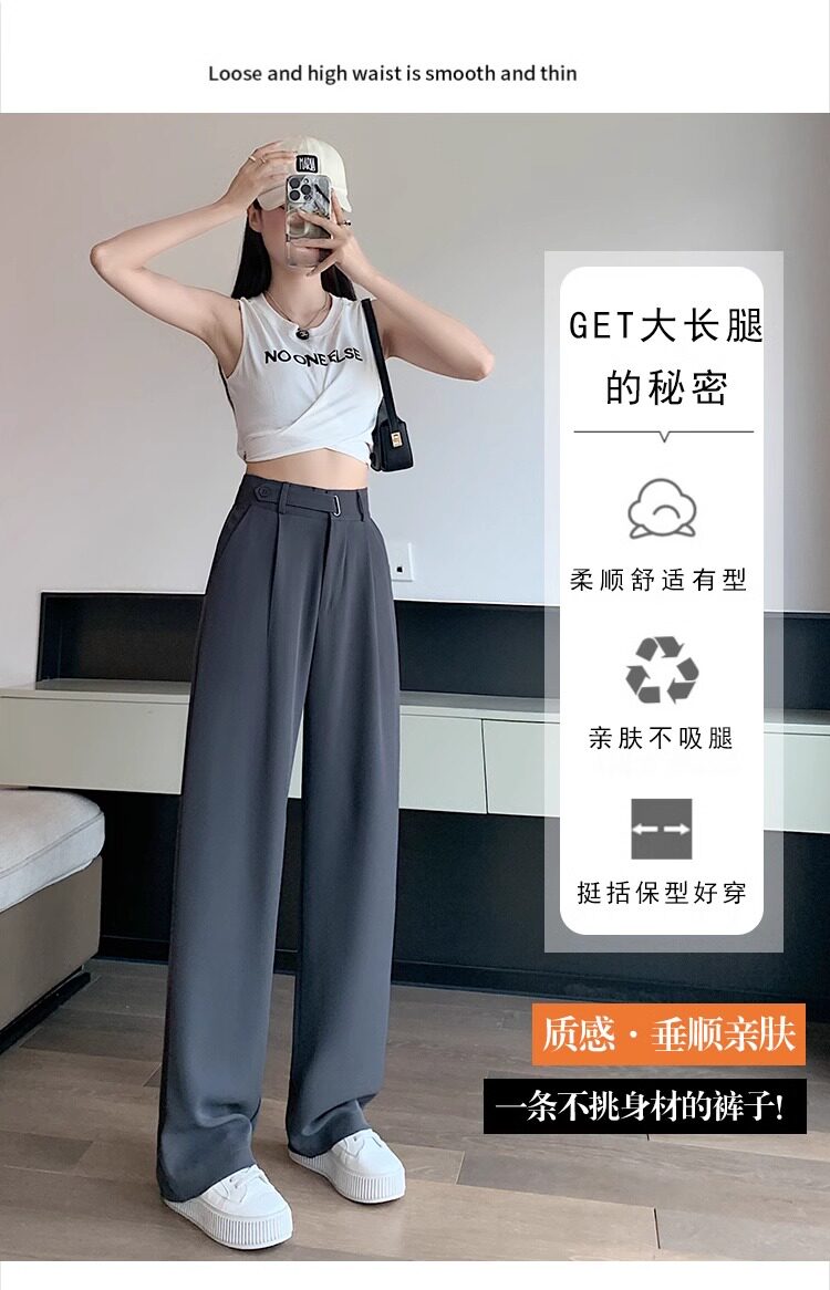 冰絲西裝濶腿褲女夏季薄款小個子高腰垂感寬鬆窄版直筒褲拖地褲子