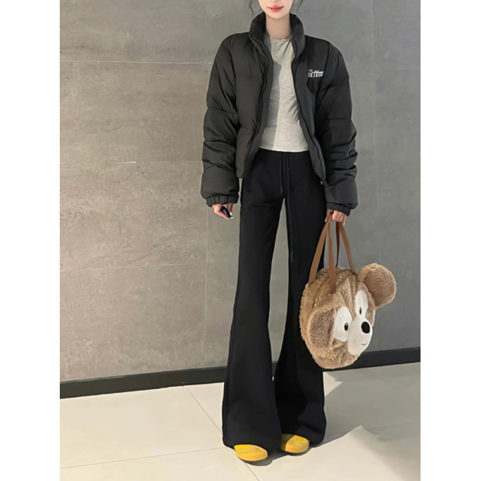 175高個子加長180高腰抽繩微喇休閒褲女加絨修身顯瘦垂感運動衛褲