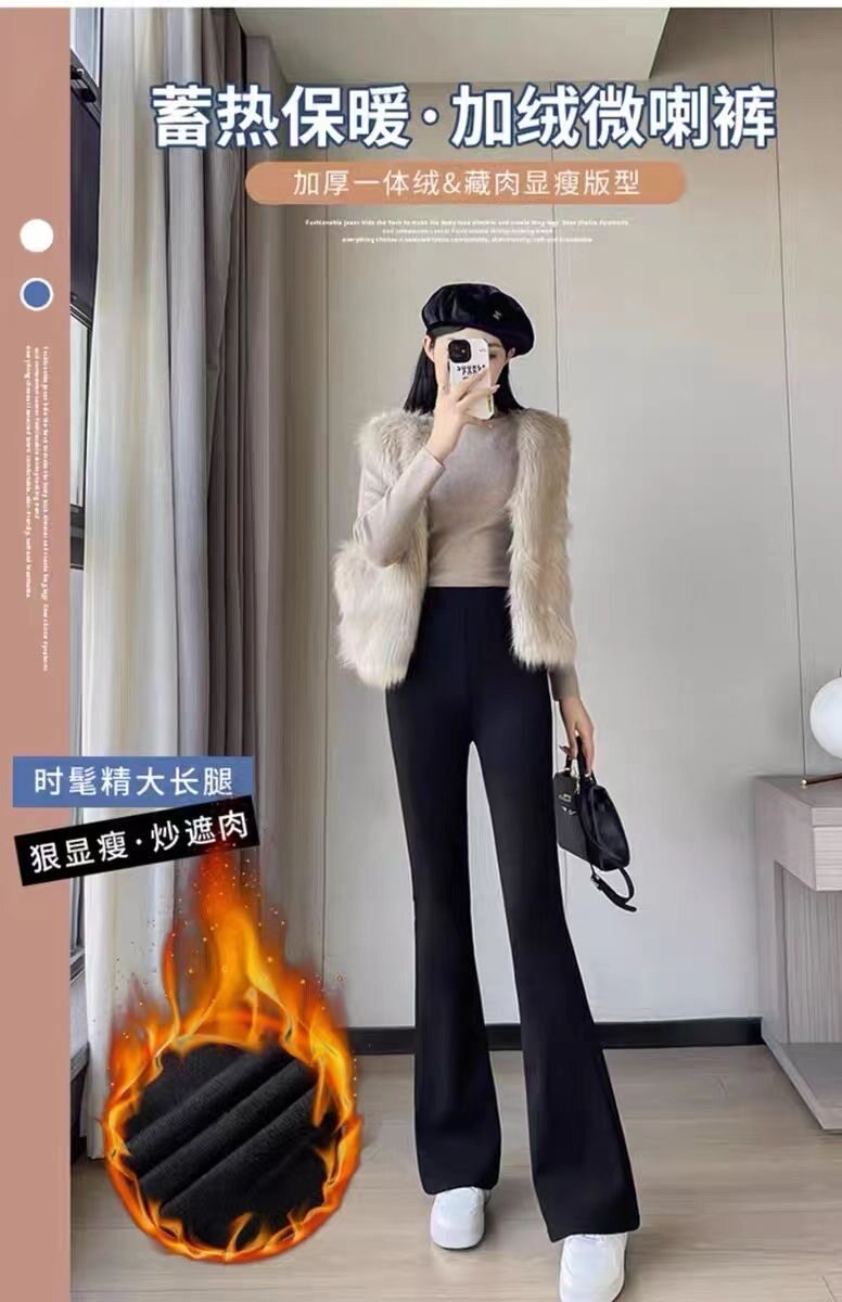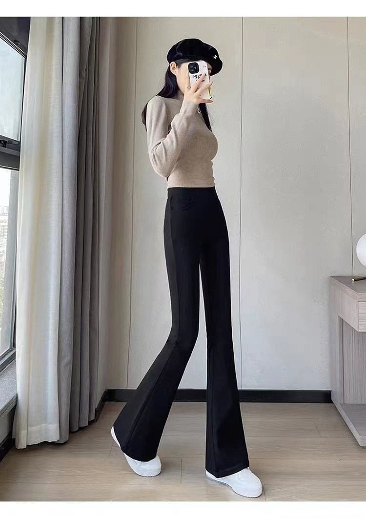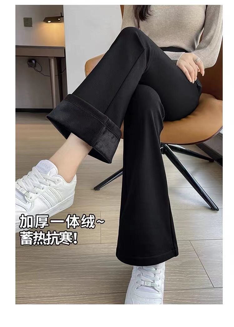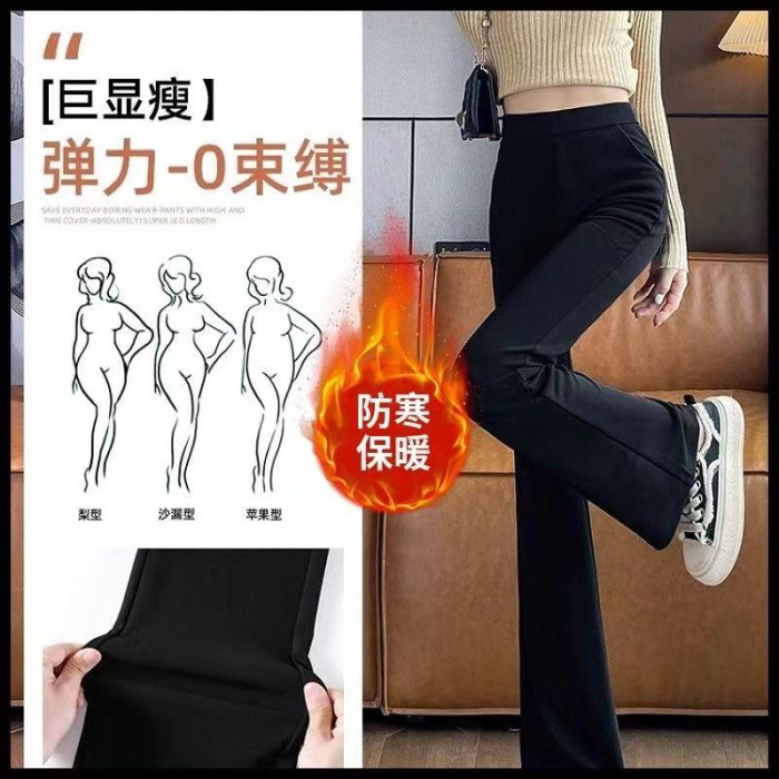 黑色喇叭褲加絨高腰褲子2025顯瘦垂感新款休閒西裝褲秋冬高檔遮肉