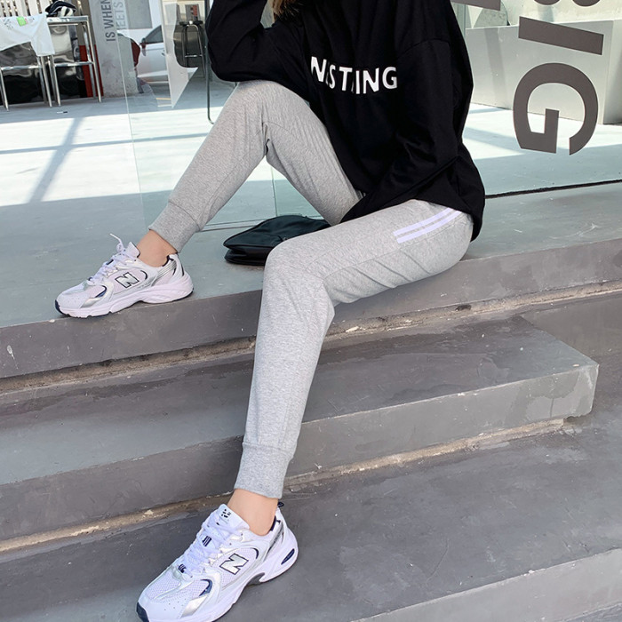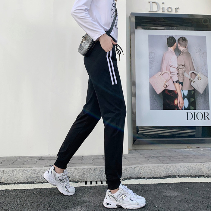 氣質通勤松緊腰百搭盤釦黑色中腰有腰帶棉九分褲寬松型女褲簡約
