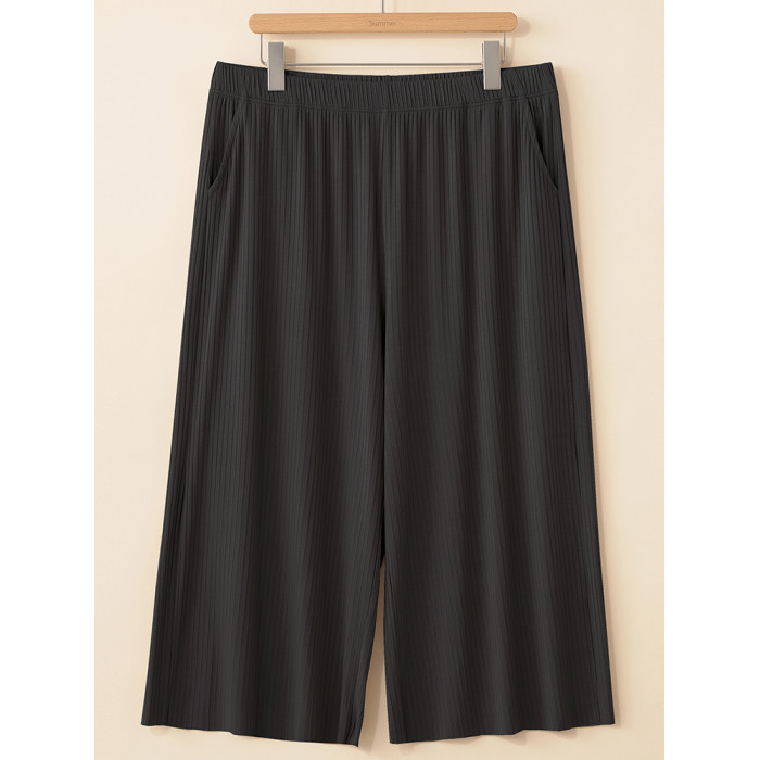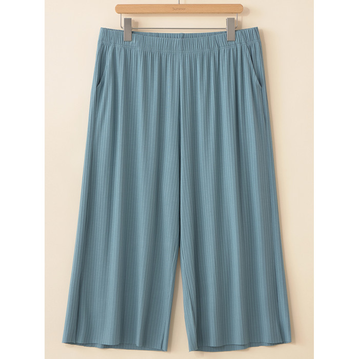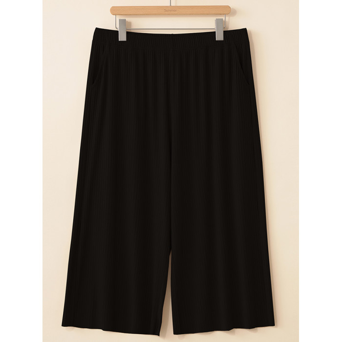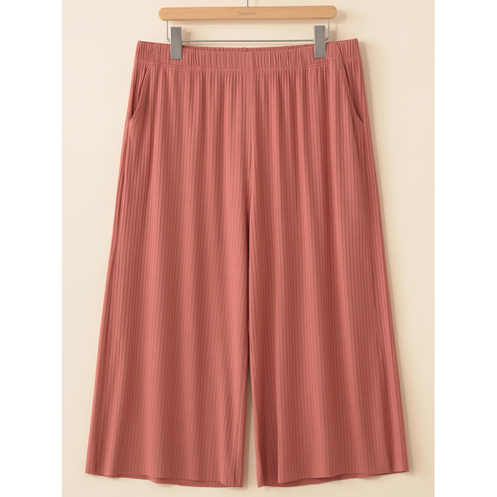 大碼濶腿褲女夏垂感薄八分褲加肥中老年高腰寬松彈力休閒褲200斤