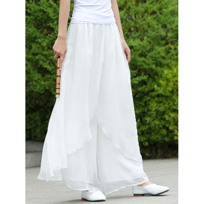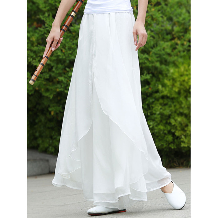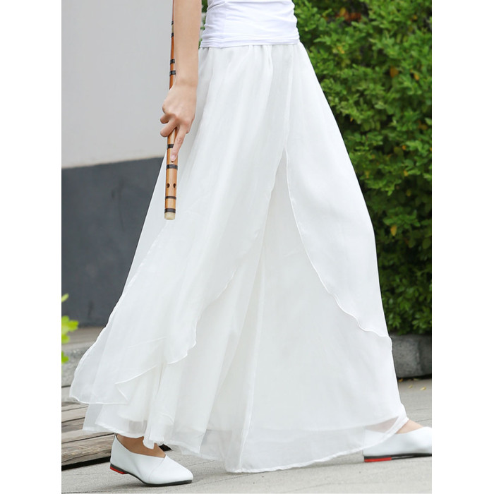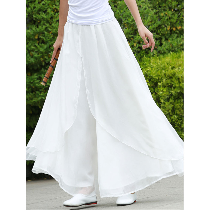 紗褲女濶腿褲雪紡紗濶腿裙褲寬松飄逸舞蹈褲薄款瑜伽褲茶服禪舞褲