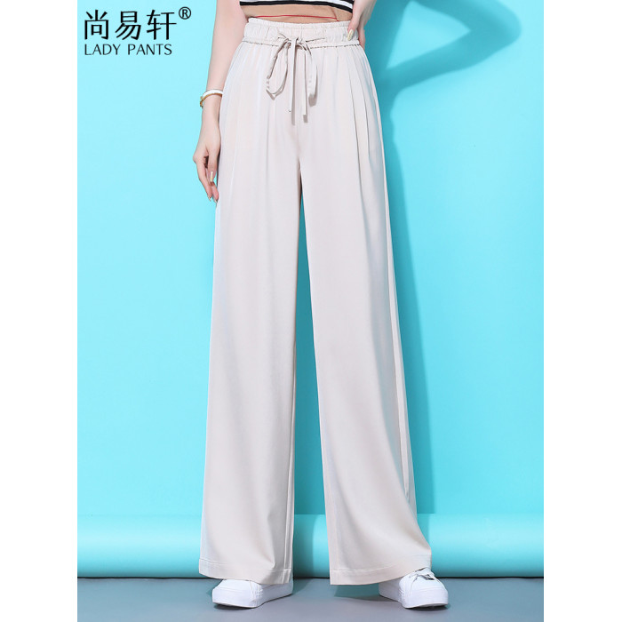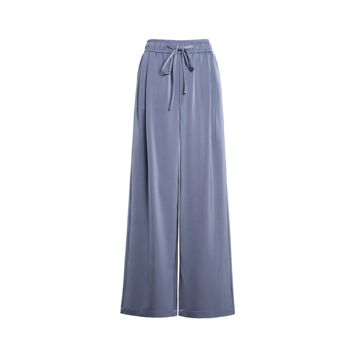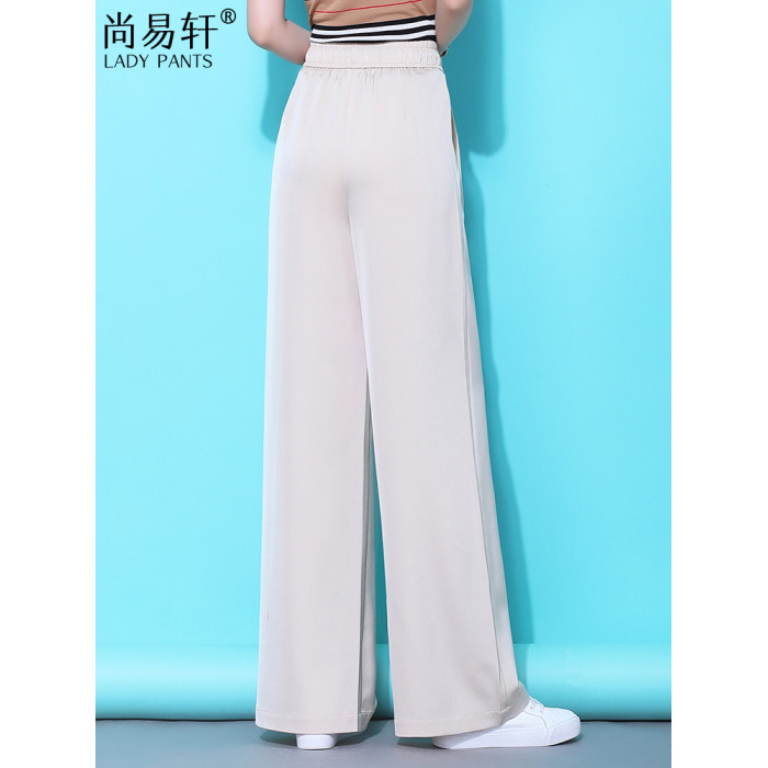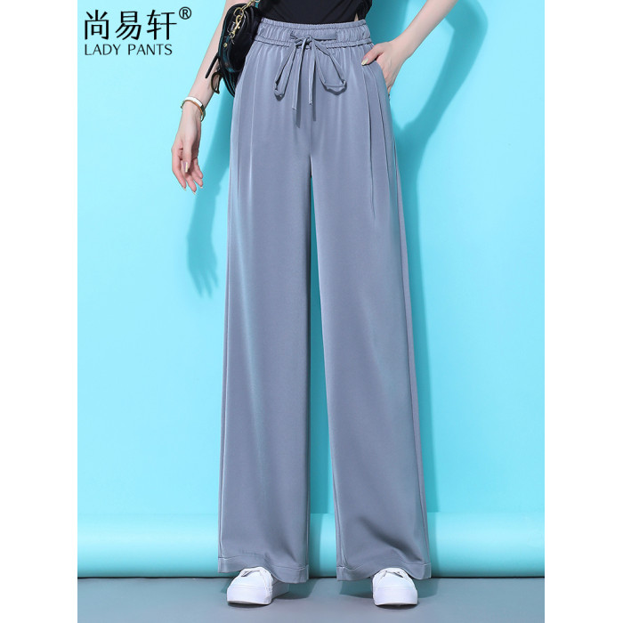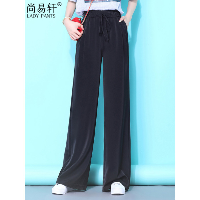 濶腿褲女夏高腰垂感直筒冰絲三醋酸緞面雲朵褲拖地休閒長褲