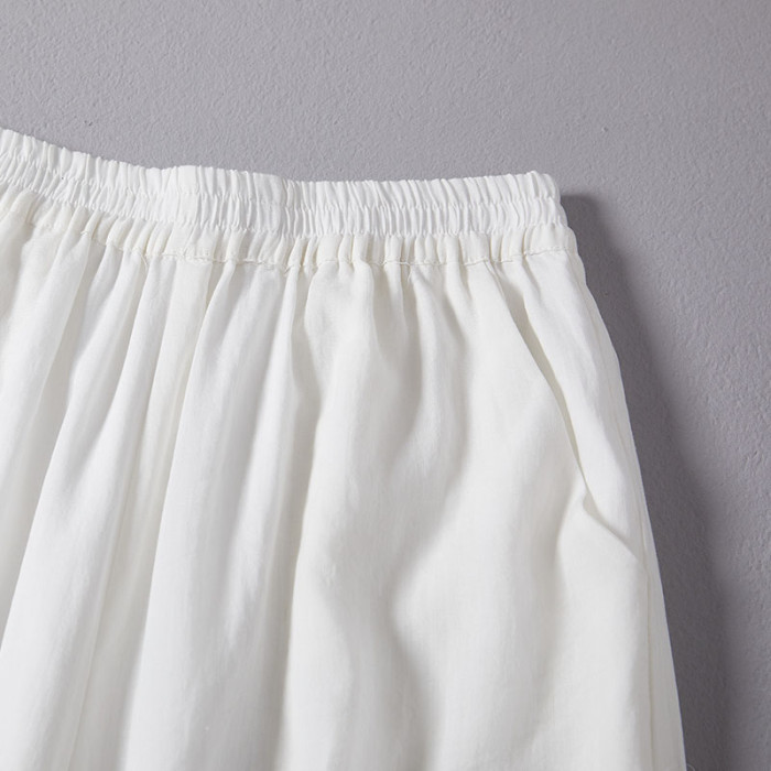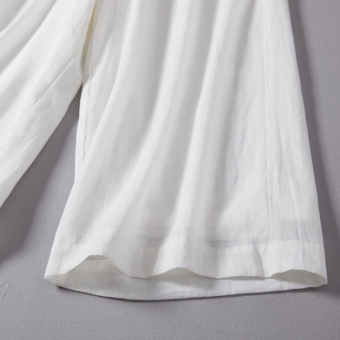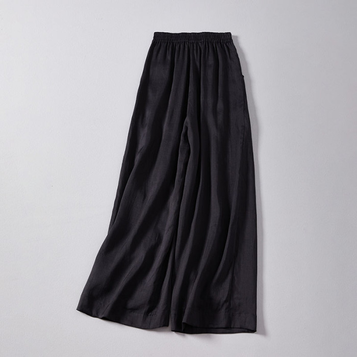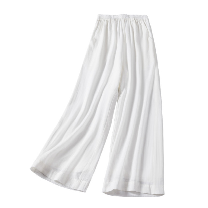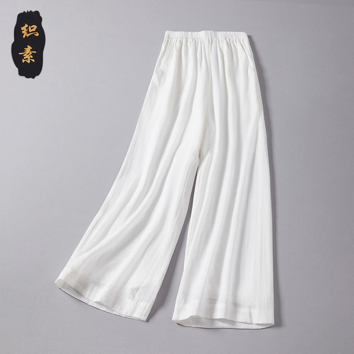 2025春夏苧麻濶腿褲女松緊腰薄款雙層棉麻禪茶服單穿打底薄長褲