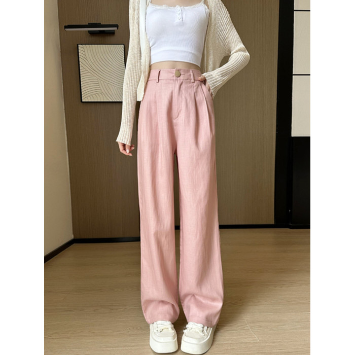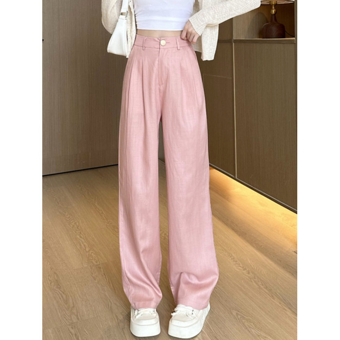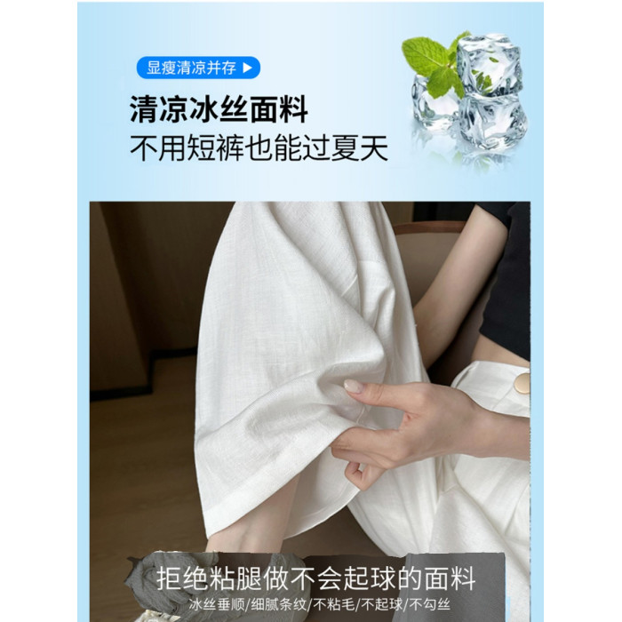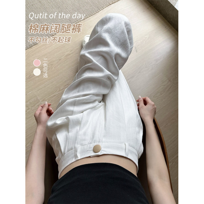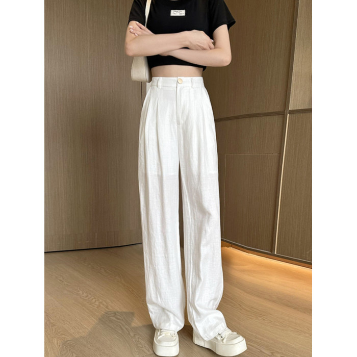 夏季薄款亞麻白色褲子2025新款夏天小個子垂感冰絲棉麻濶腿褲女夏