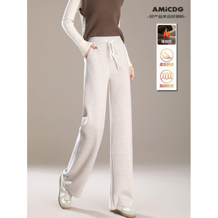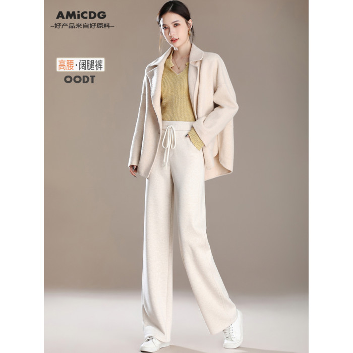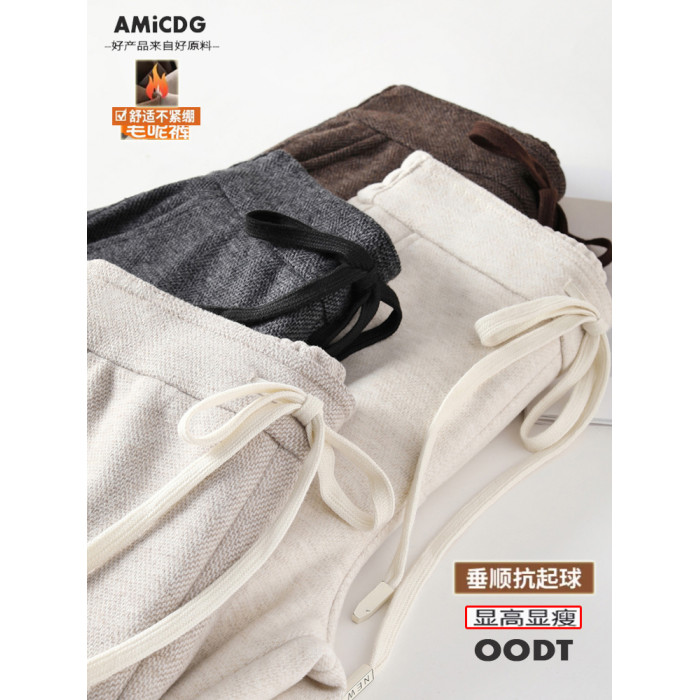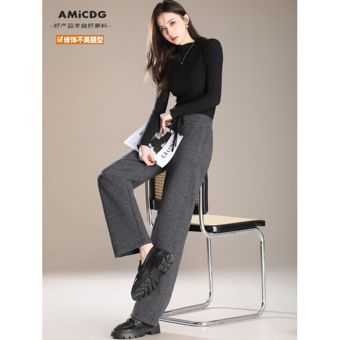 AMICDG法式毛呢直筒長褲女裝加厚高腰羊毛顯瘦窄版濶腿褲拖地西褲