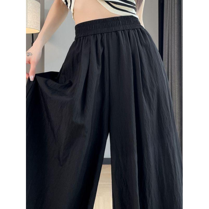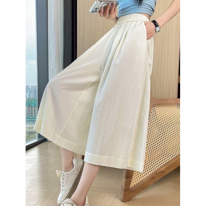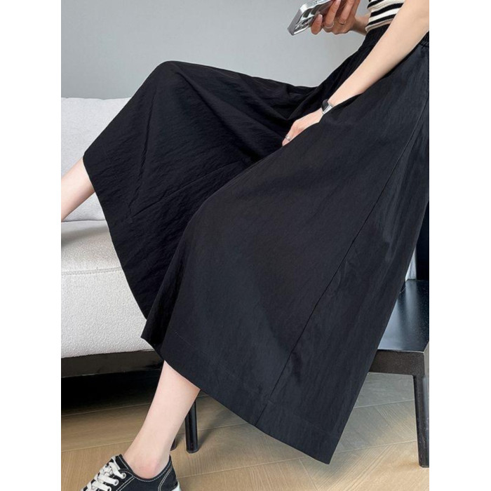 山本裙褲女小個子2025夏季薄新款高腰直筒寬松褲裙冰絲八分濶腿褲
