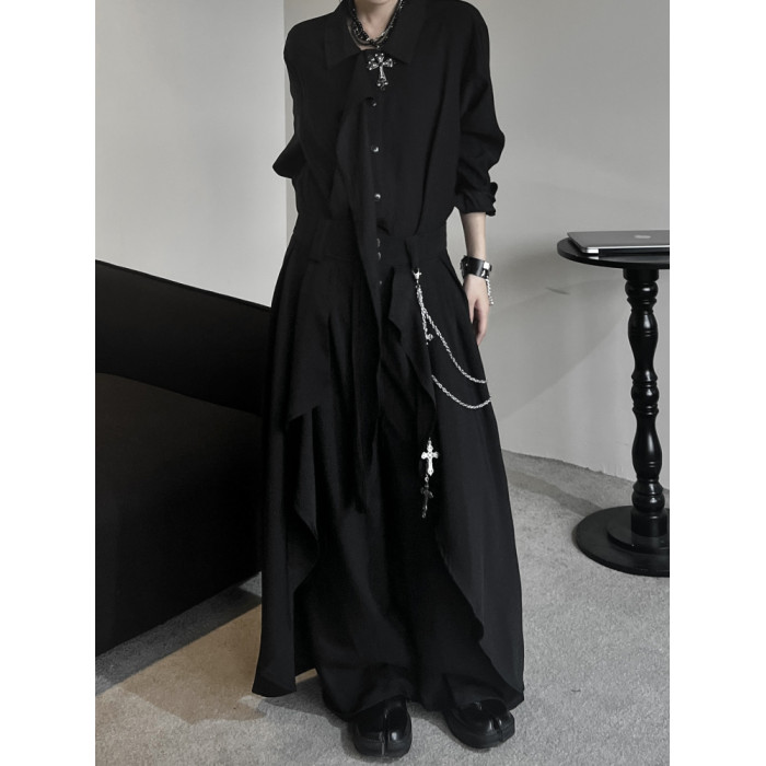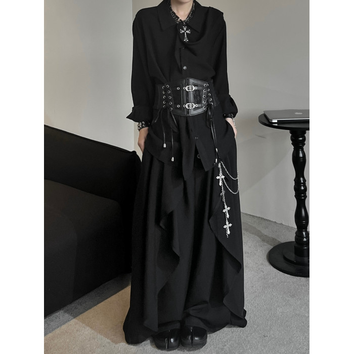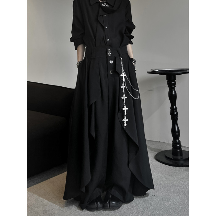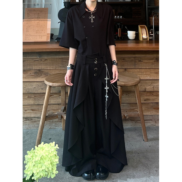 山本耀司風褲裙新中式暗黑寬松垂感小衆假兩件濶腿褲無性別九分褲