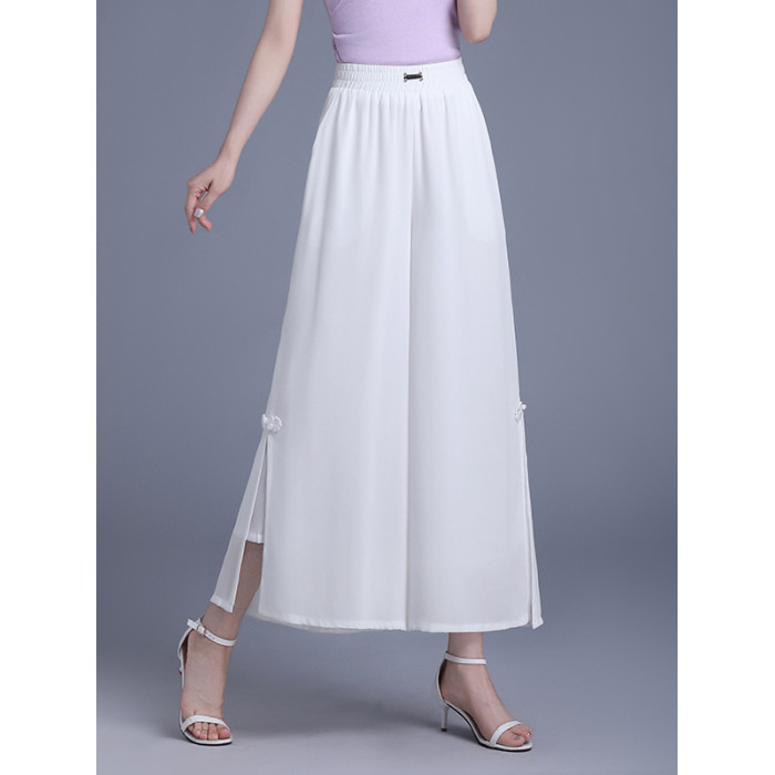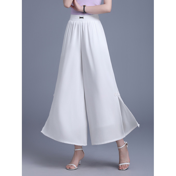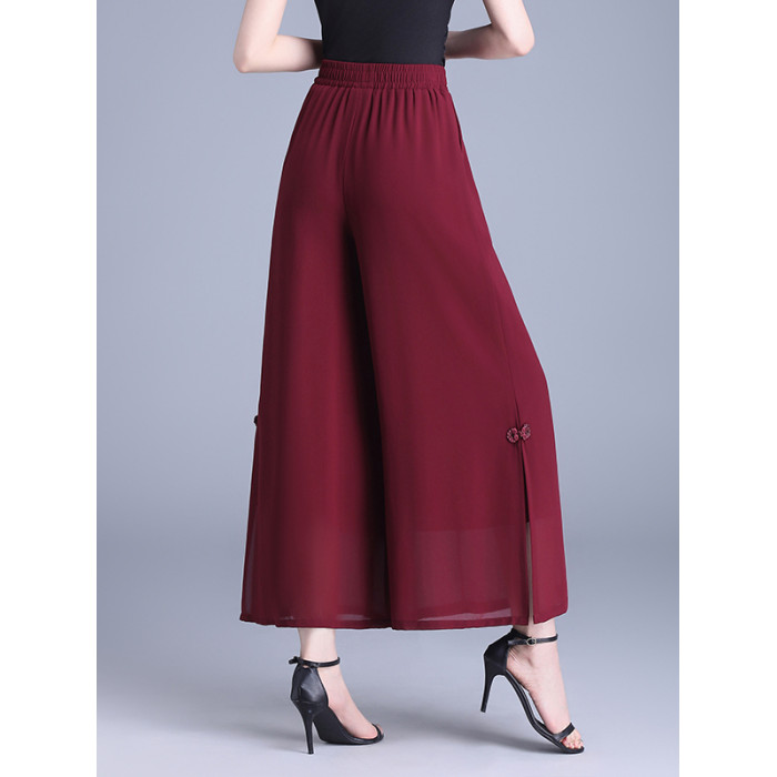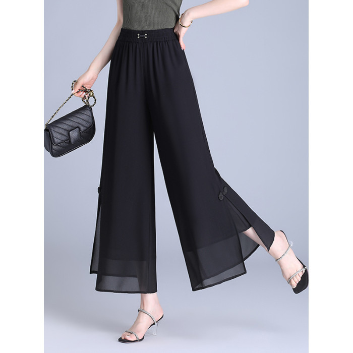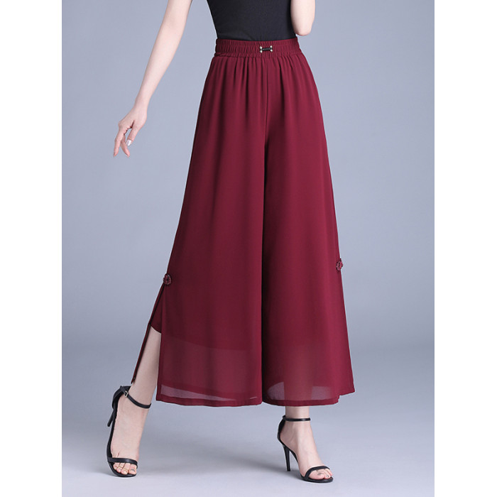 國風雪紡媽媽九分褲薄款濶腿褲女夏季高腰寬松顯瘦松緊小個子褲裙