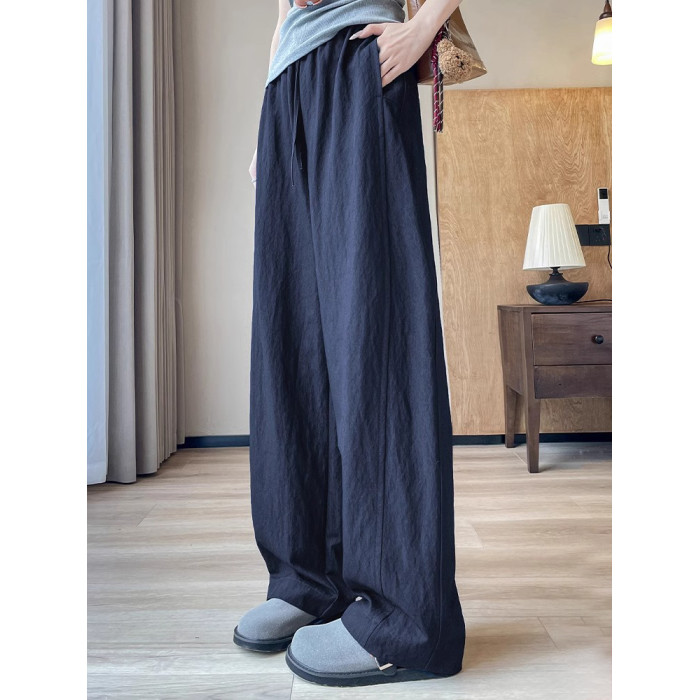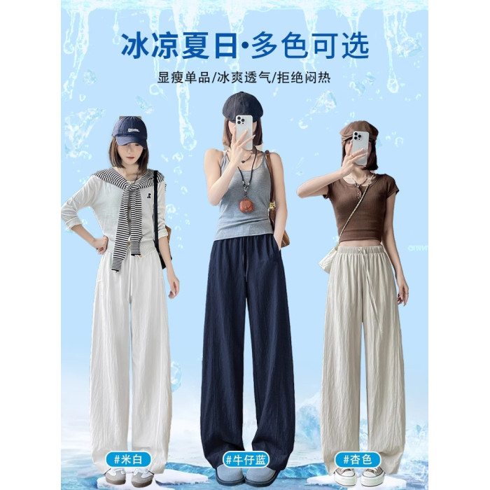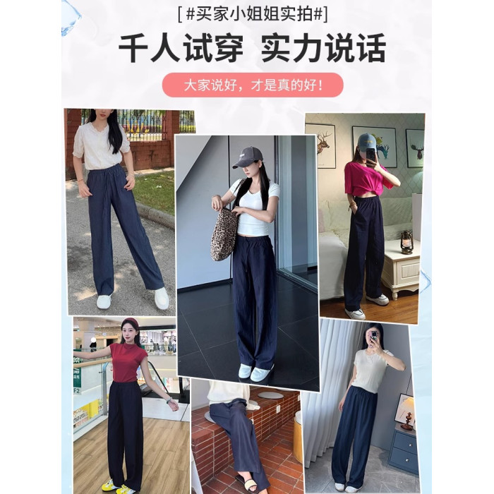 大碼藏藍色冰絲速乾濶腿褲女胖mm2025夏季薄款垂垂褲運動香蕉褲女