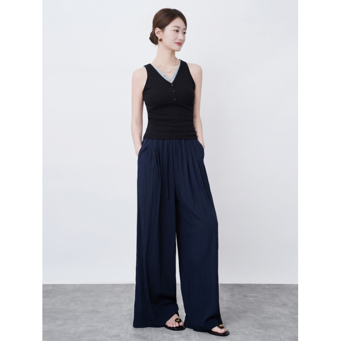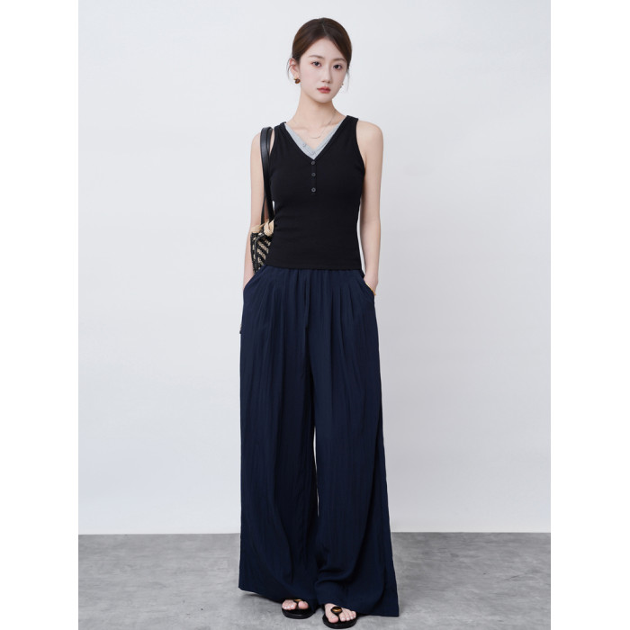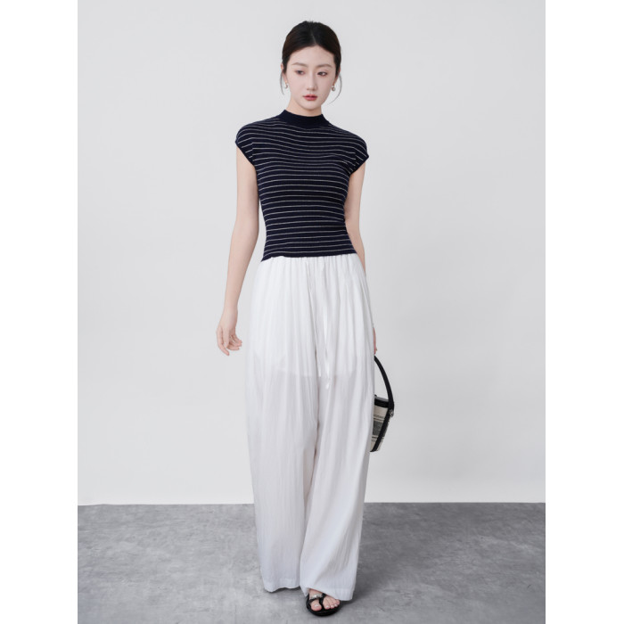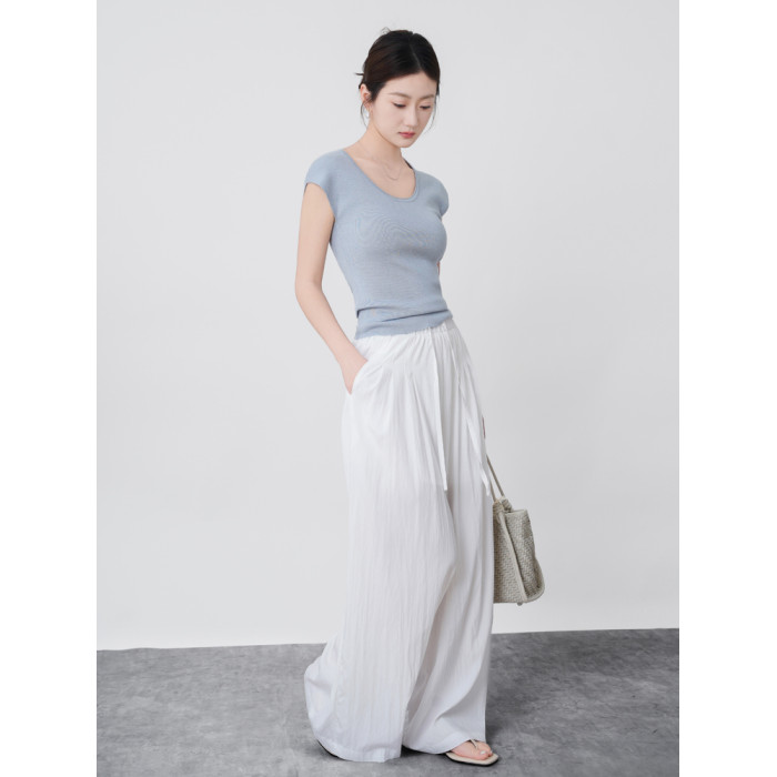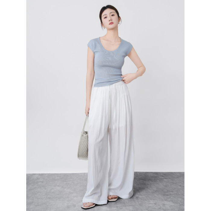 2025新款夏季白色濶腿褲高腰寬松顯瘦百搭直筒松弛感薄款涼涼長褲