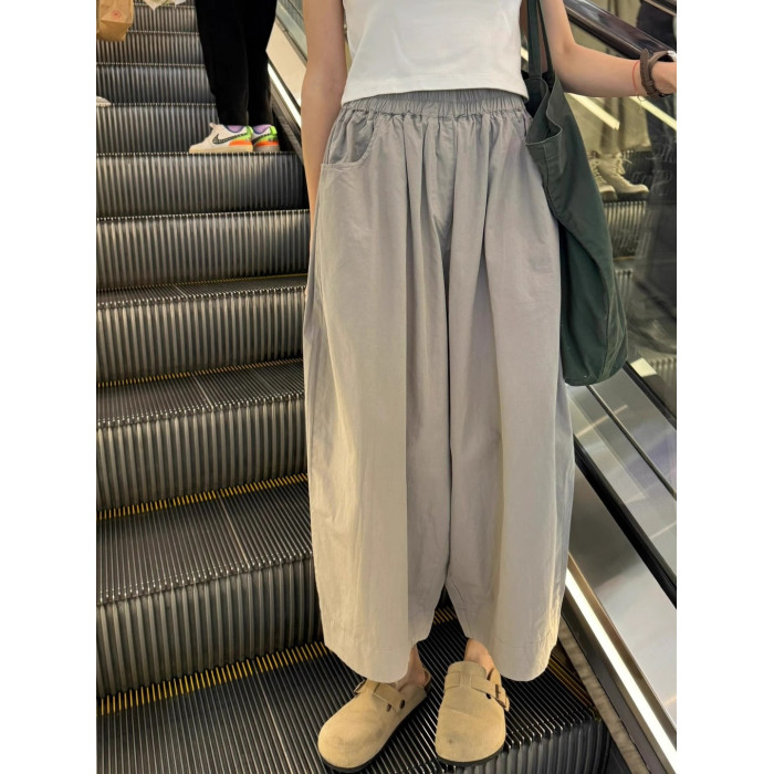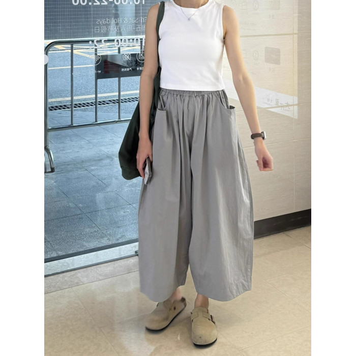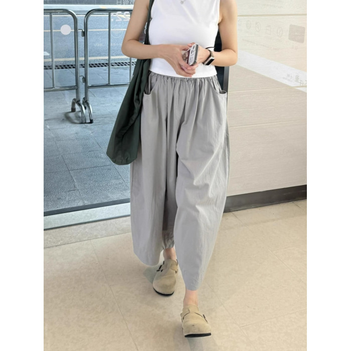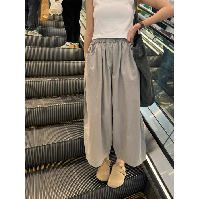 灰色速乾濶腿褲女夏季薄款寬松顯瘦慵懶風休閒褲小個子直筒九分褲