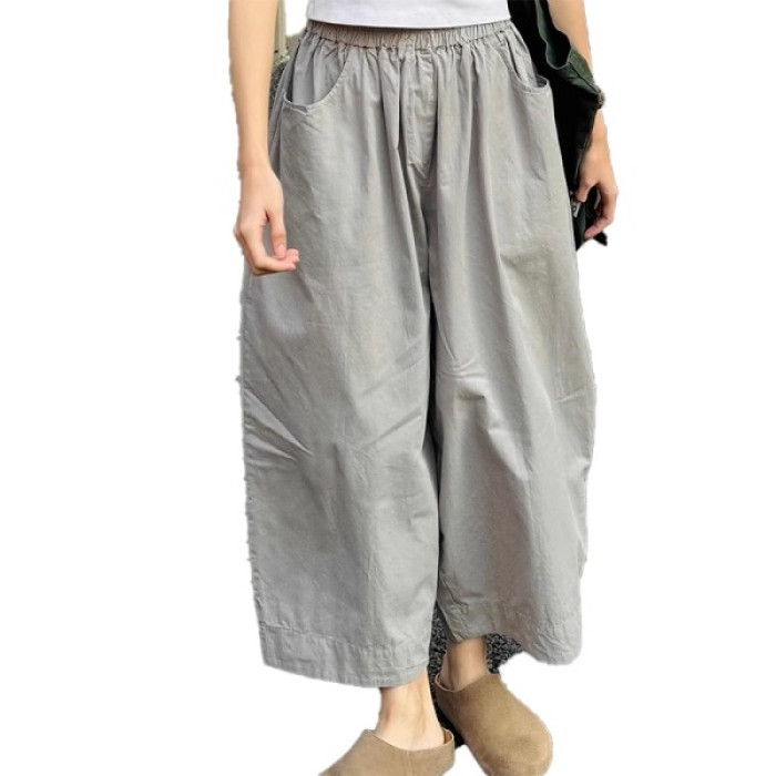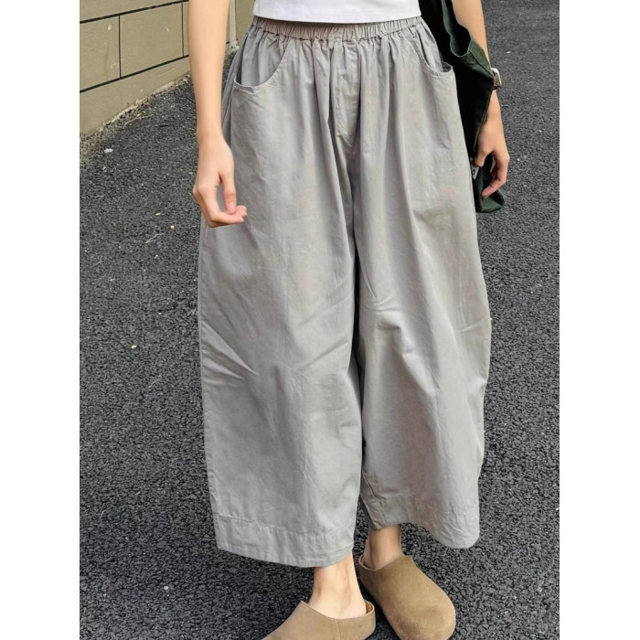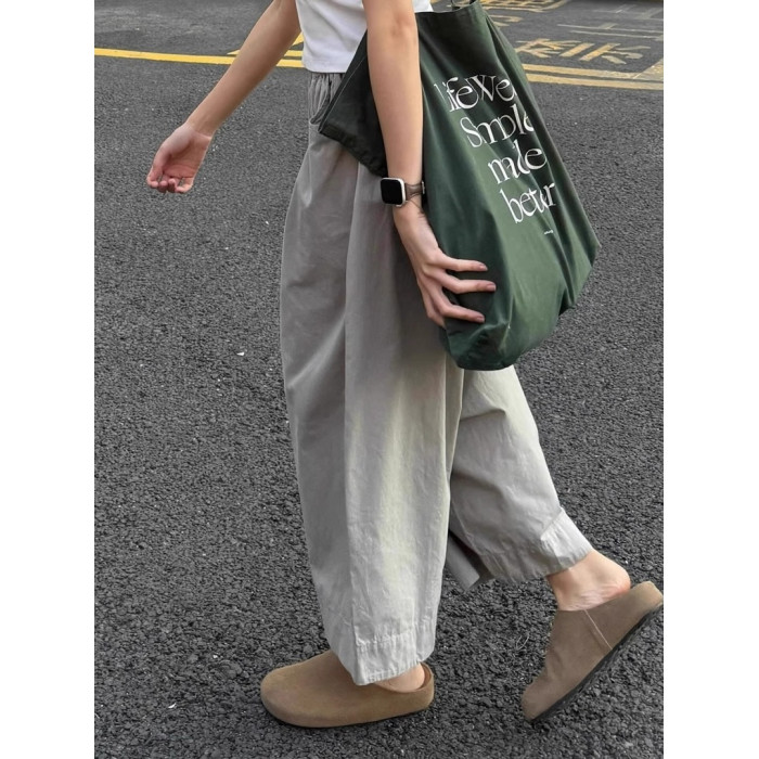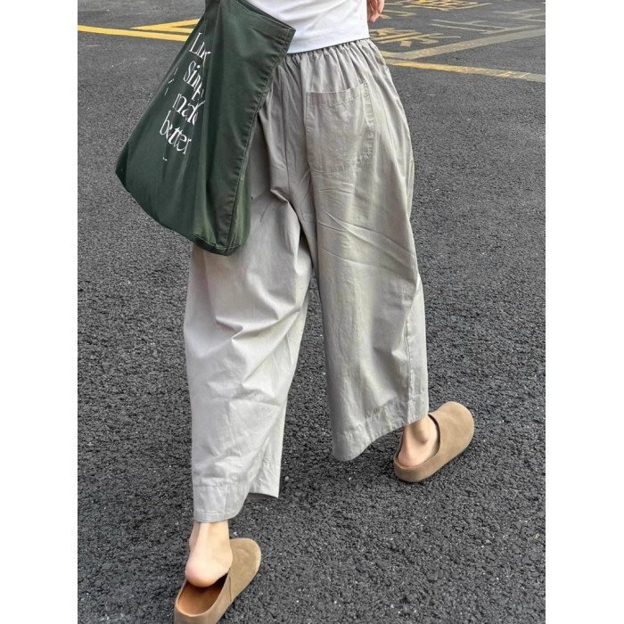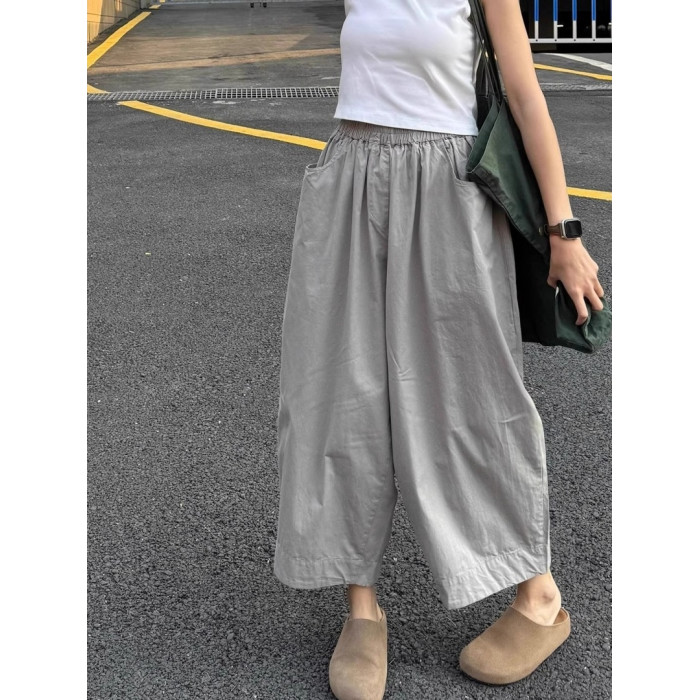 灰色紙片人速乾濶腿褲女夏季薄款大碼胖mm日系寬松顯瘦休閒九分褲