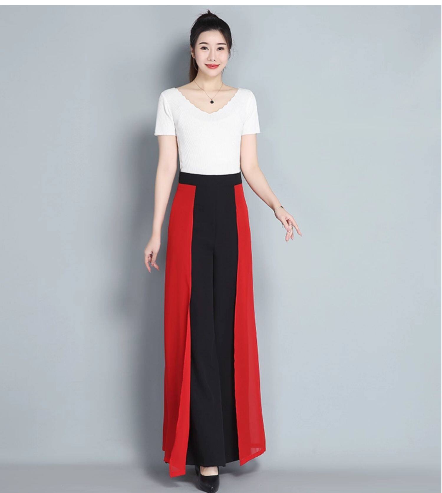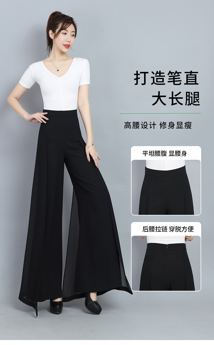 雪紡拼接濶腿褲裙褲女2025年秋季新款黑色高腰垂感舞褲休閒長褲子
