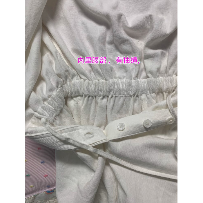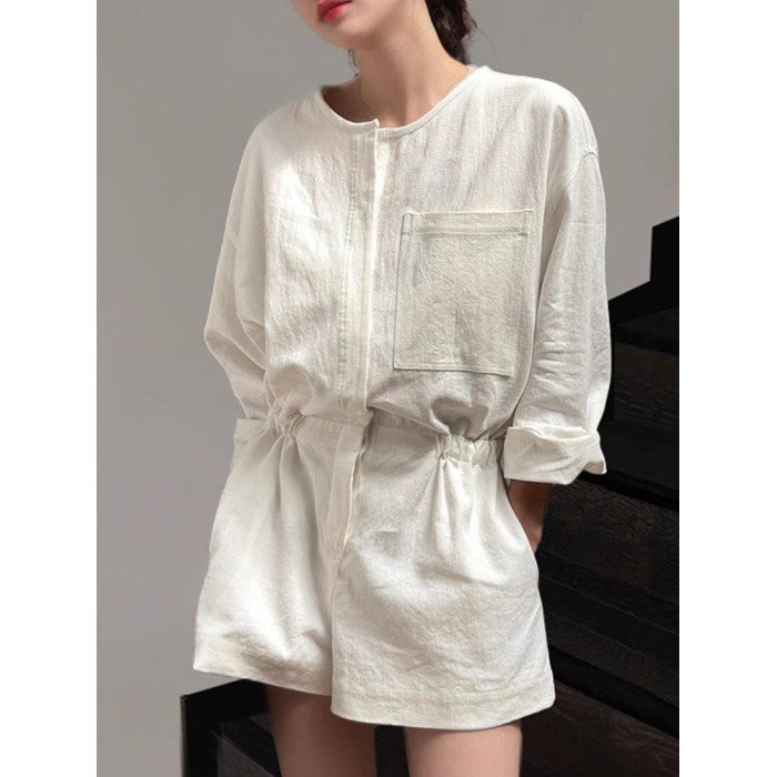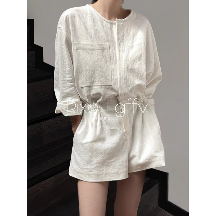 Rixo Fgffv法式圓領長袖工裝襯衫抽繩收腰連體短褲女夏薄款連體衣