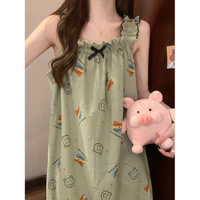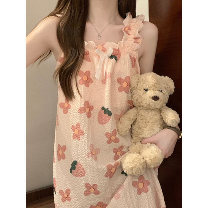2025新款吊帶睡裙夏季帶胸墊睡衣女士夏天大碼200斤可外穿家居服