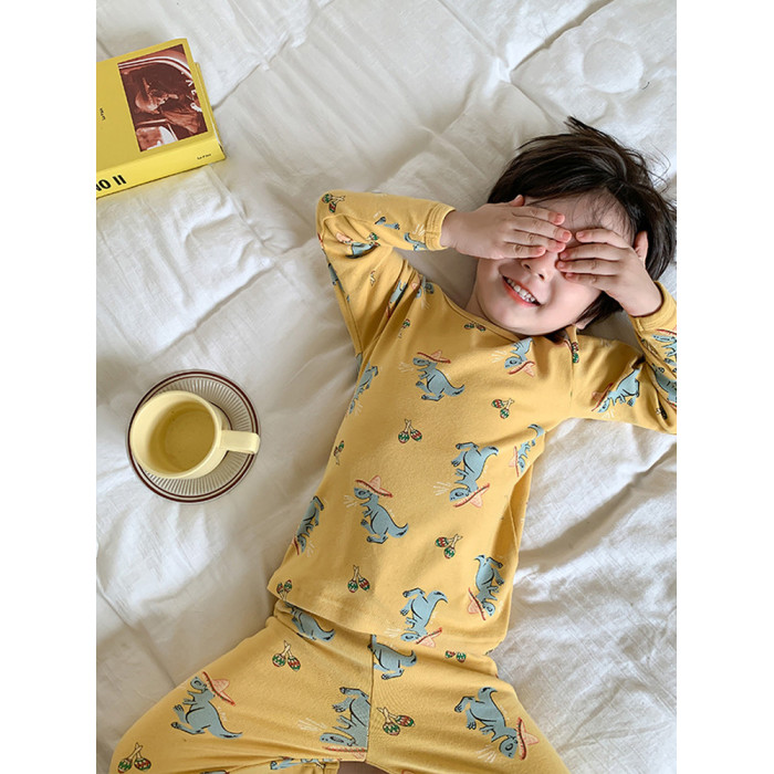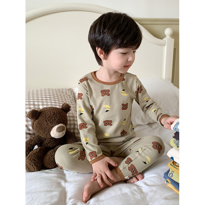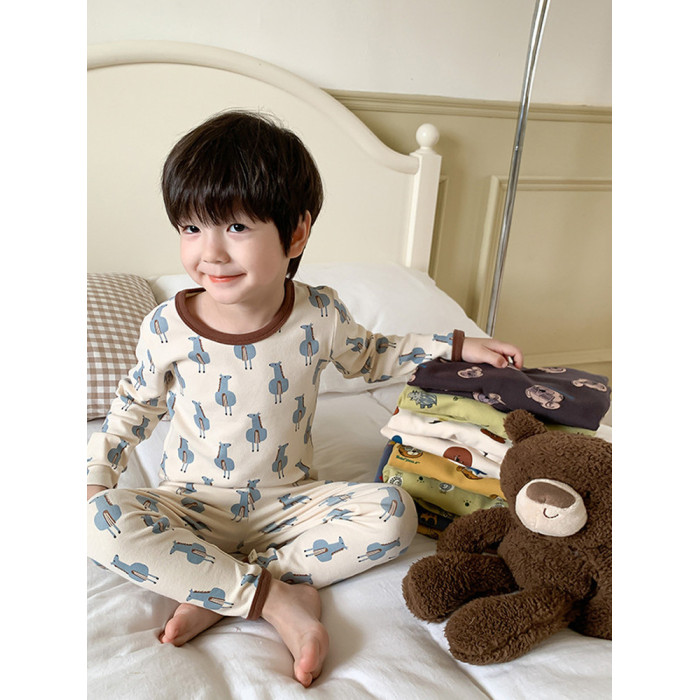 2025新款兒童睡衣男女童A類280g羊毛拉架家居服寶寶純棉秋衣秋褲