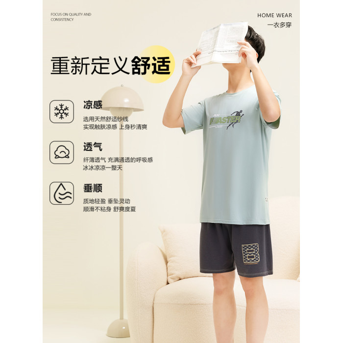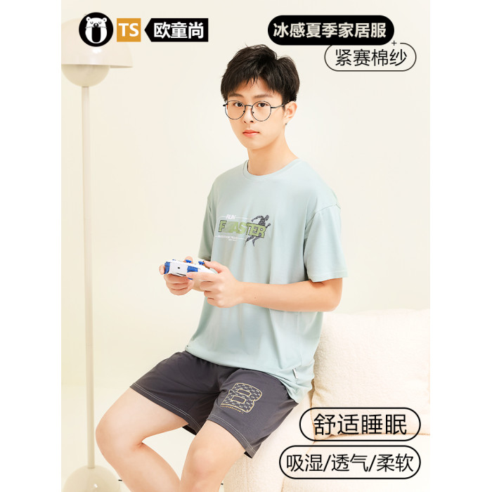 男童睡衣夏季新款舒適透氣寬松家居服套裝中大童兒童男大碼休閒