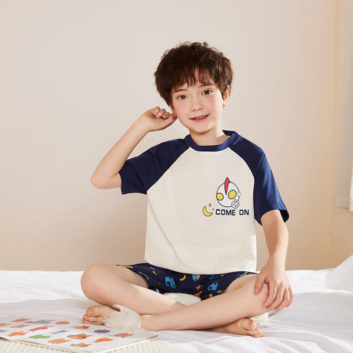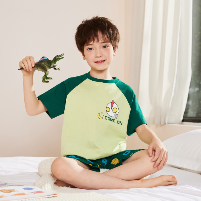 男童睡衣夏2025新款a類全棉短袖卡通夏款4嵗6嵗8嵗男孩家居服套裝