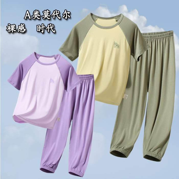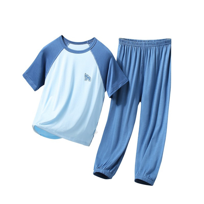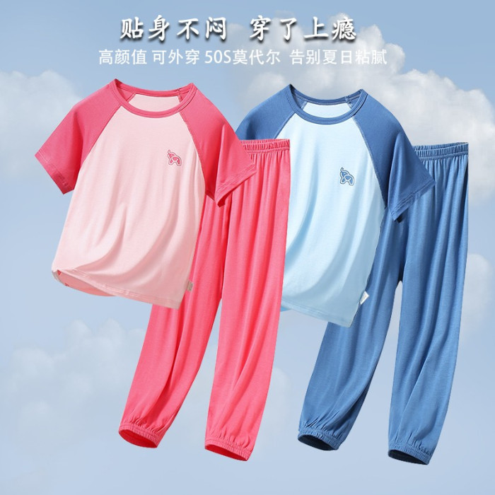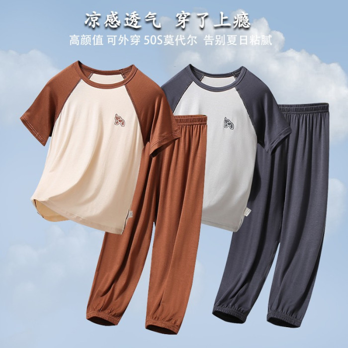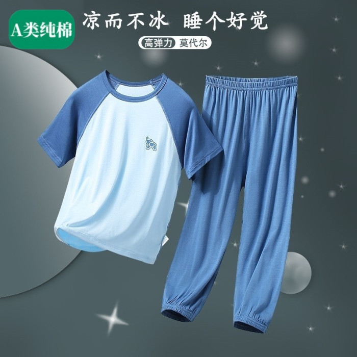 全純棉時代2025新款莫代爾兒童套裝夏季薄款男童短袖長褲睡衣兩件