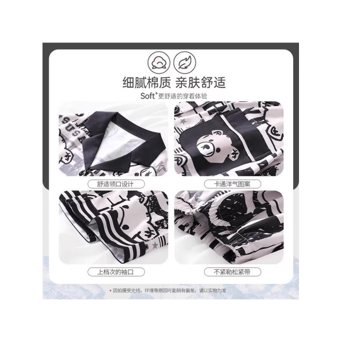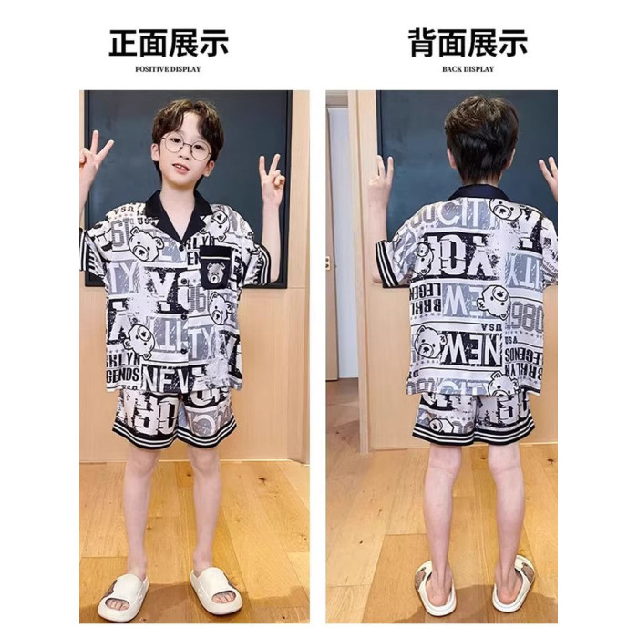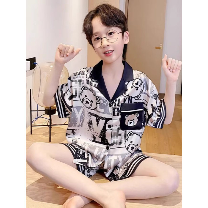 TAFN男童睡衣夏季冰絲薄款短袖開衫2025新款青少年家居服兩件套