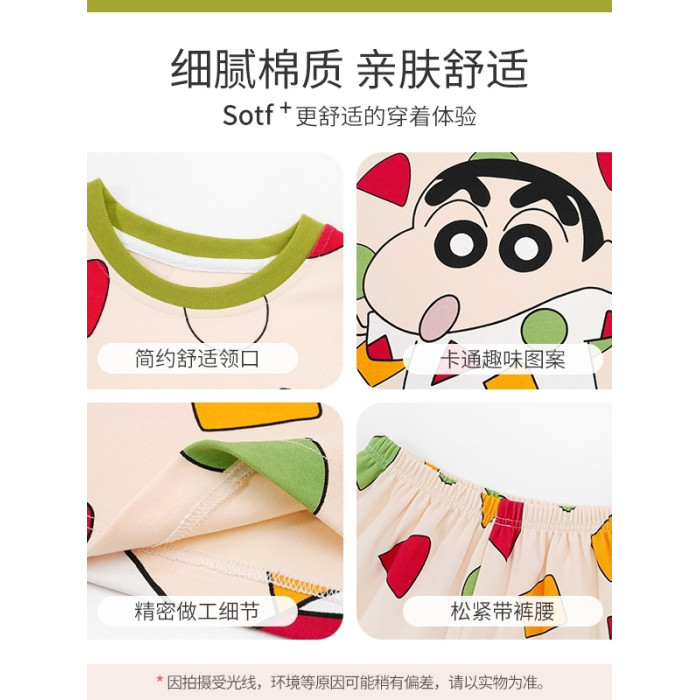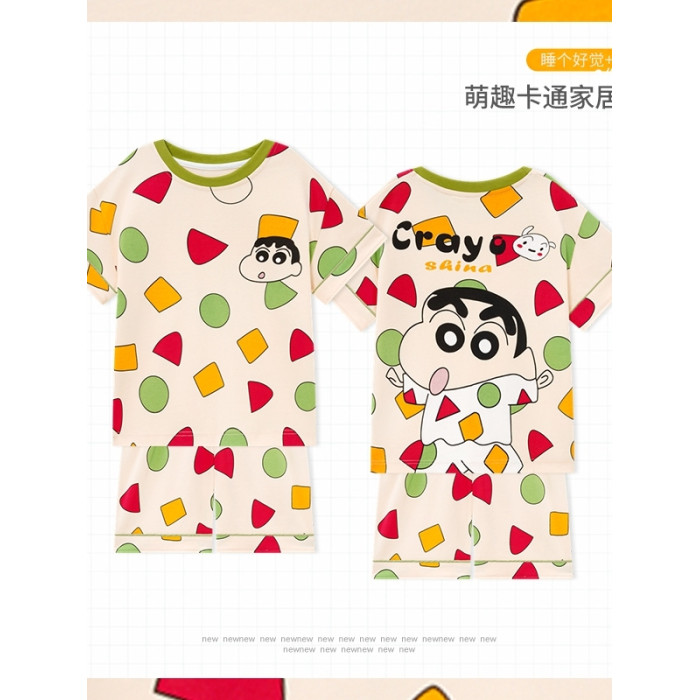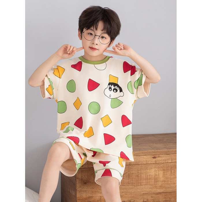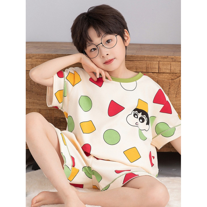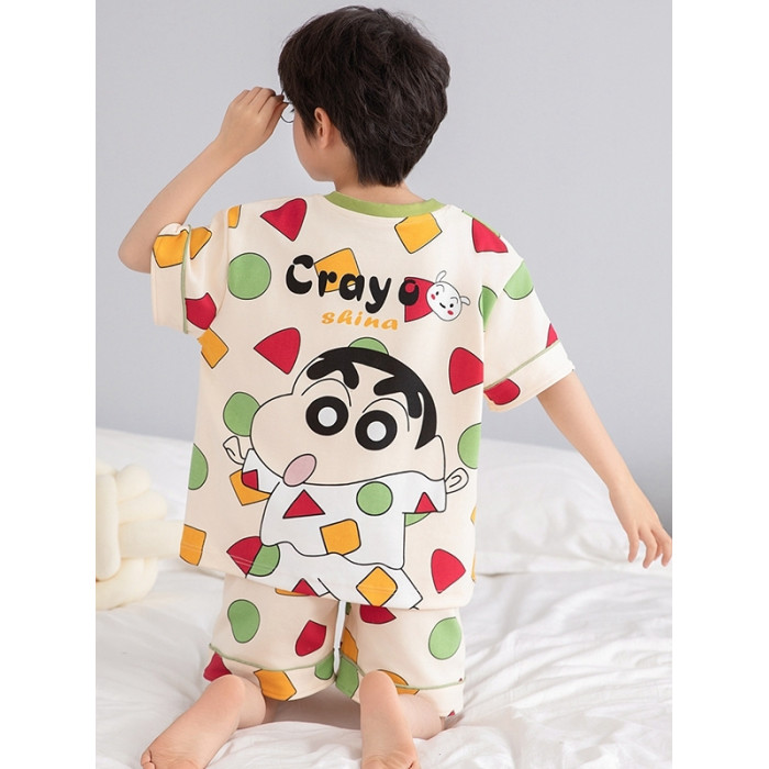 卡通蠟筆小新可愛兒童睡衣男孩純棉短袖短褲青少年男童家居服套裝
