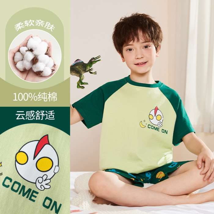 男童睡衣夏2025新款a類全棉短袖卡通夏款4嵗6嵗8嵗男孩家居服套裝